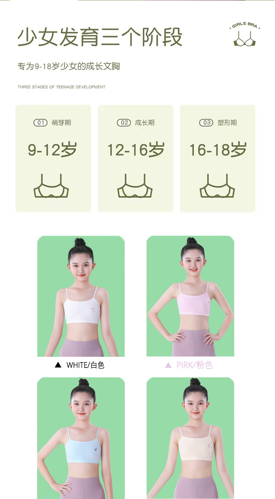 Pure Cotton 8-12 Year Old Girls' Underwear for the Developmental Stage, Primary and Middle School Students, Girls' Camisole and Tube Top