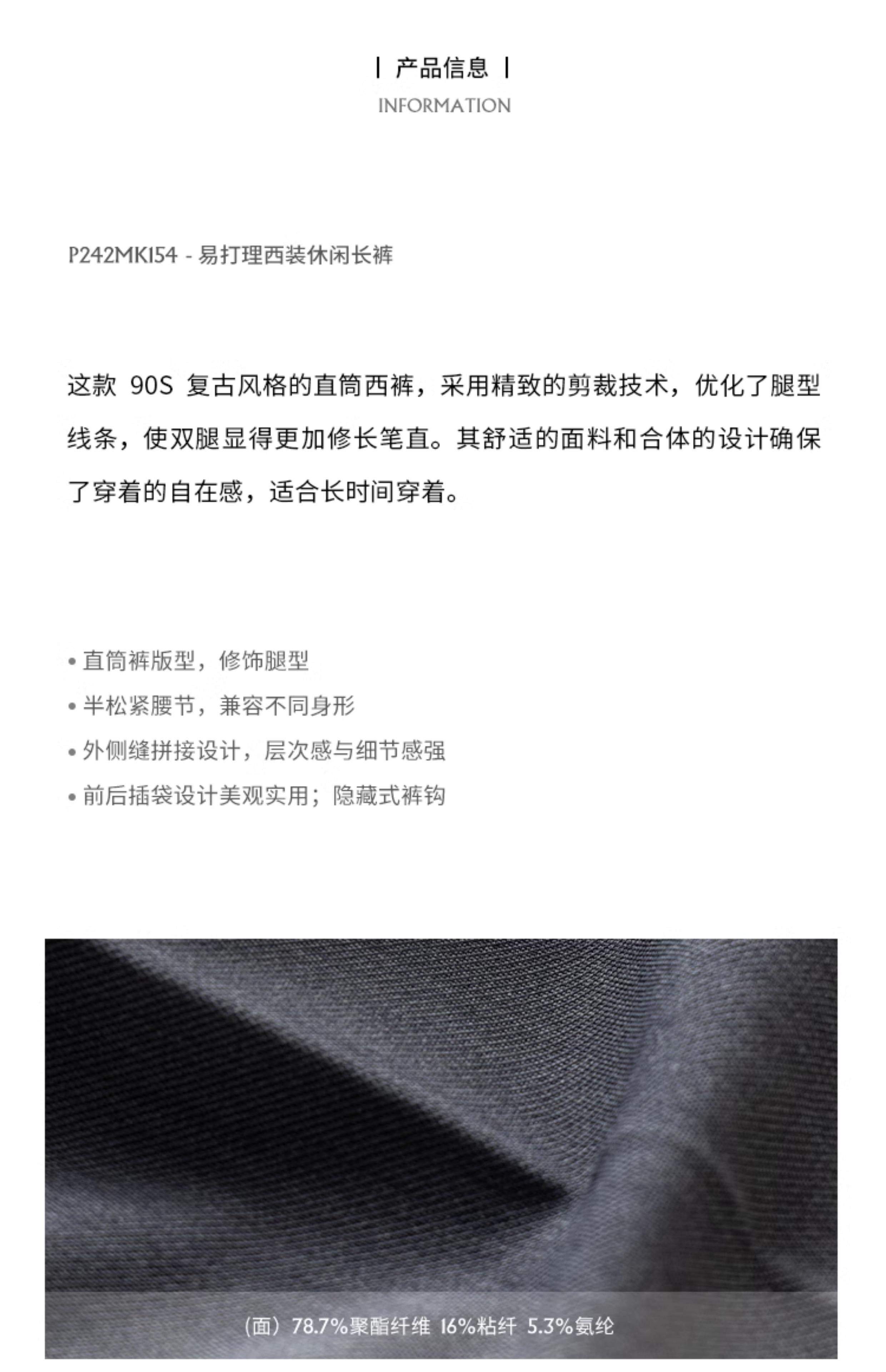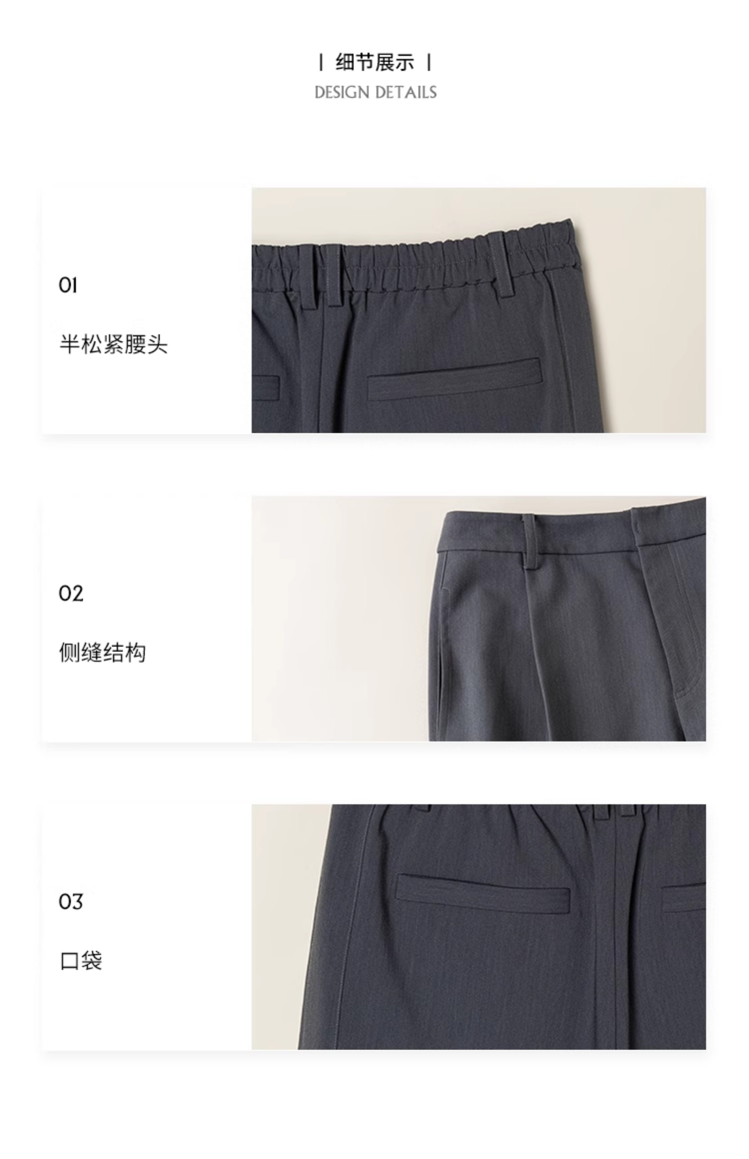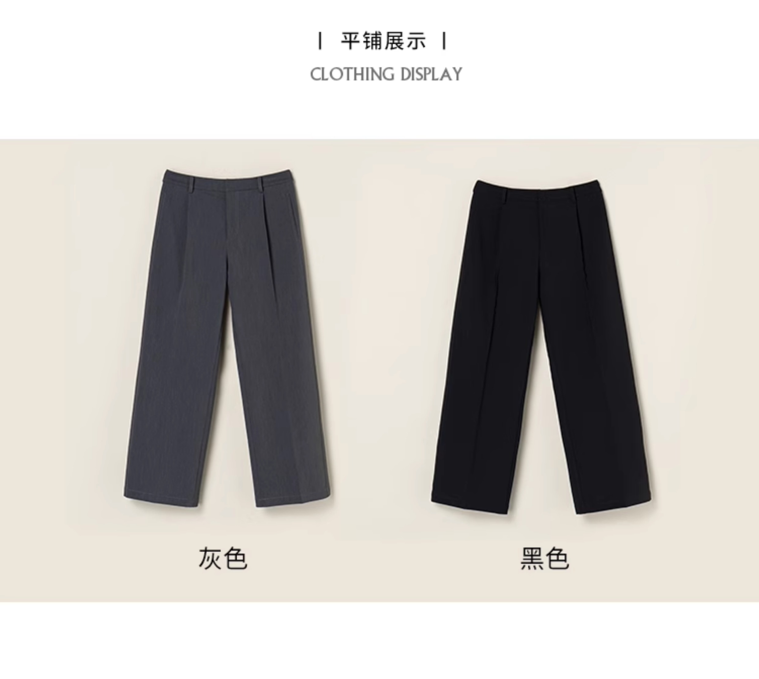 Opicloth/Opic Easy-Care Wrinkle-Resistant Semi-Elastic Waist Suit Pants Loose Straight-Leg Commuter Casual Long Trousers