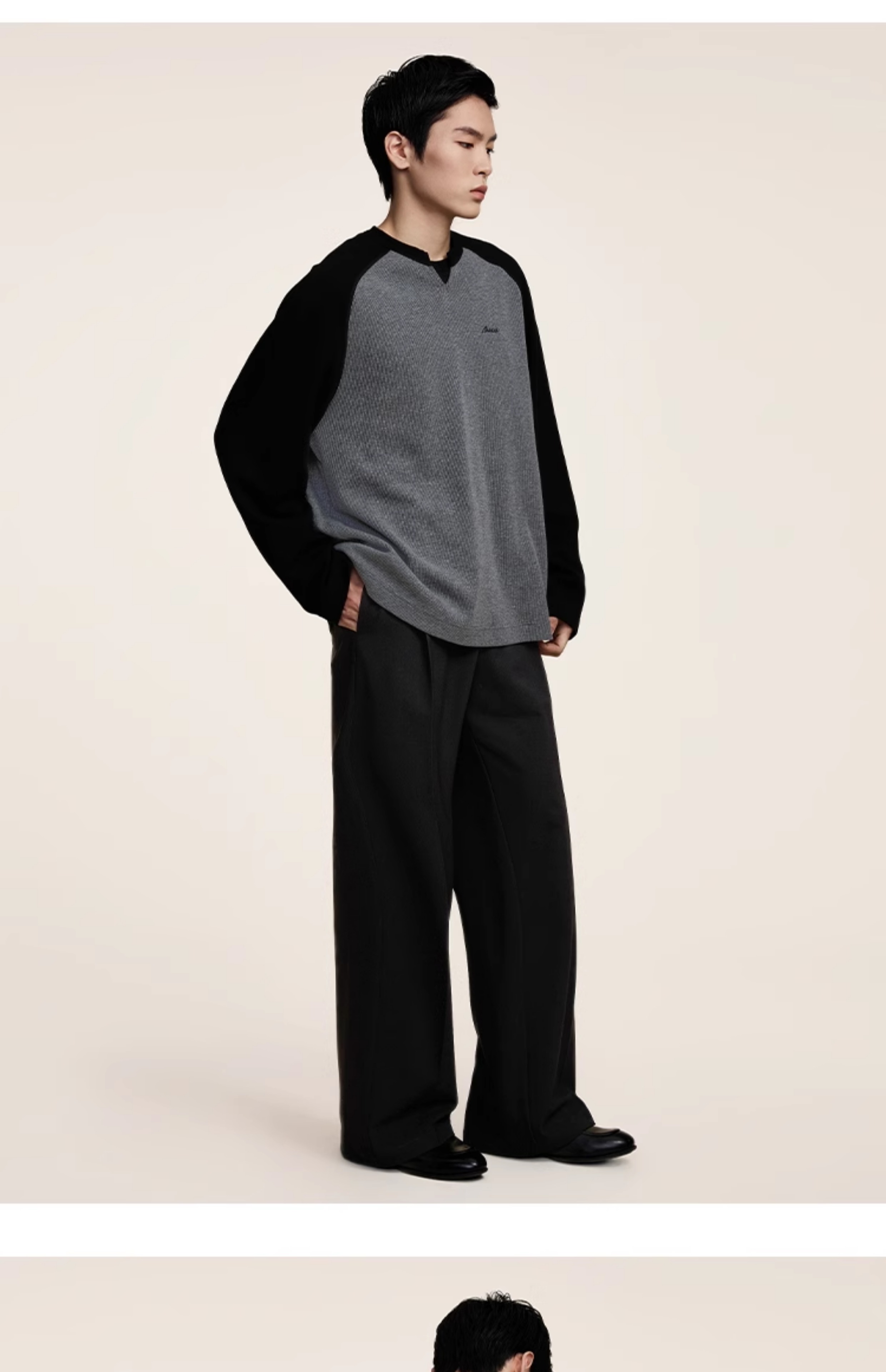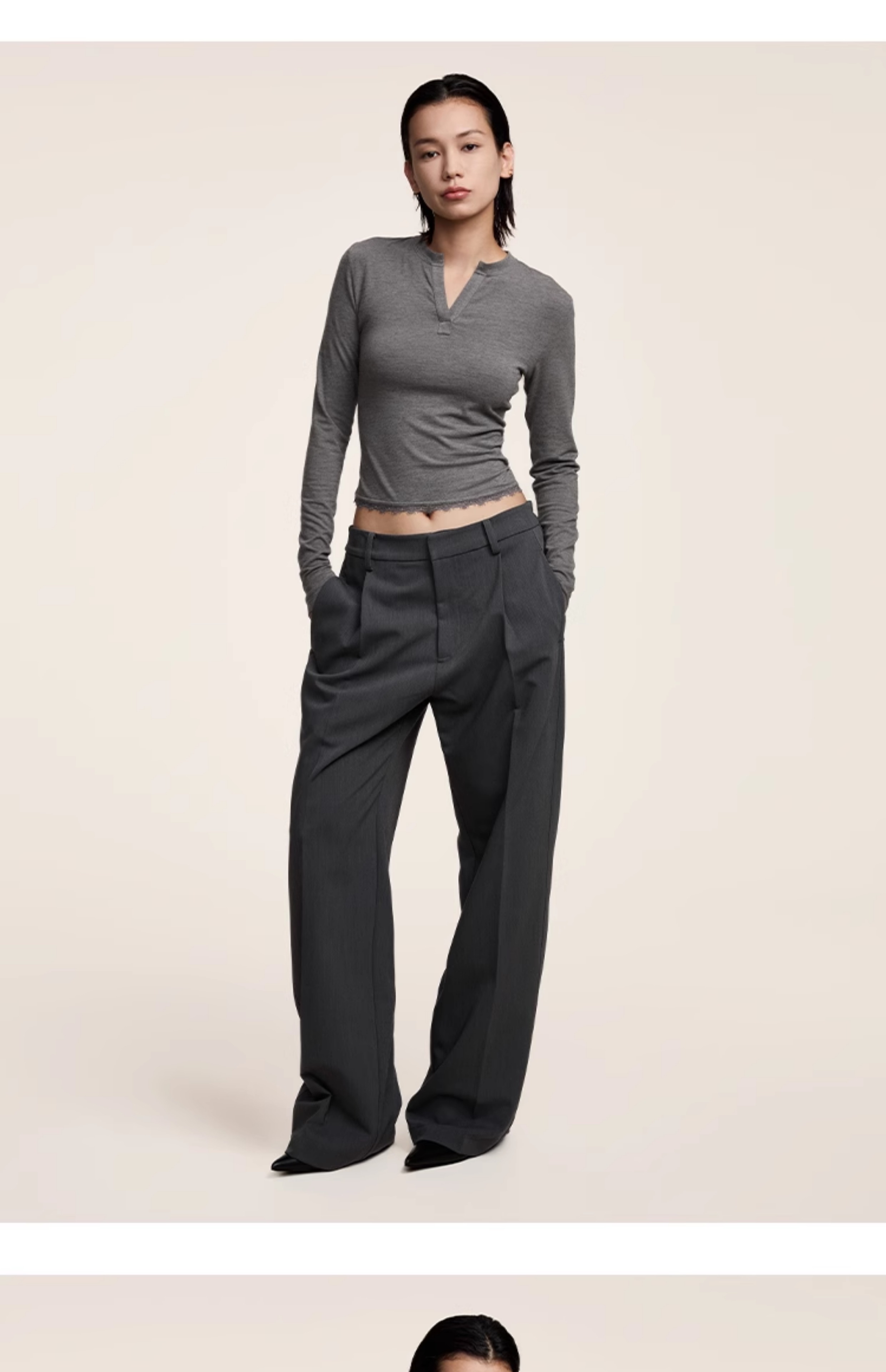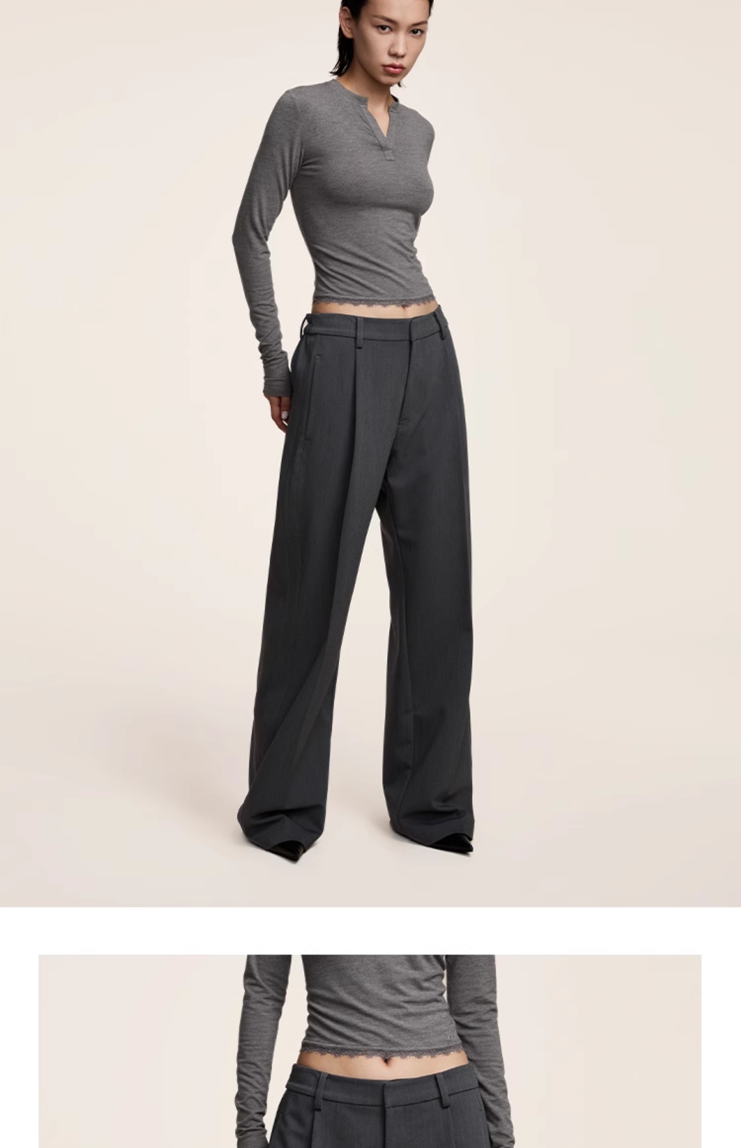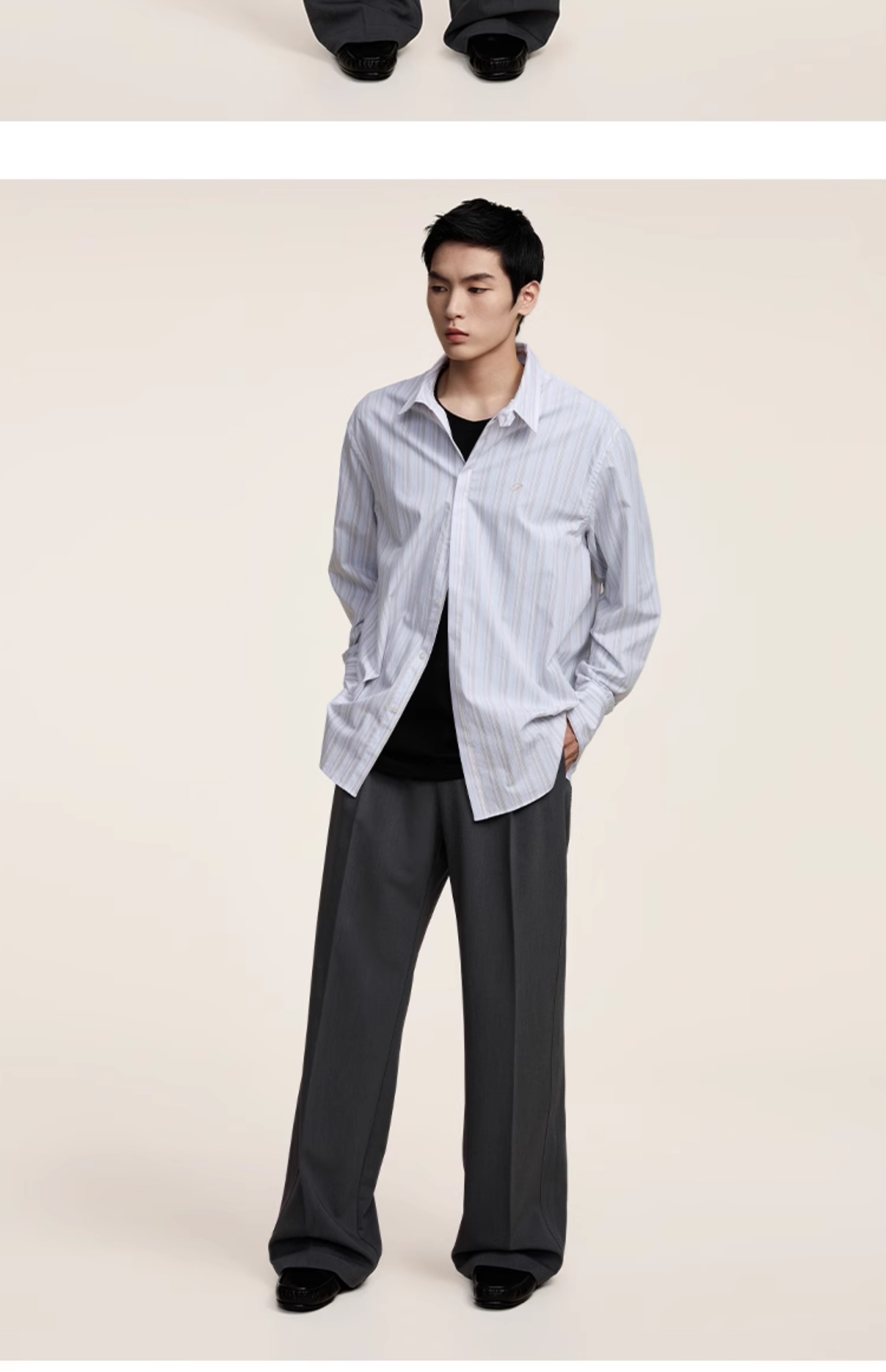 Opicloth/Opic Easy-Care Wrinkle-Resistant Semi-Elastic Waist Suit Pants Loose Straight-Leg Commuter Casual Long Trousers