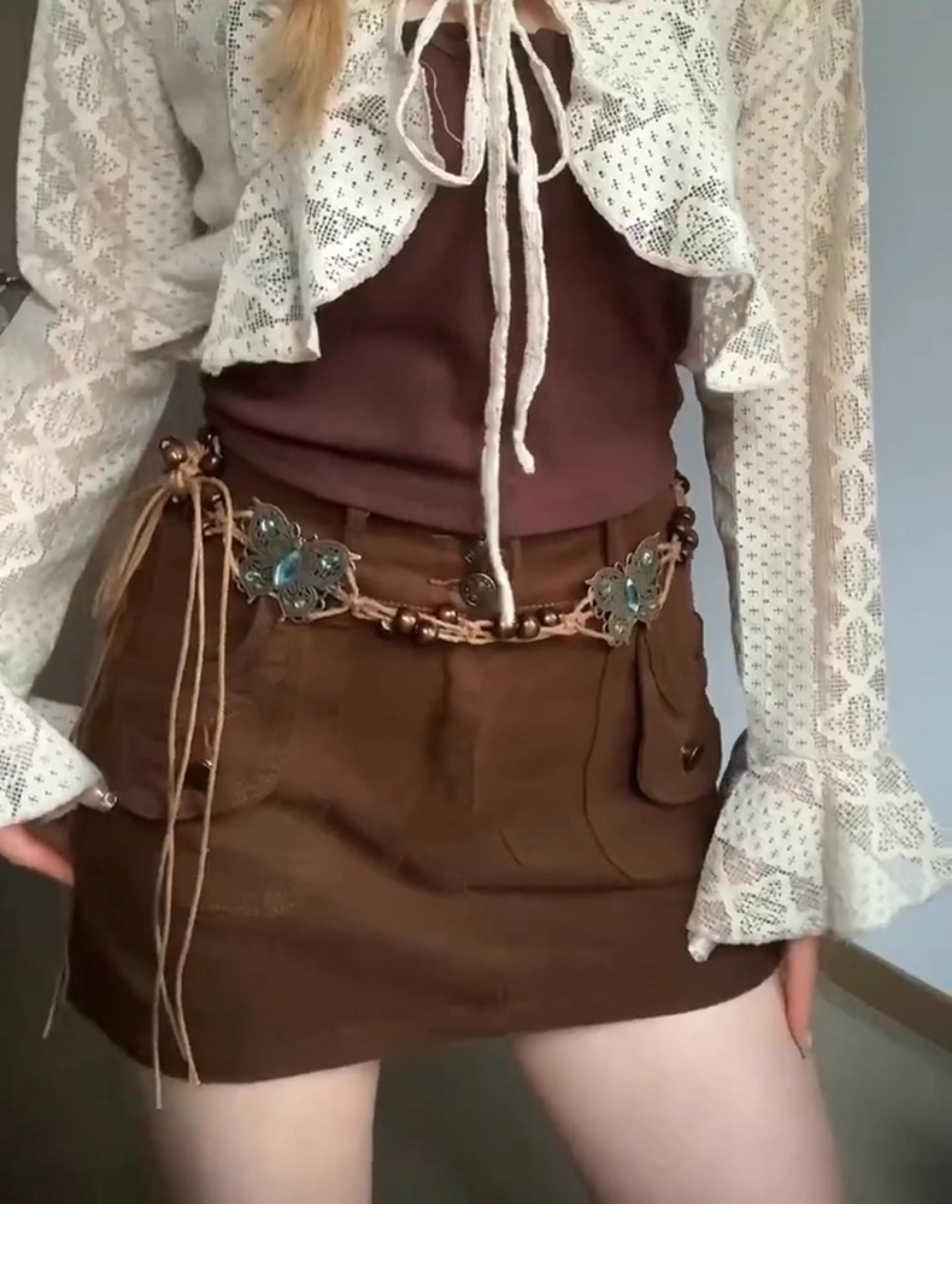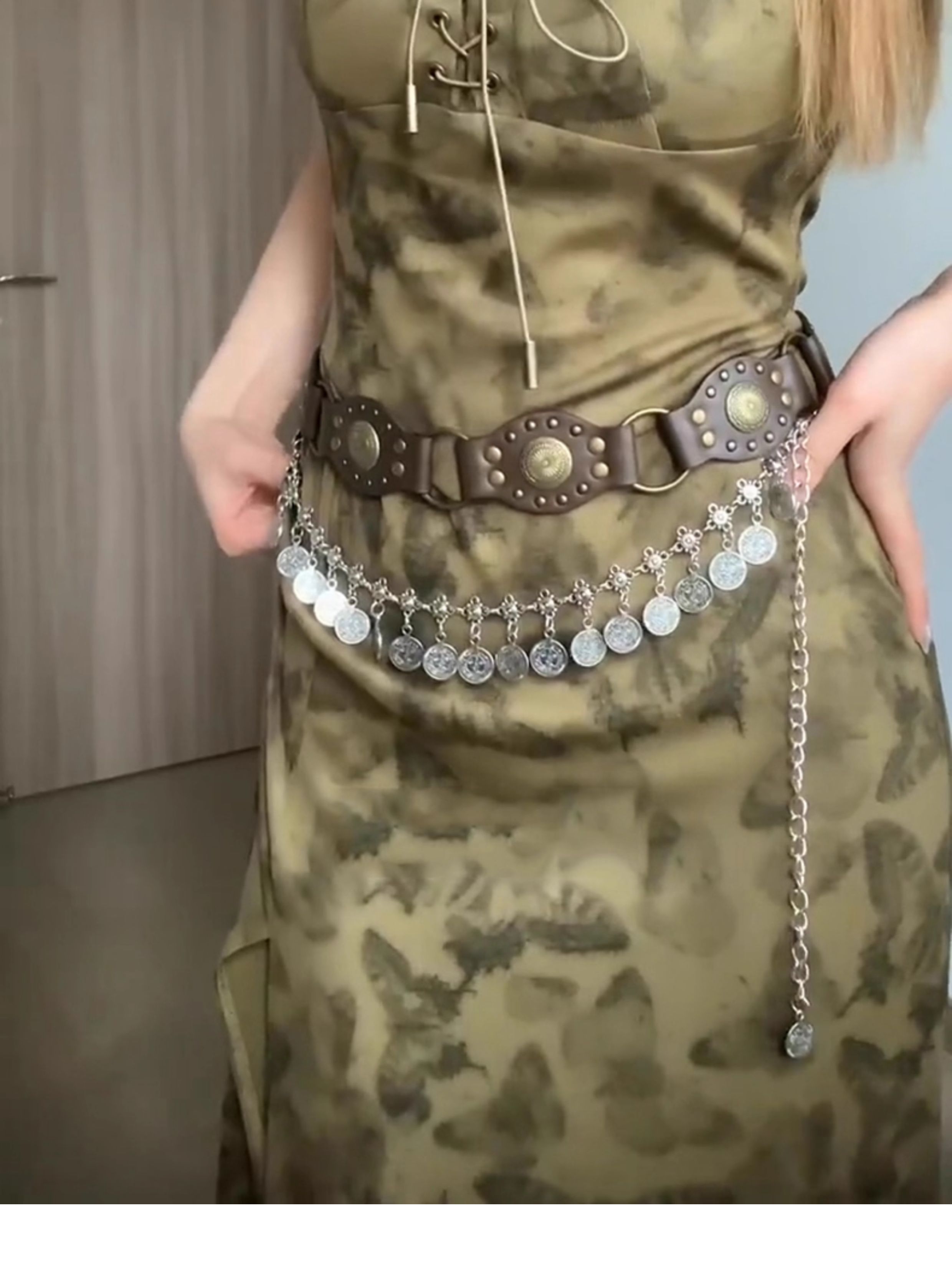 Bohemian Metal Butterfly Waist Chain for Women, Decorative Accessory for Dresses, Sweaters, Ethnic Style, Vintage Y2K Pants Belt