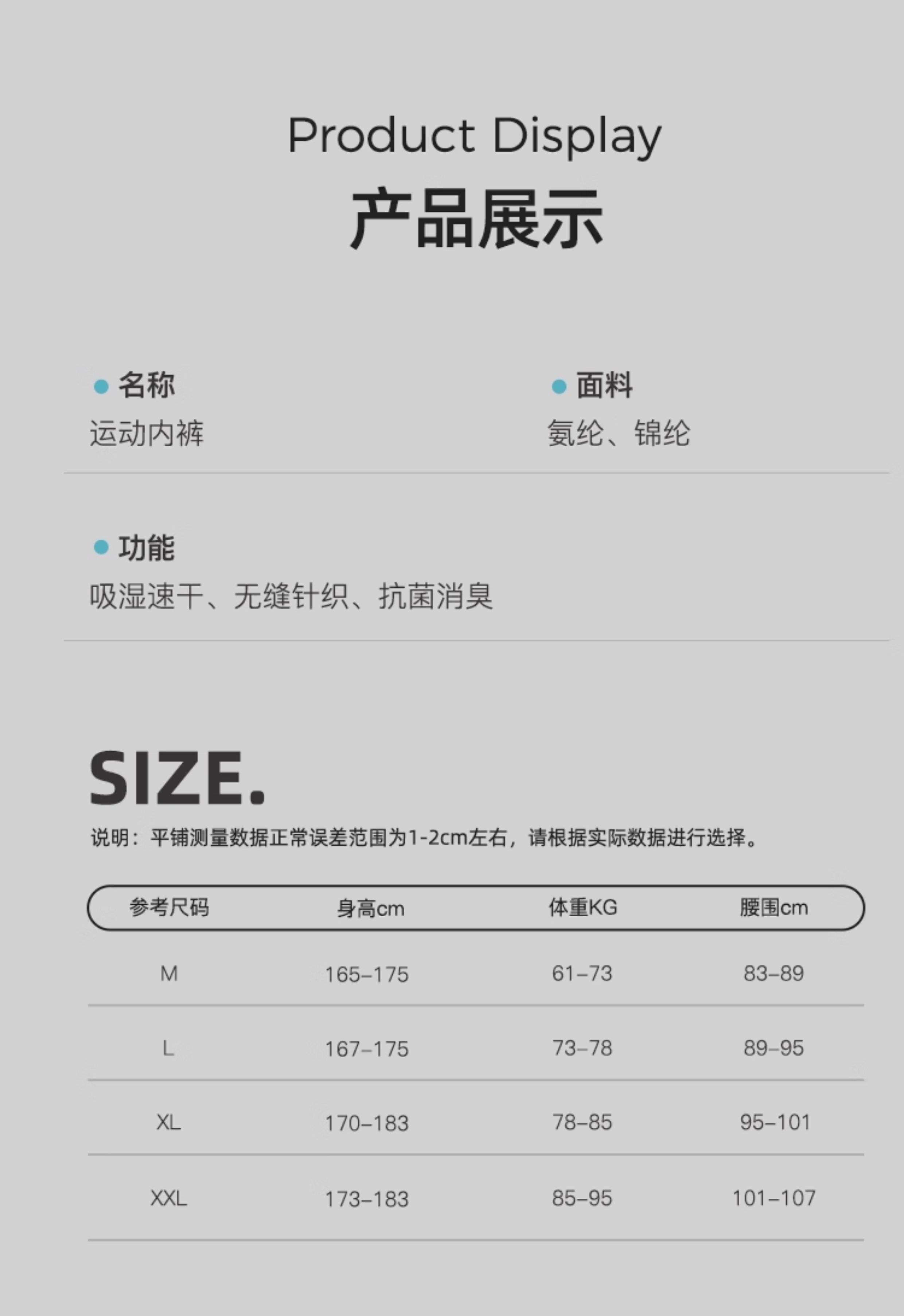 Golovejoy Sports Underwear Men's Quick-Drying Breathable Antibacterial Boxer Briefs Running Training Anti-Wear Leg Boxer Shorts