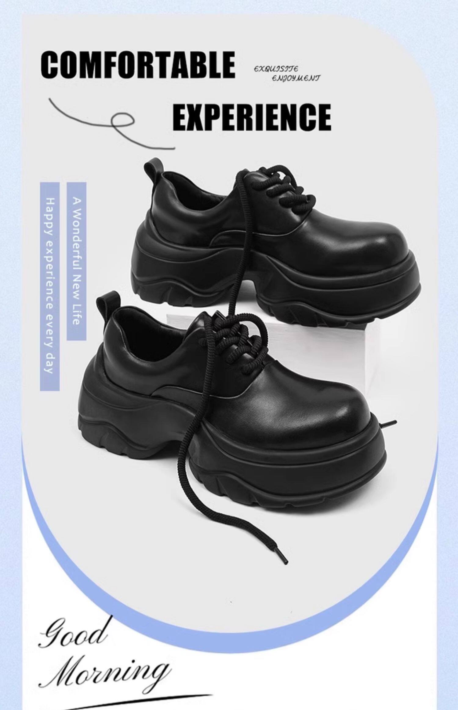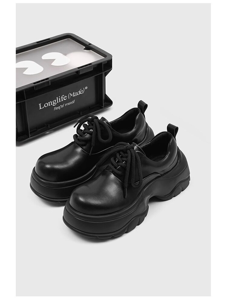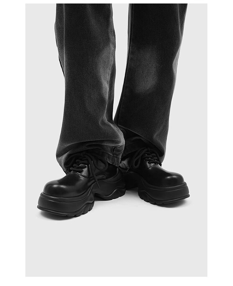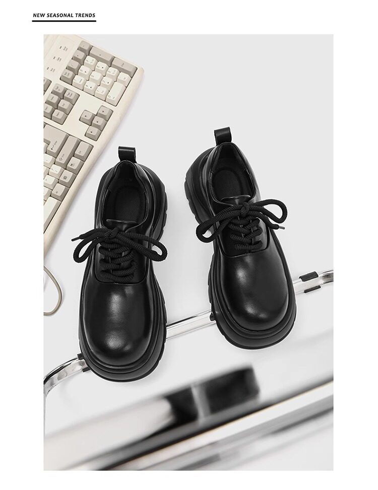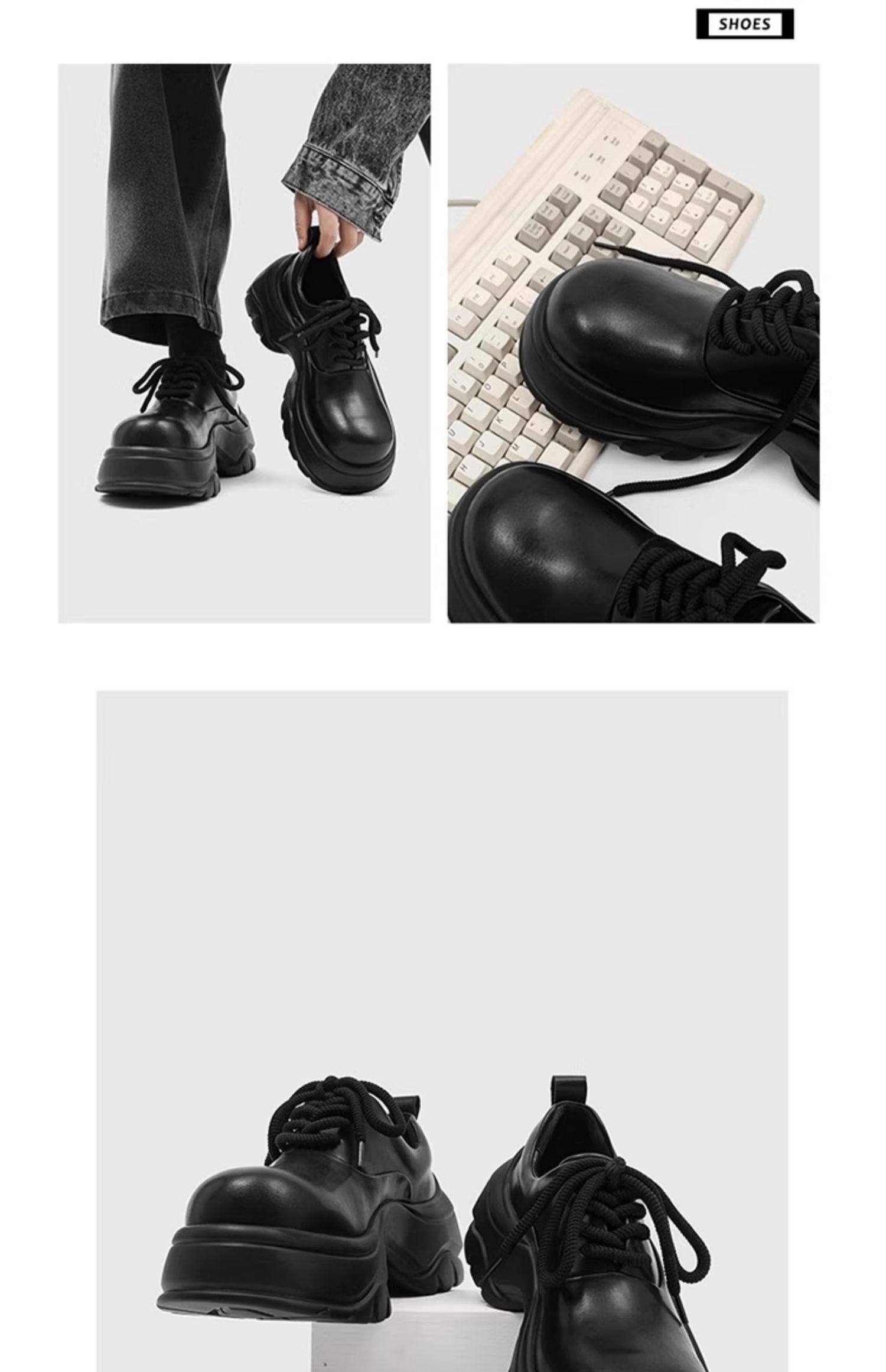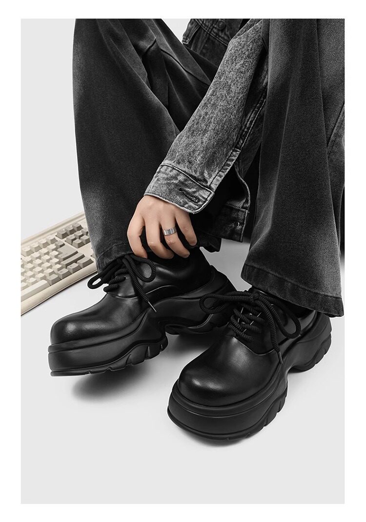 Cleanfit Paris Chunky Derby Shoes Niche Thick-Soled Height-Increasing Platform Leather Shoes Black Warrior Sneakers Trendy Dad Shoes