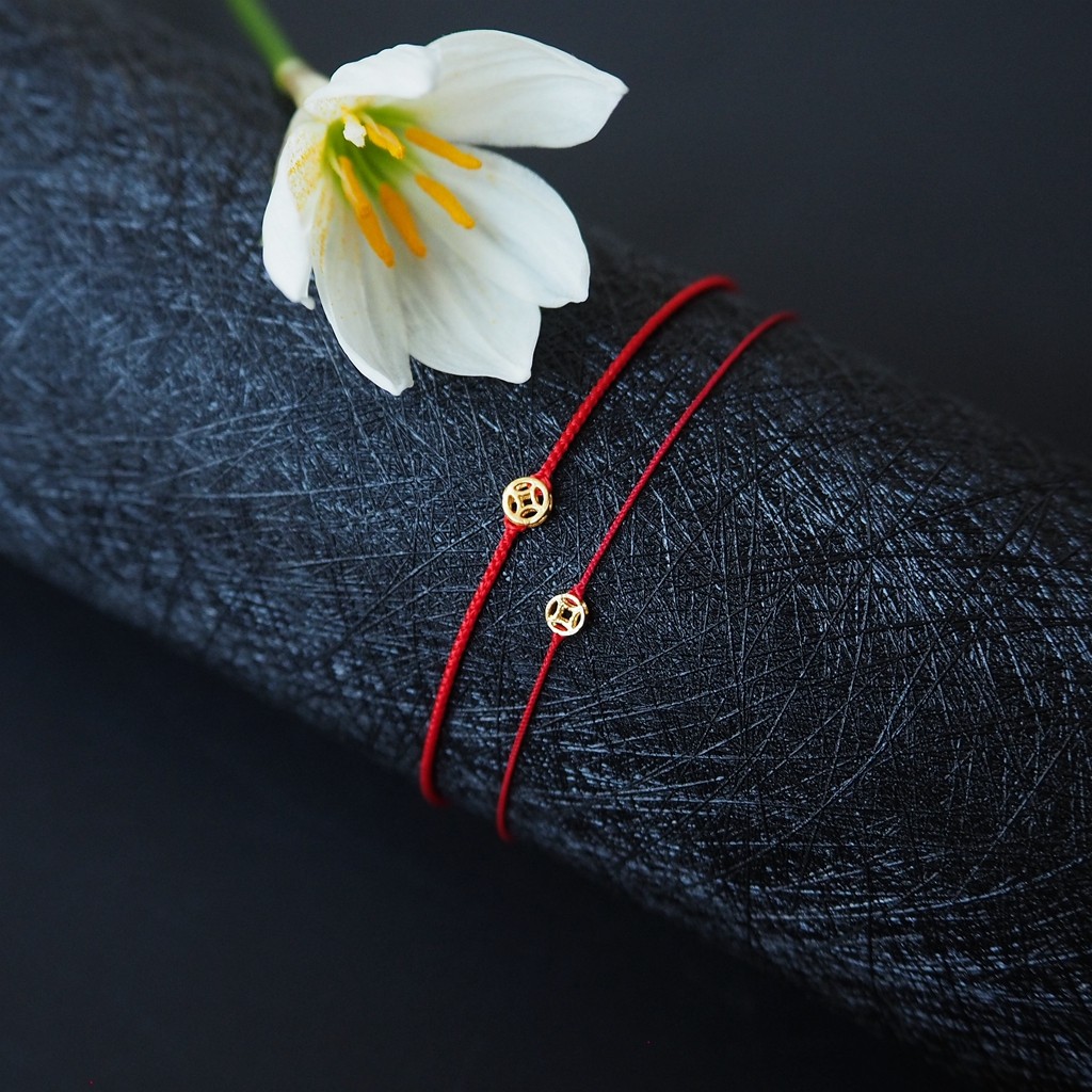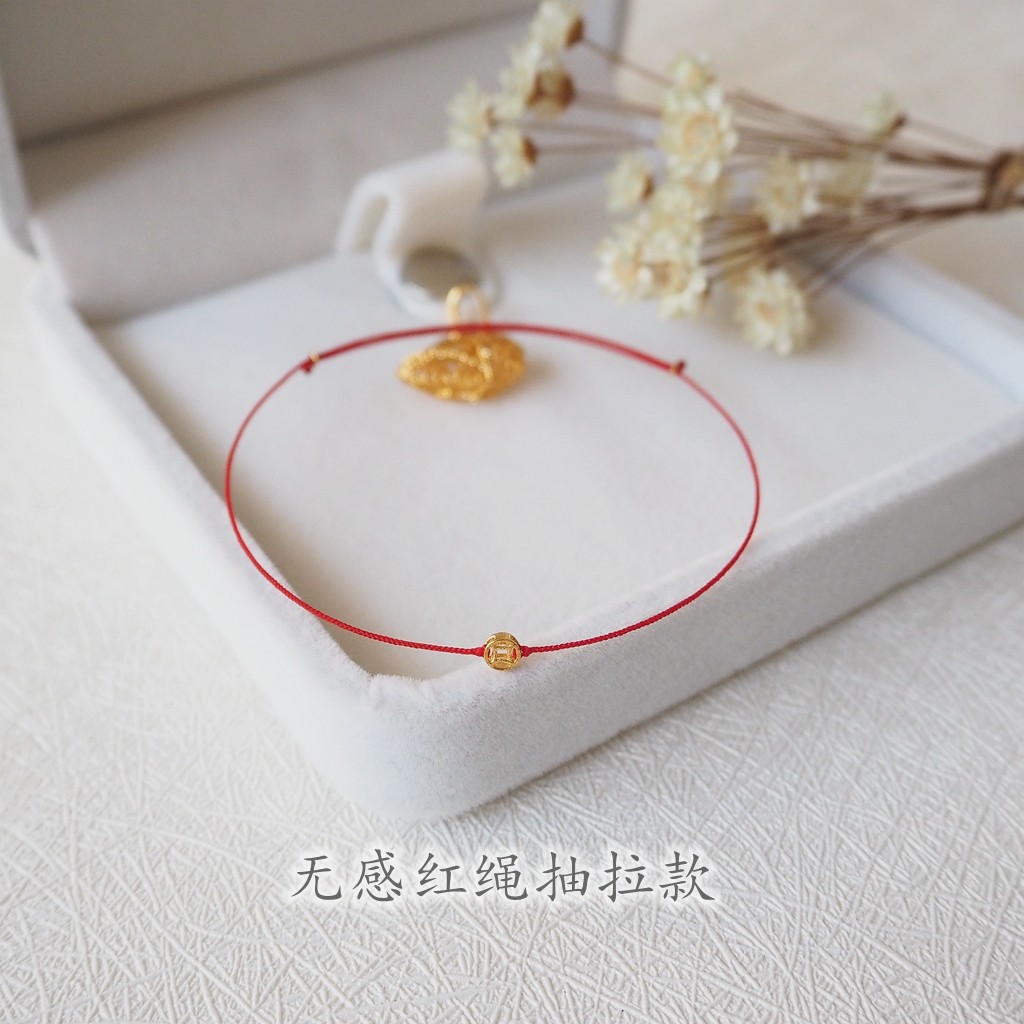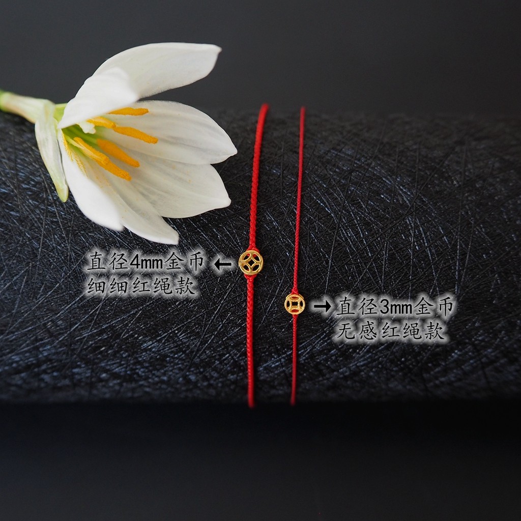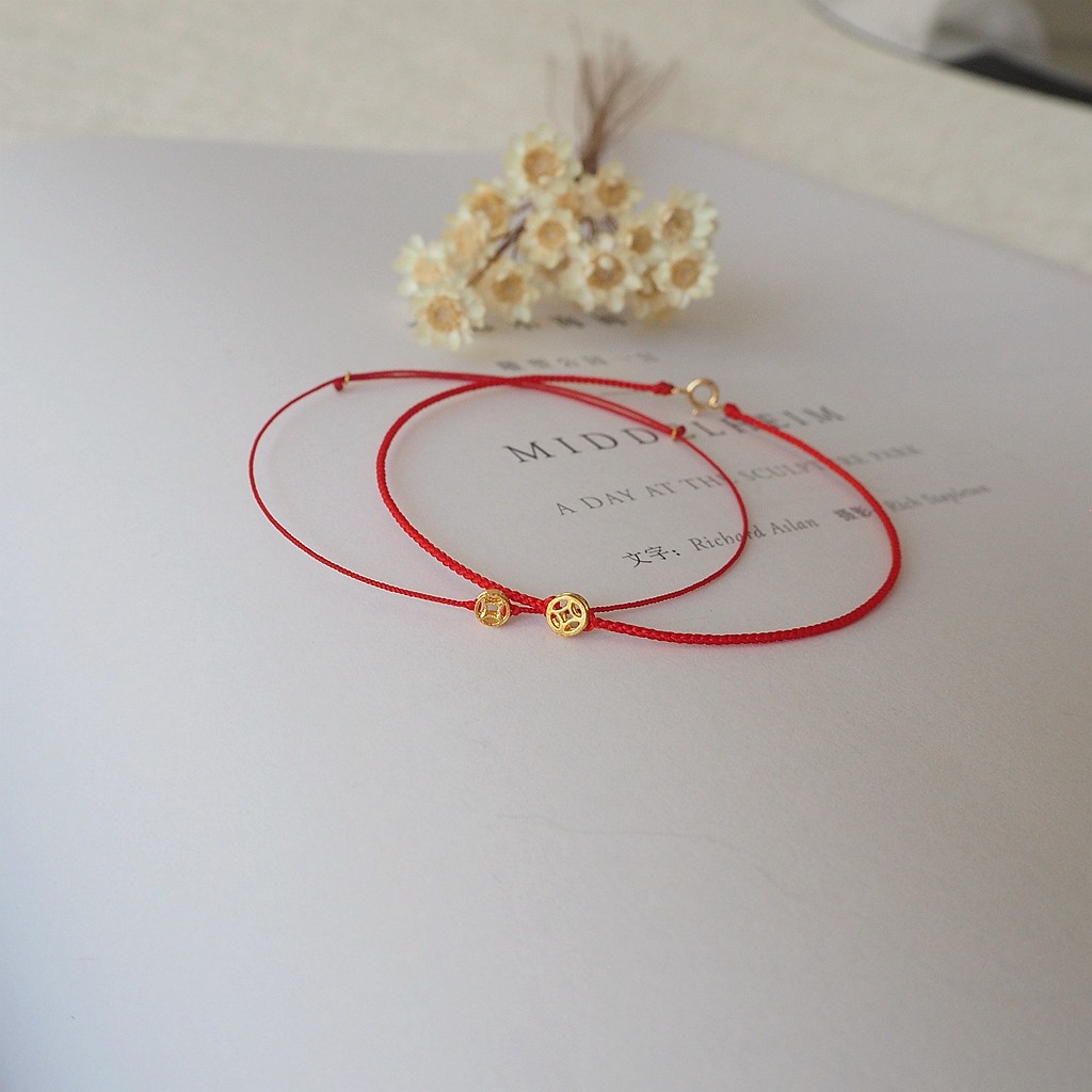Handmade Zodiac Year Red Rope Bracelet, Huge and Fine 999 Pure Gold Coin Gold Coin Bracelet, Bracelet, Gift for Men and Women