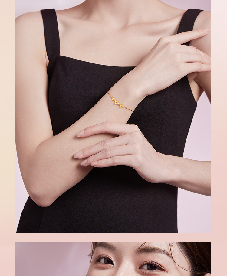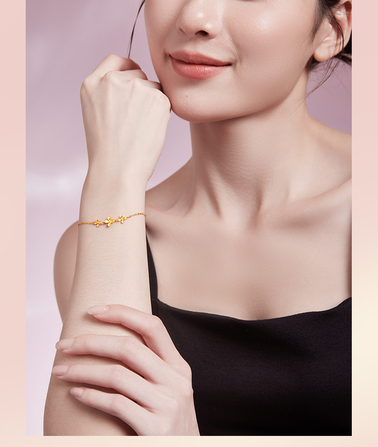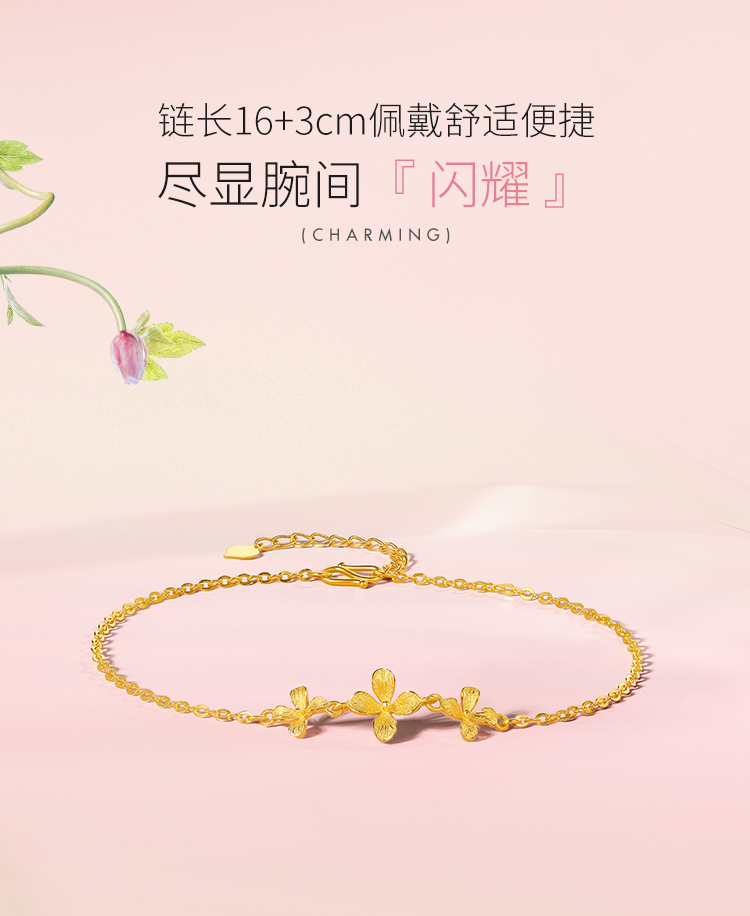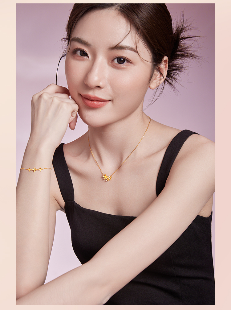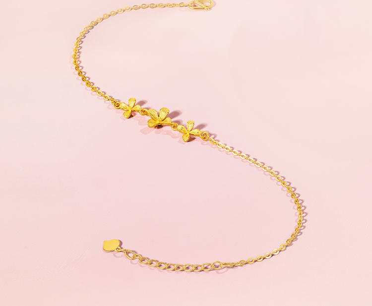 Zhou Liufu Gold Hydrangea Bracelet Women's Flower Set Valuation Full Gold Wedding Three Gold to Send Girlfriend Holiday Gifts