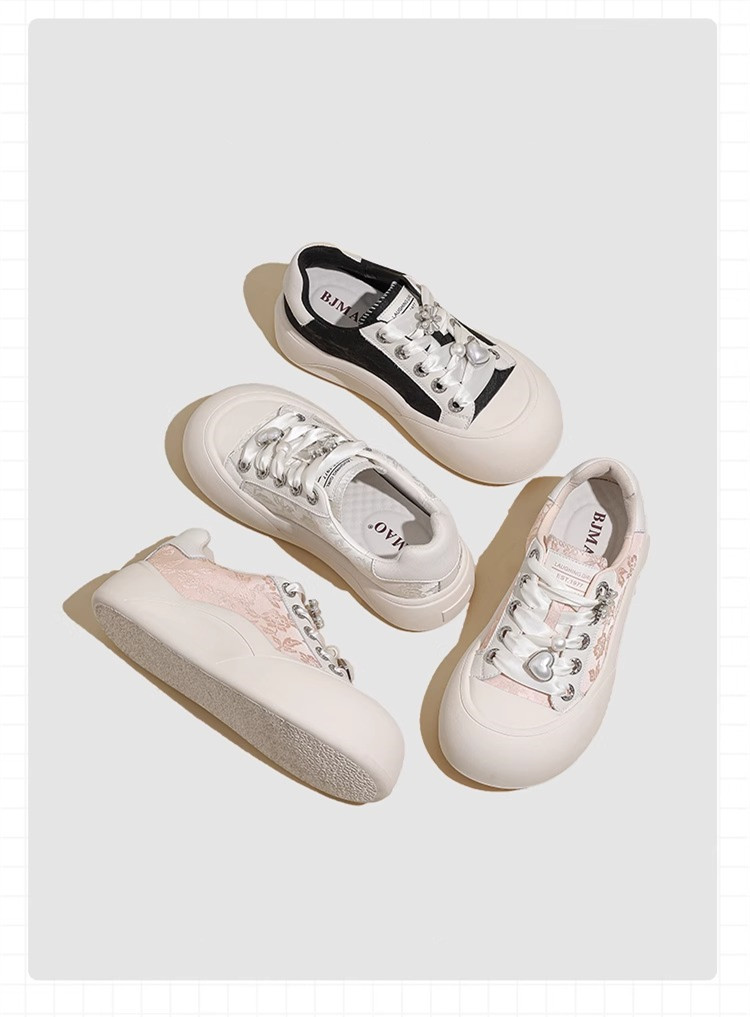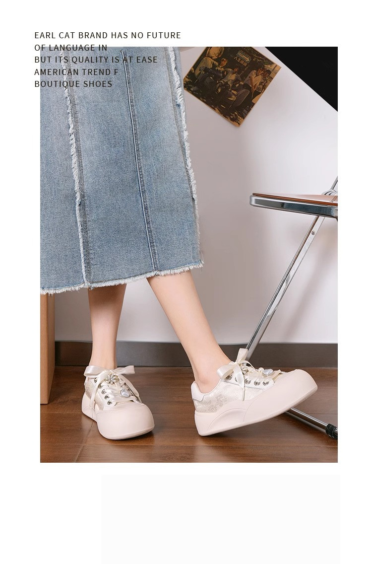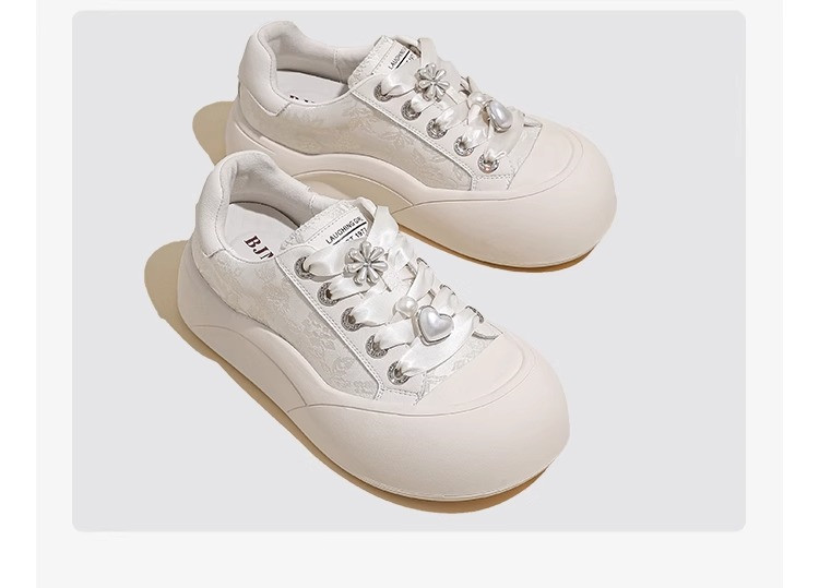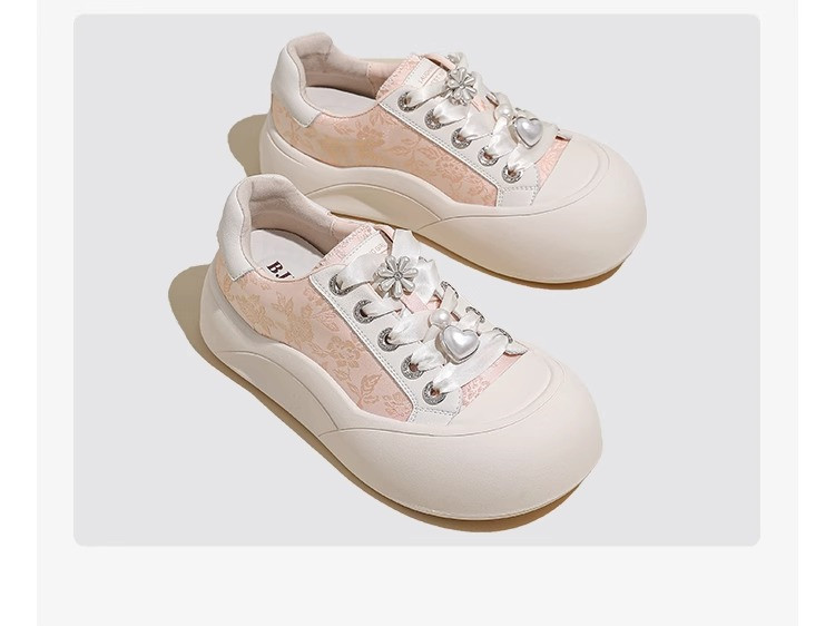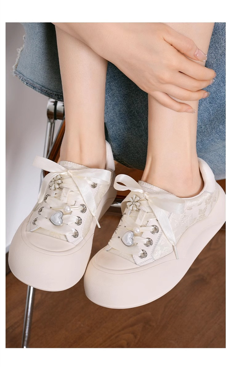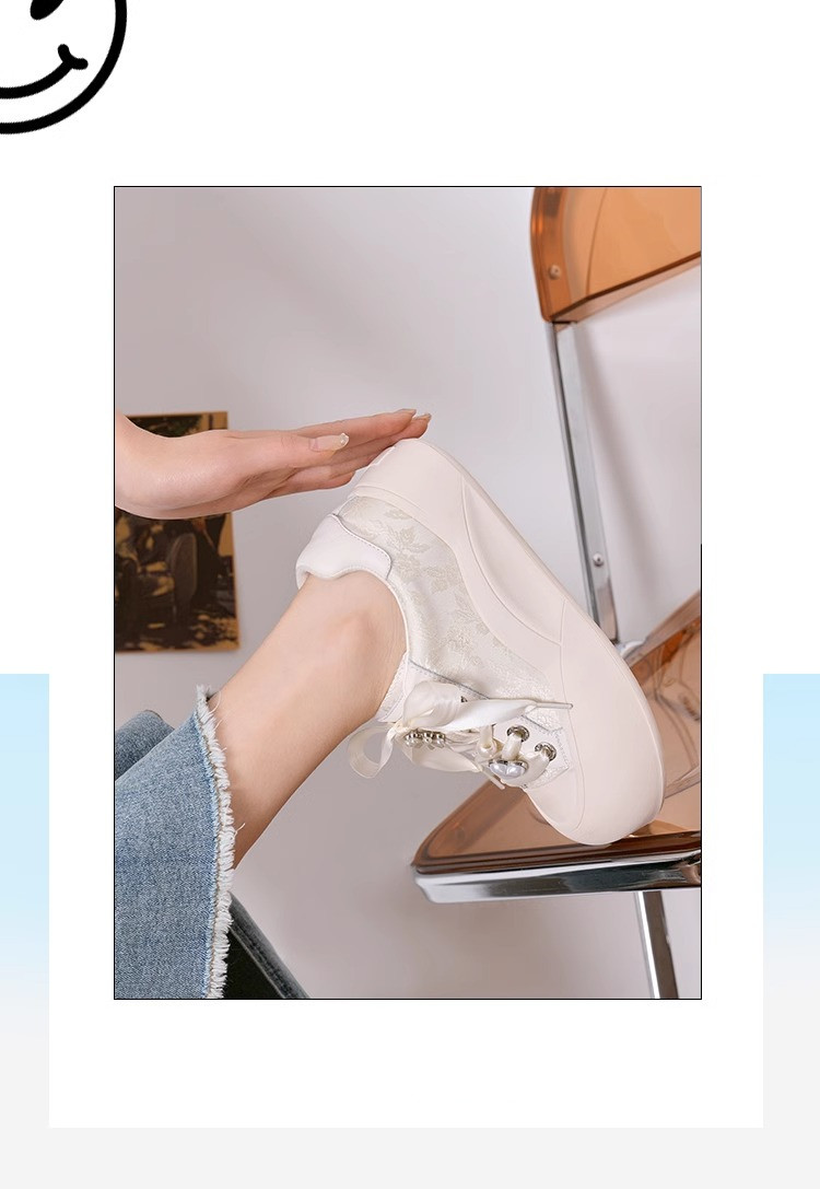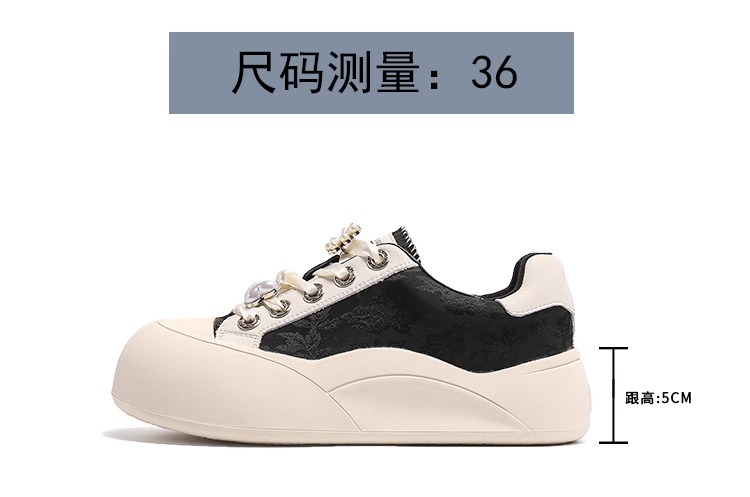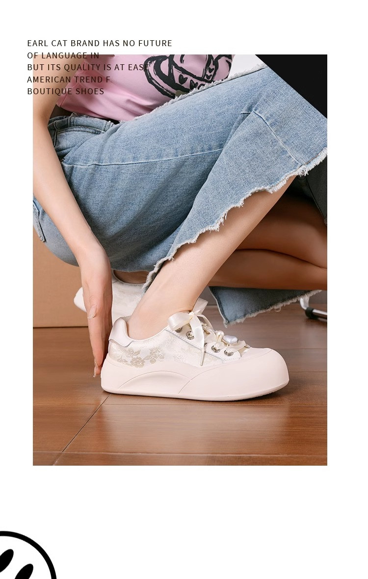 Hong Kong Casual Training Shoes for Women 2025 Spring and Autumn New Thick-Soled Versatile Sneakers Round-Toe National Trend Embroidered White Shoes