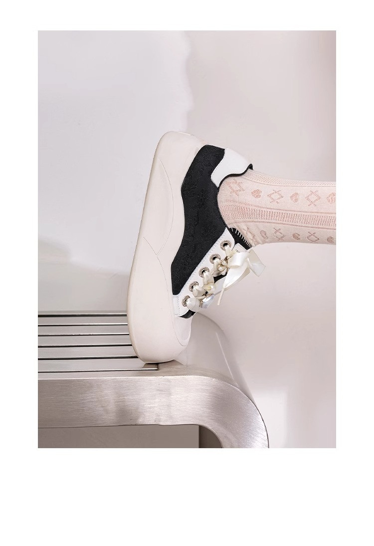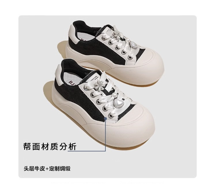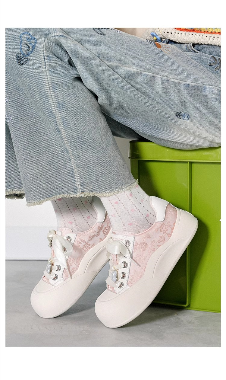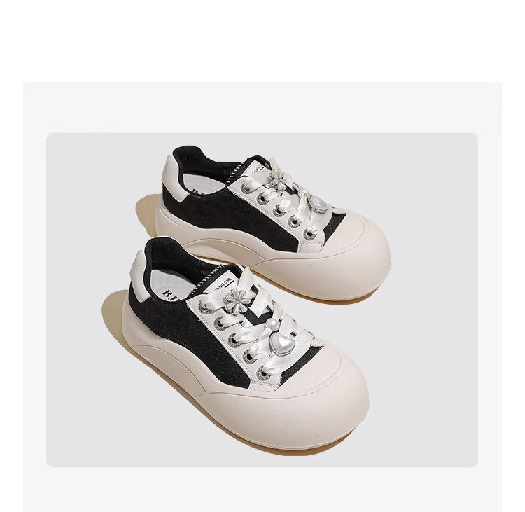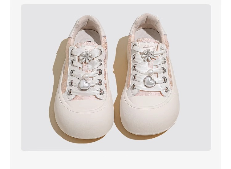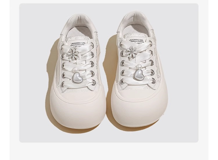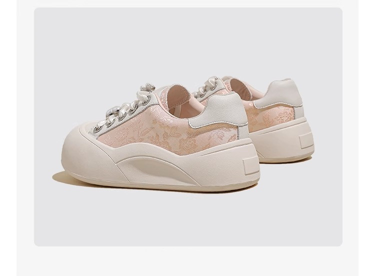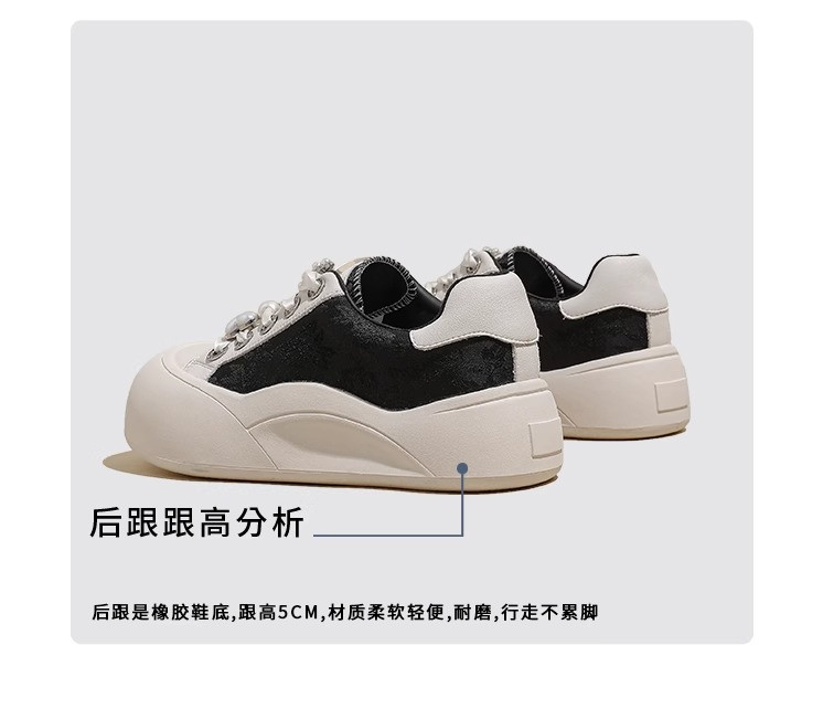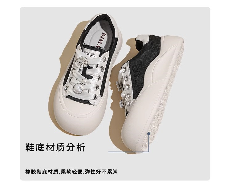 Hong Kong Casual Training Shoes for Women 2025 Spring and Autumn New Thick-Soled Versatile Sneakers Round-Toe National Trend Embroidered White Shoes