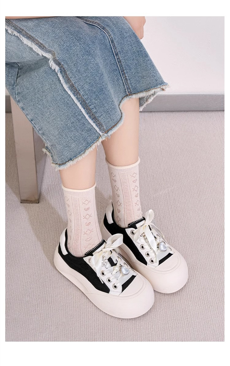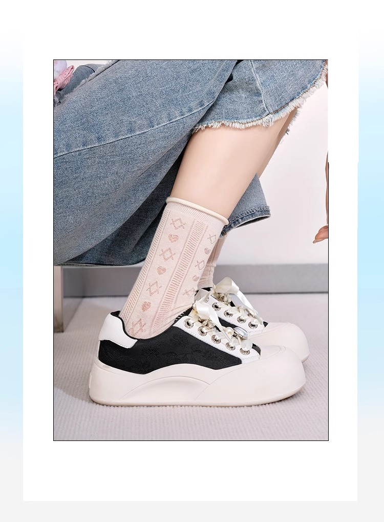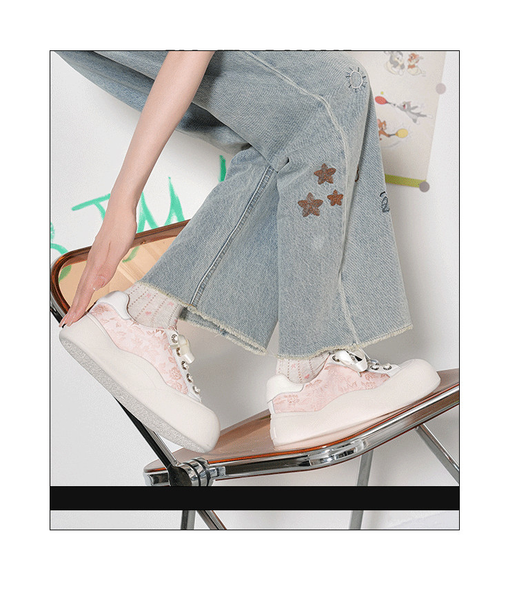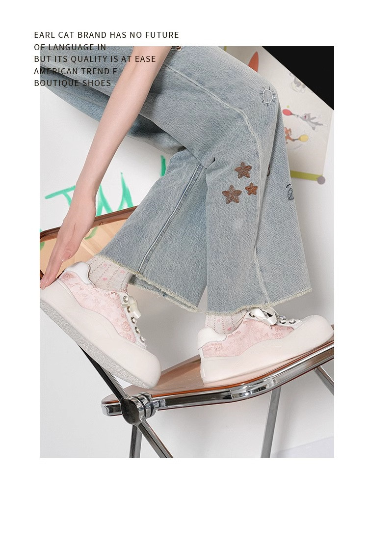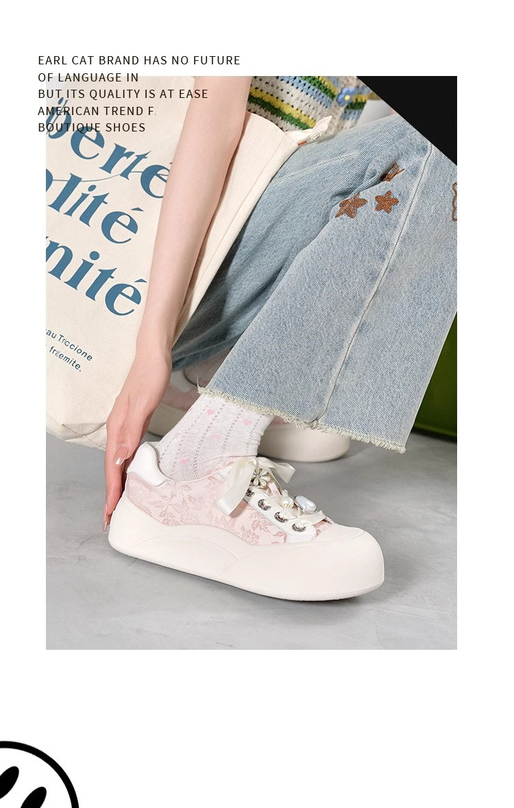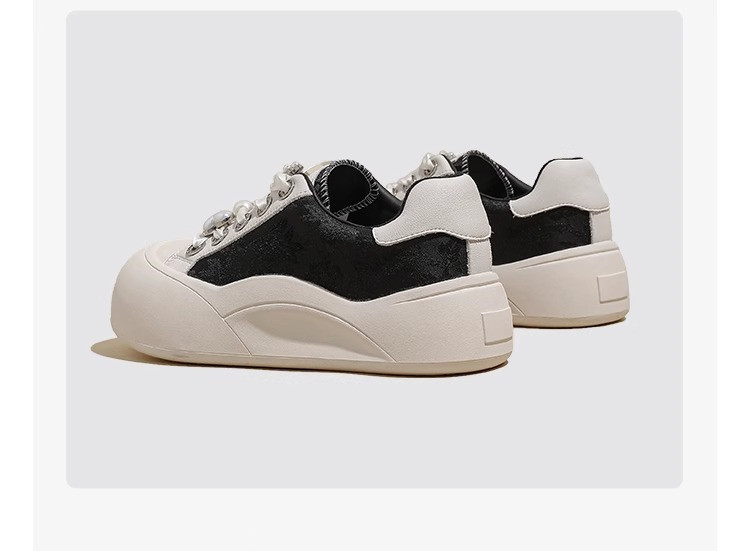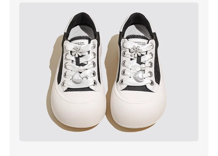 Hong Kong Casual Training Shoes for Women 2025 Spring and Autumn New Thick-Soled Versatile Sneakers Round-Toe National Trend Embroidered White Shoes