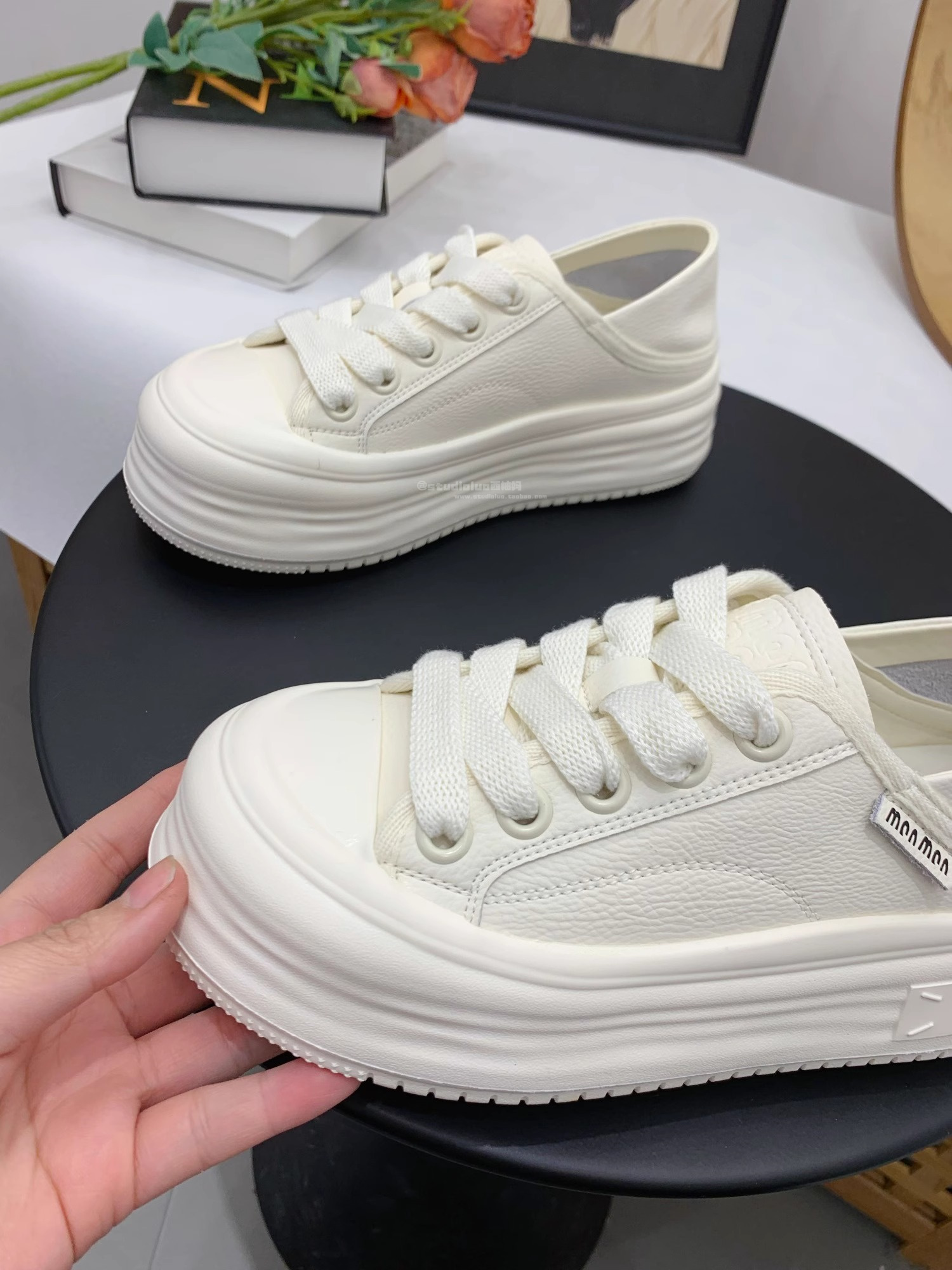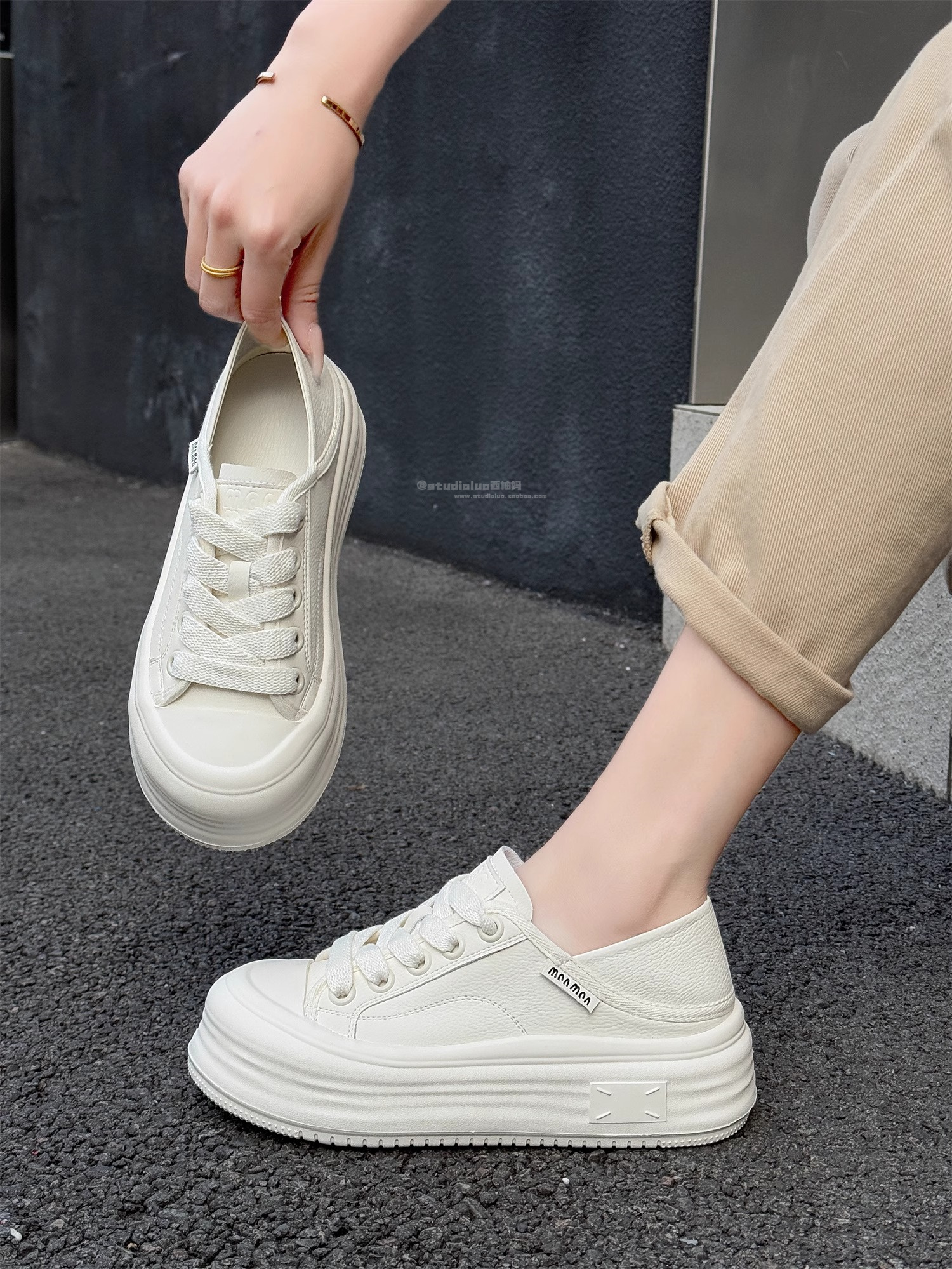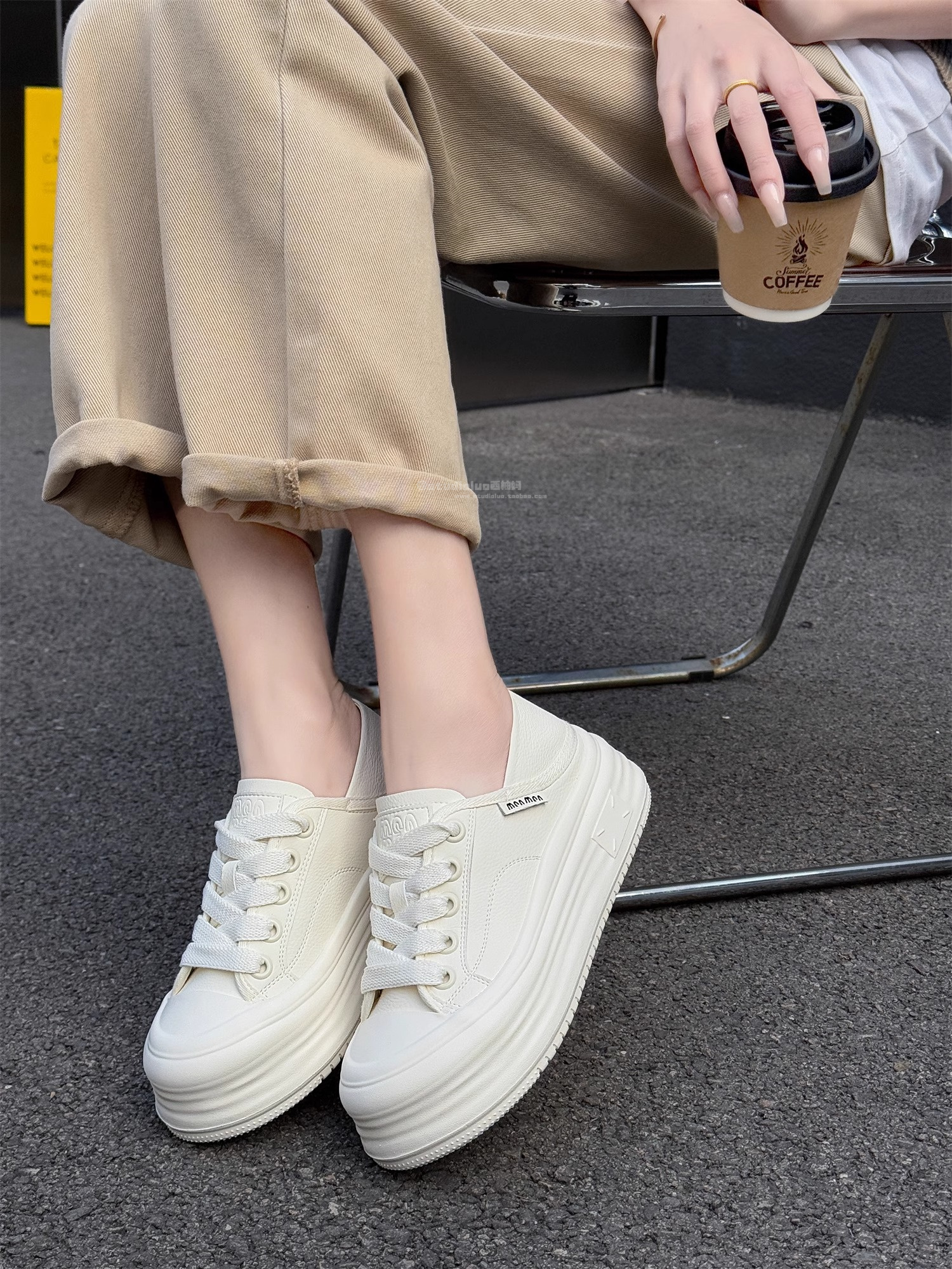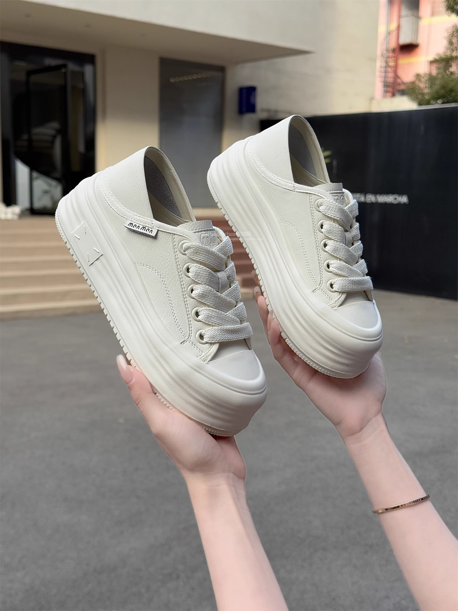 Hong Kong Genuine Leather Breathable White Sneakers for Women 2025 New Spring and Autumn Shoes Thick-Soled Height-Increasing Soft-Soled Cowhide Casual Sneakers