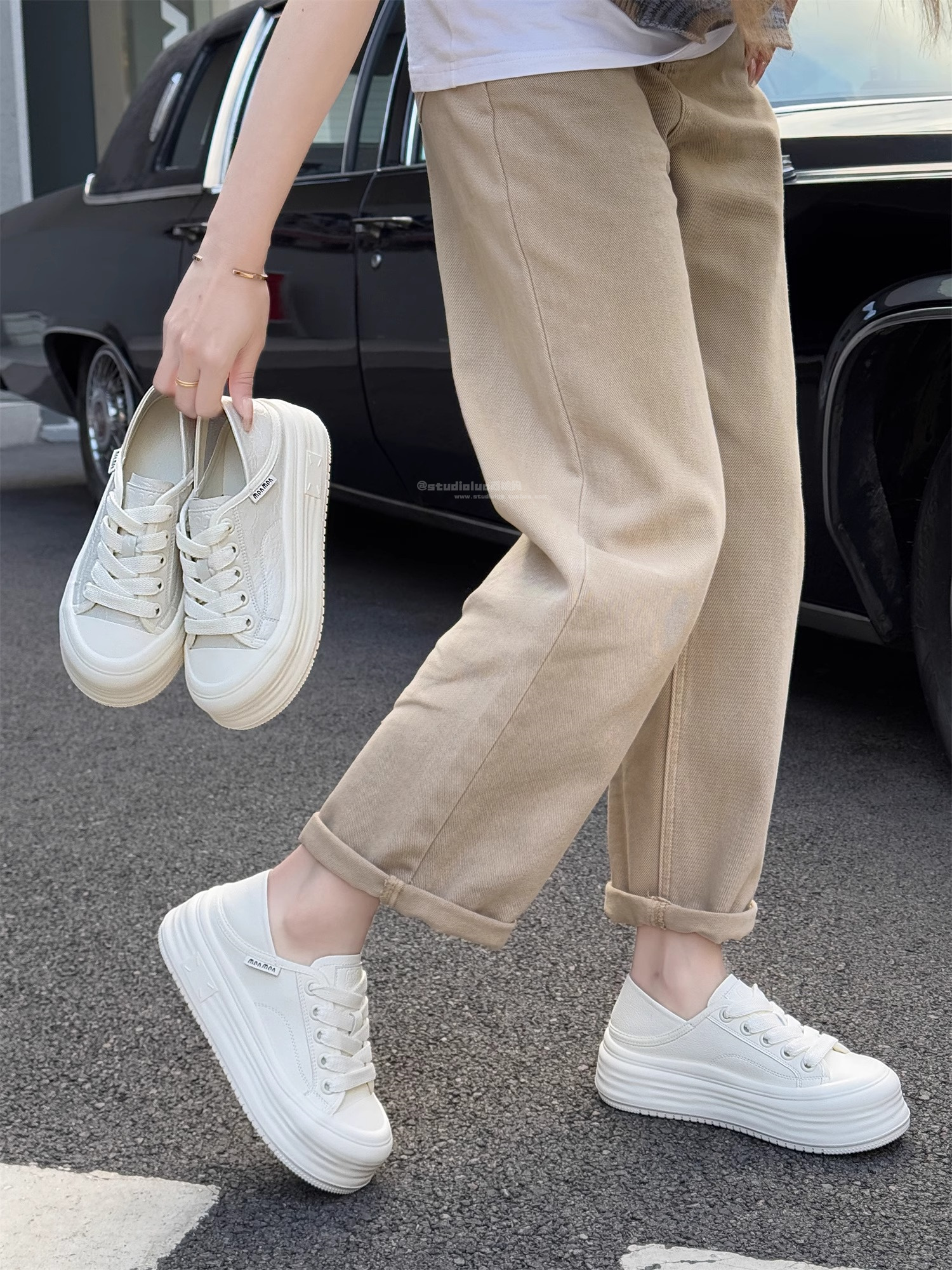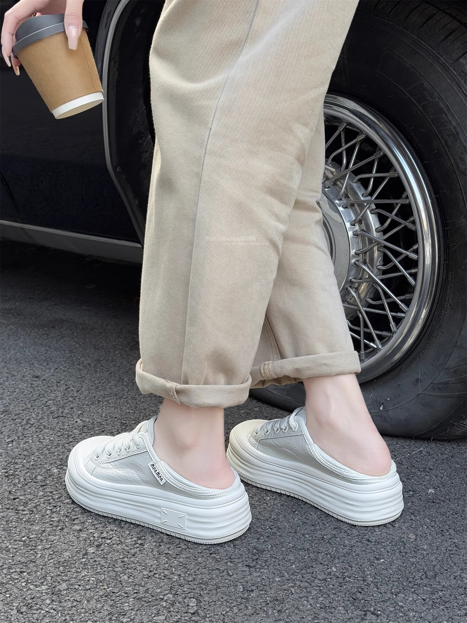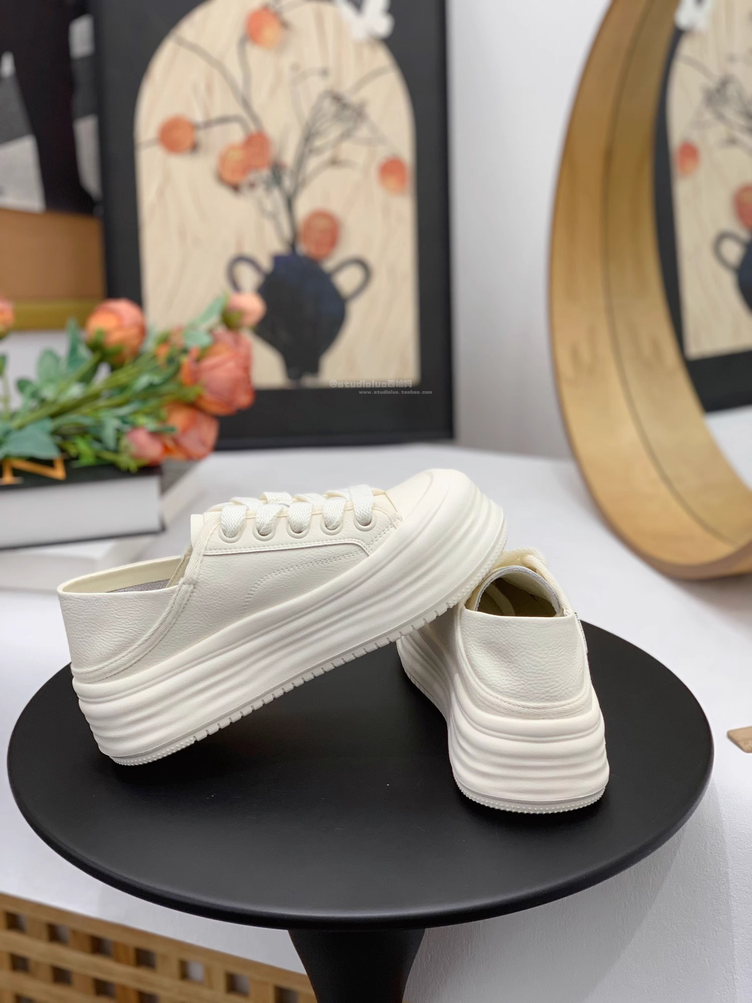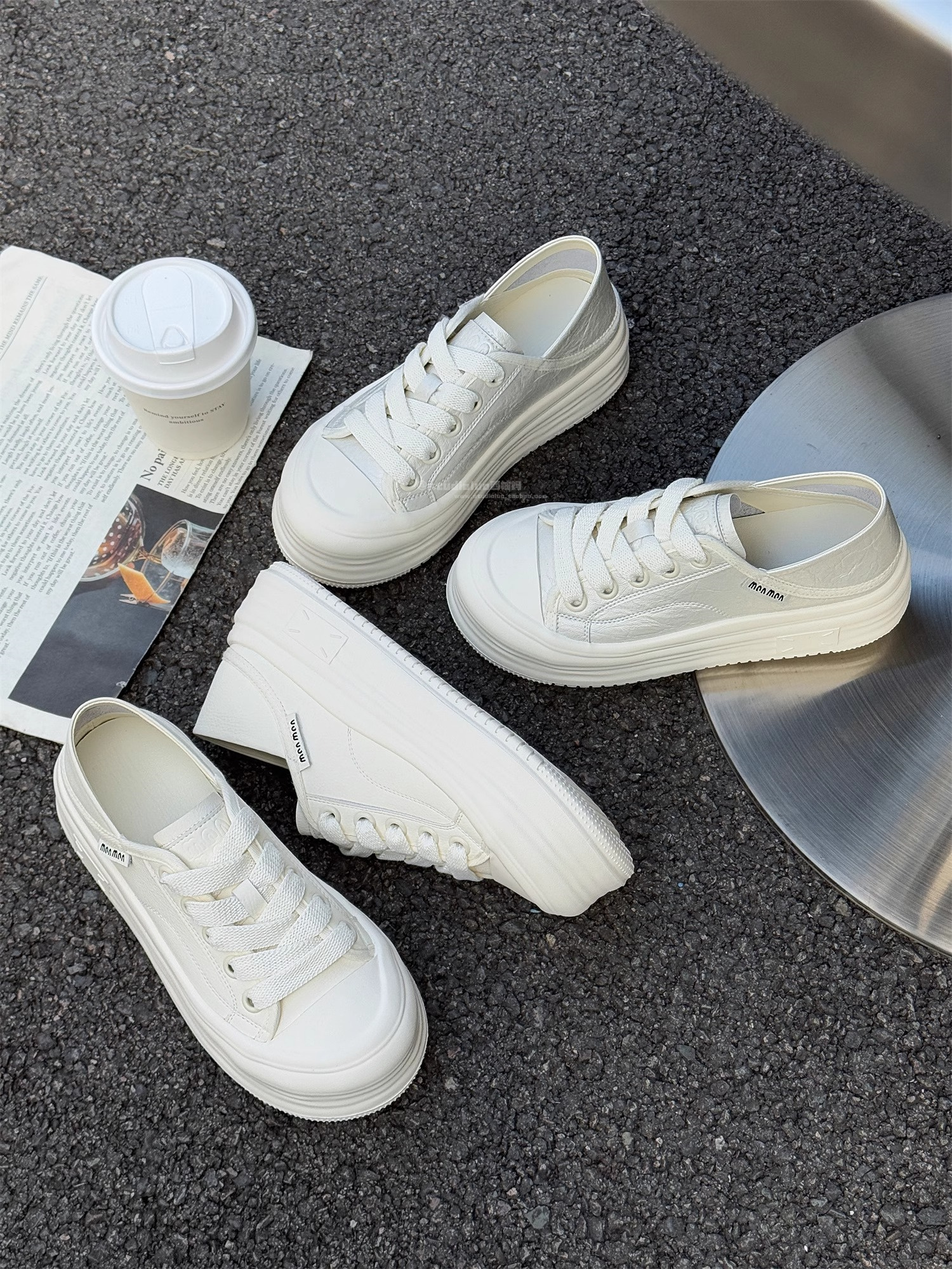 Hong Kong Genuine Leather Breathable White Sneakers for Women 2025 New Spring and Autumn Shoes Thick-Soled Height-Increasing Soft-Soled Cowhide Casual Sneakers