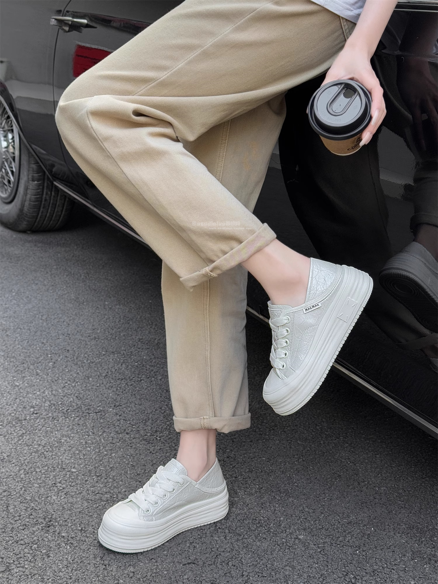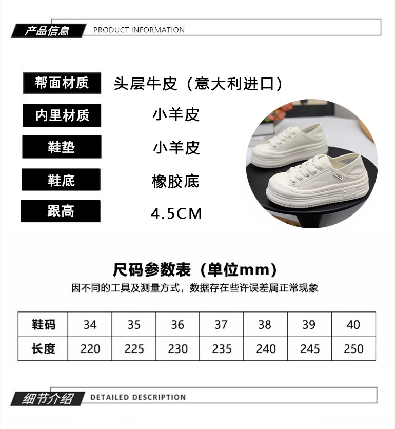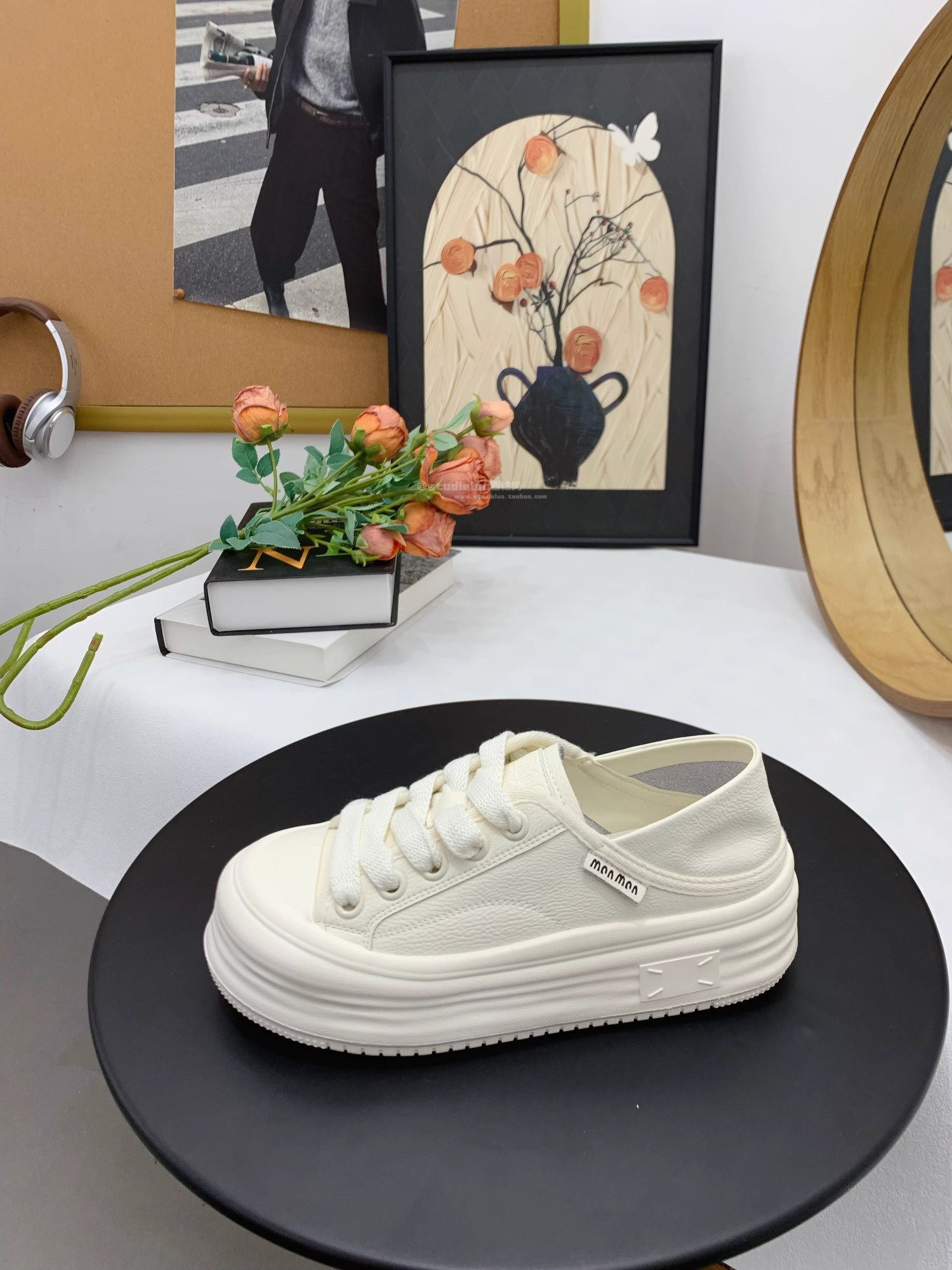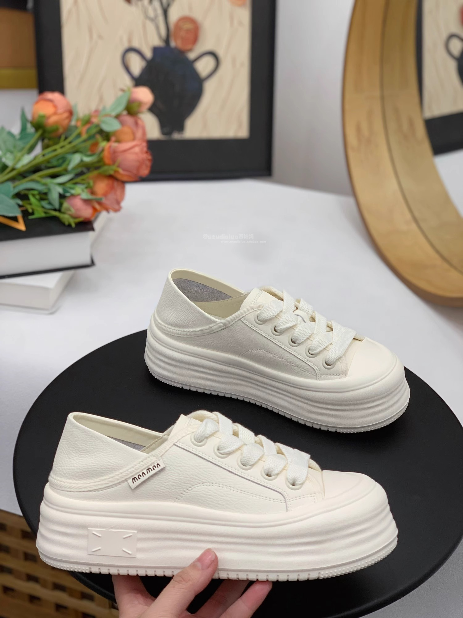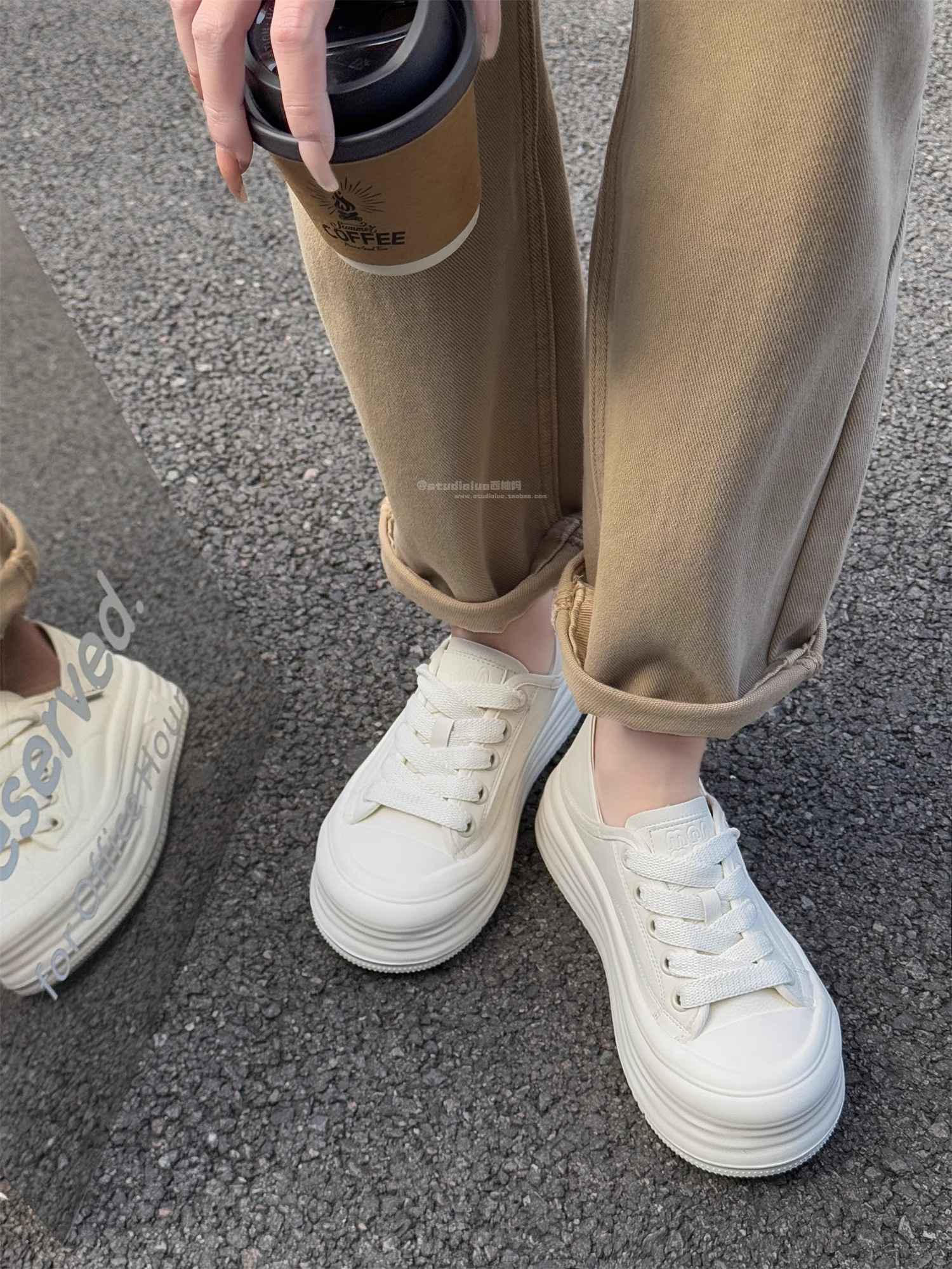 Hong Kong Genuine Leather Breathable White Sneakers for Women 2025 New Spring and Autumn Shoes Thick-Soled Height-Increasing Soft-Soled Cowhide Casual Sneakers
