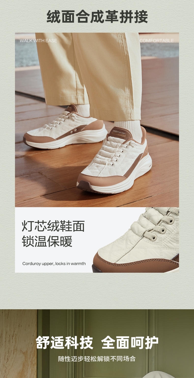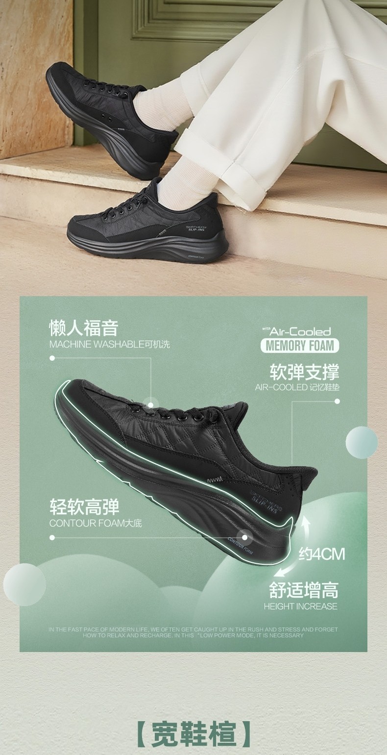 Skechers Cloud Sensation Women's Shoes Autumn and Winter Style with Fleece Lining, Slip-On Casual Sports Shoes, Wide Fit Mom Shoes