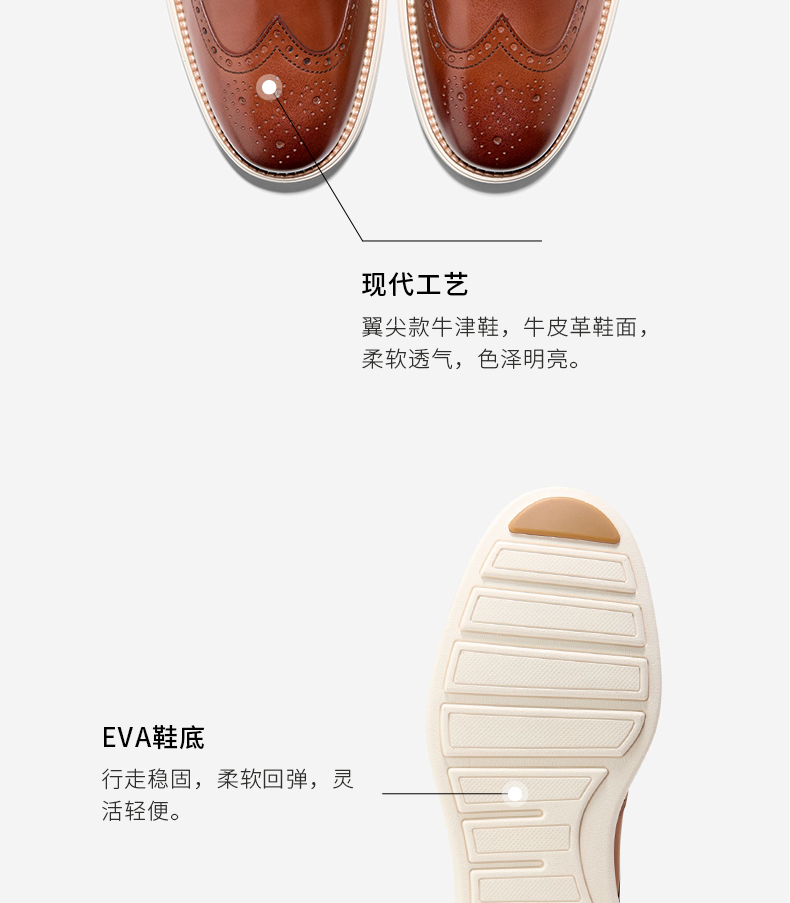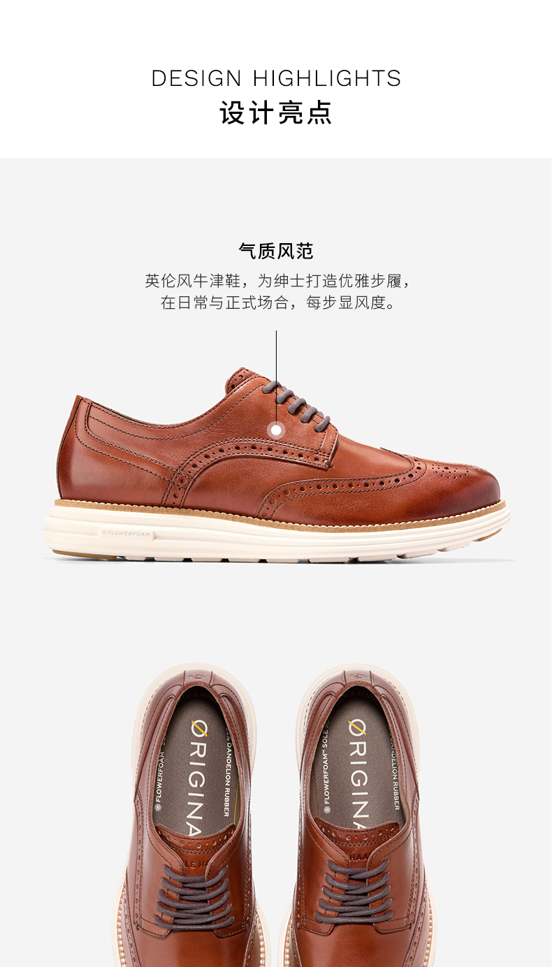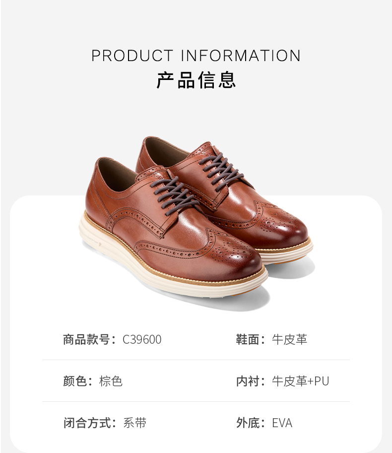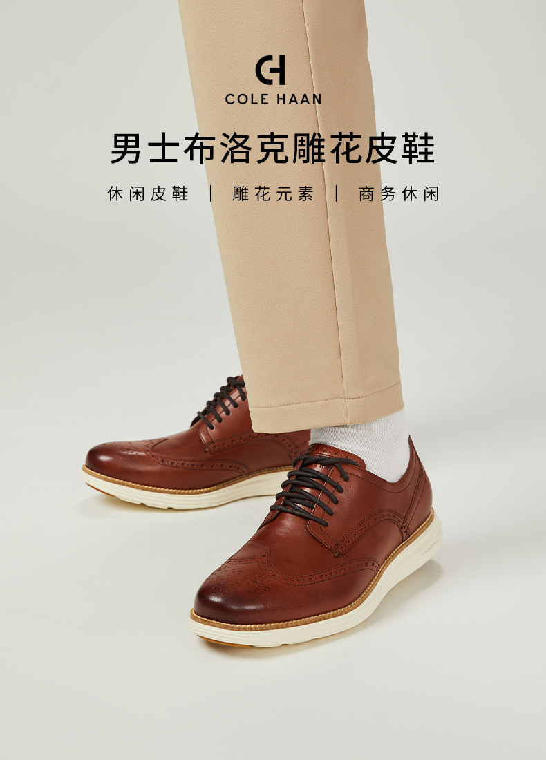 Cole Haan/Ge Han Men Leather Shoes Autumn British Style Brock Carved Dress Shoes C39600
