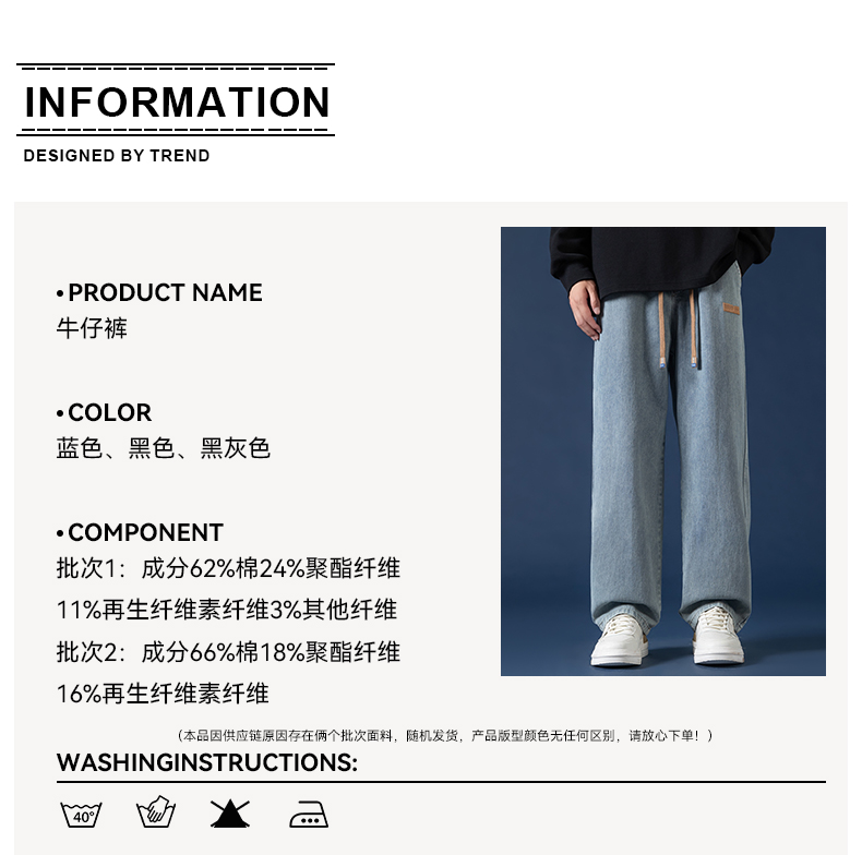 Pull-Back Jeans for Men, Spring and Autumn 2025 New Style, American Retro Straight-Leg Loose Wide-Leg Men's Casual Trousers