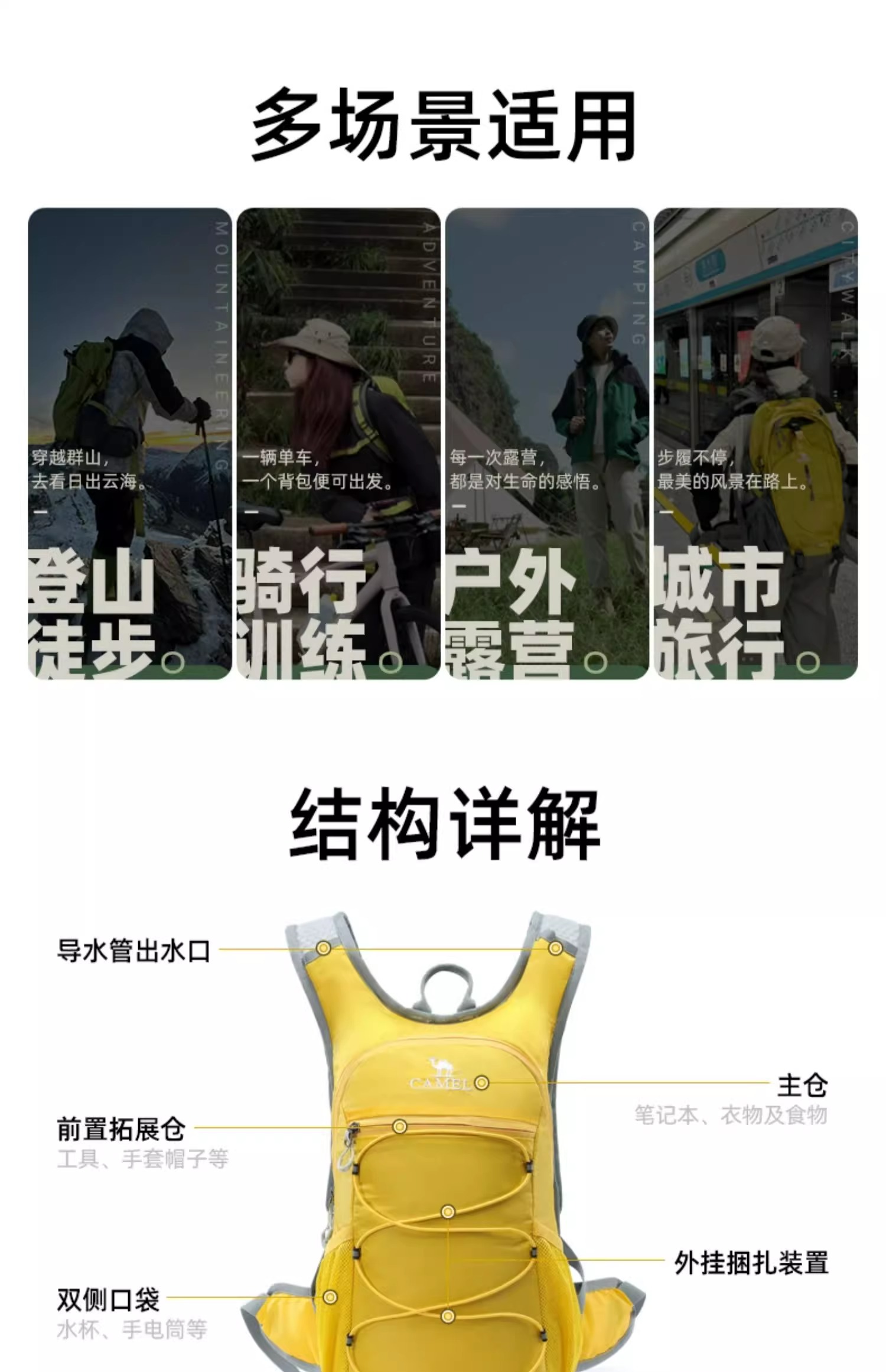 Camel Bee Bag Outdoor Mountaineering Bag Women's Lightweight Travel Hiking and Climbing 2025 New Backpack Sports Backpack