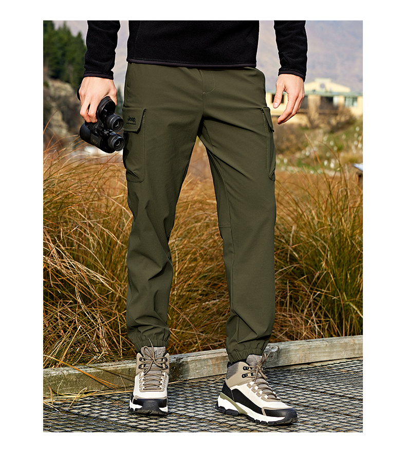 Jeep Outdoor Water-Repellent Softshell Pants for Men, Windproof Hiking and Trekking Pants, American Style Work Pants for Autumn and Winter