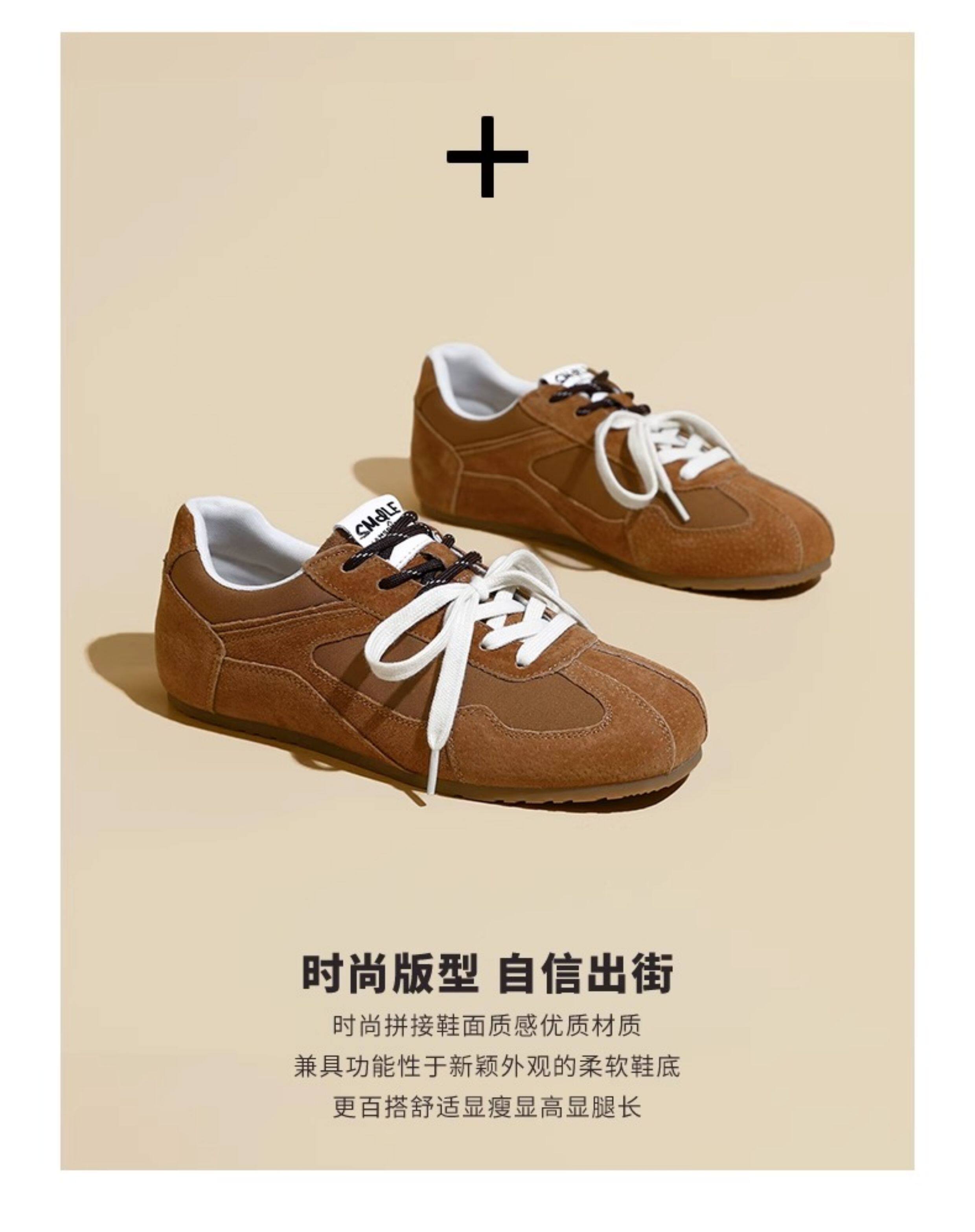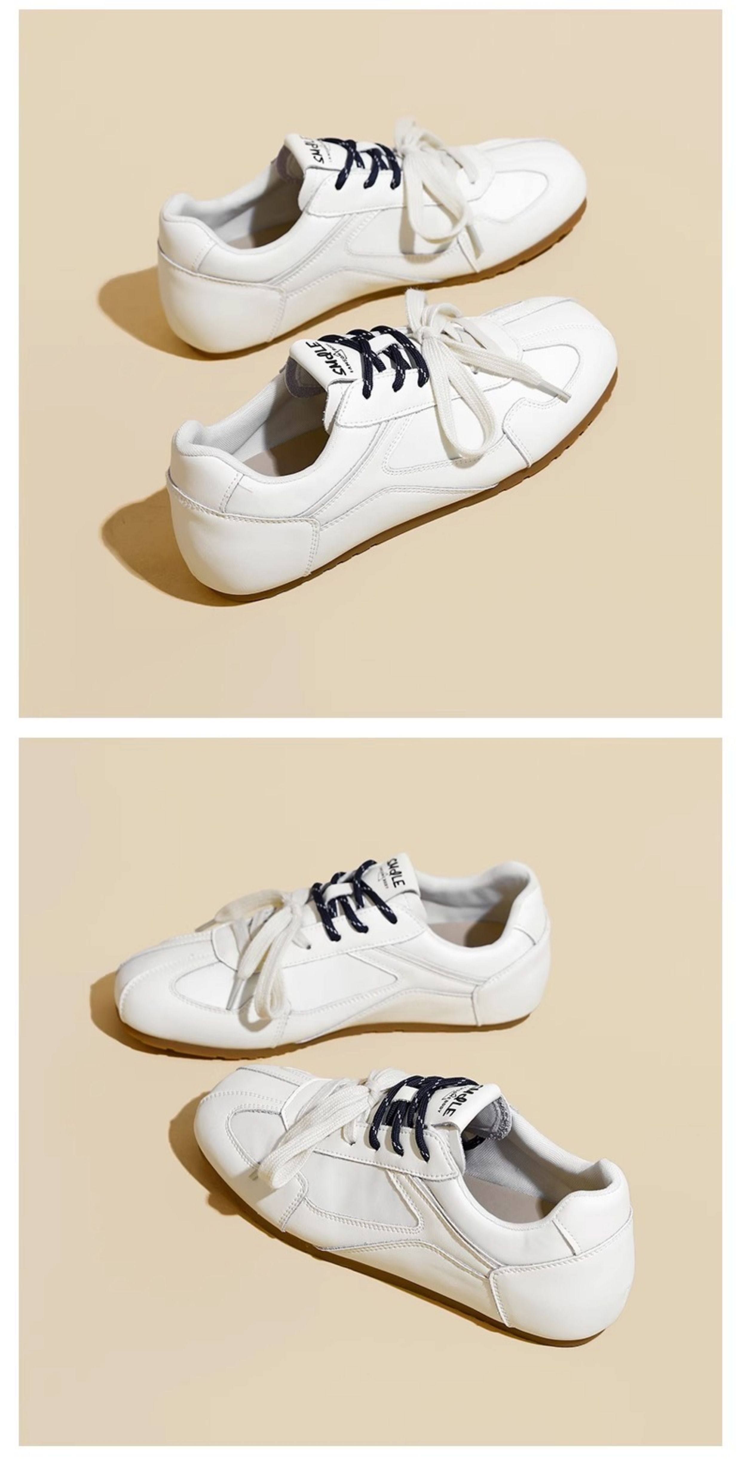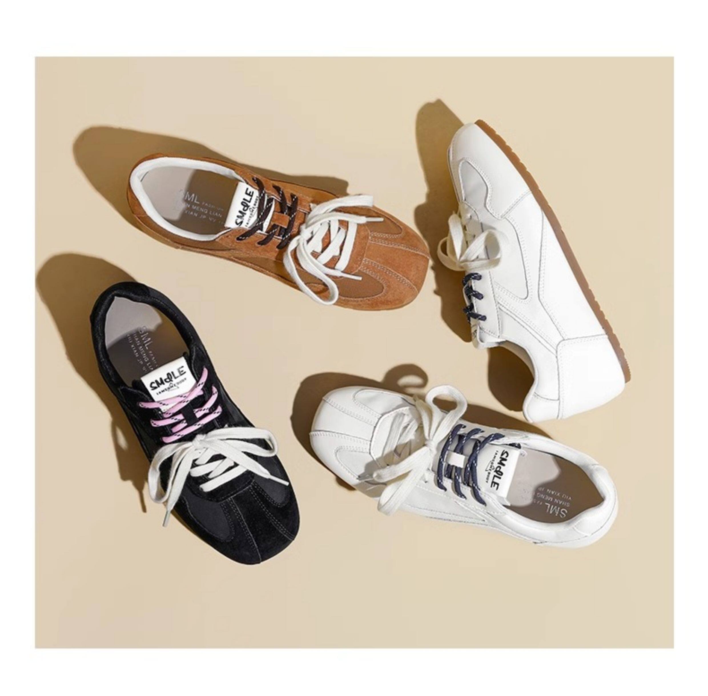 Hong Kong 2026 Spring and Autumn New Retro Flat Genuine Leather German Training Shoes for Women, Korean Style Breathable Slimming Casual Sneakers