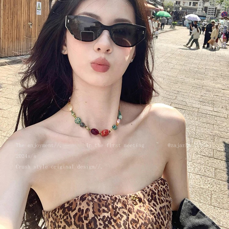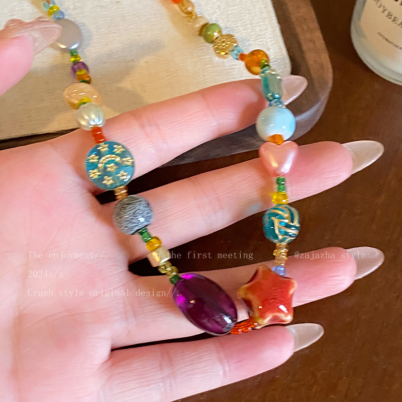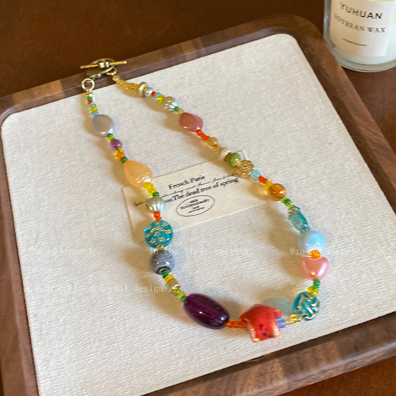 Ethnic Style Dopamine Beaded Necklace for Women, Seaside Vacation Clavicle Chain, Light Luxury Niche Design, High-End Accessories