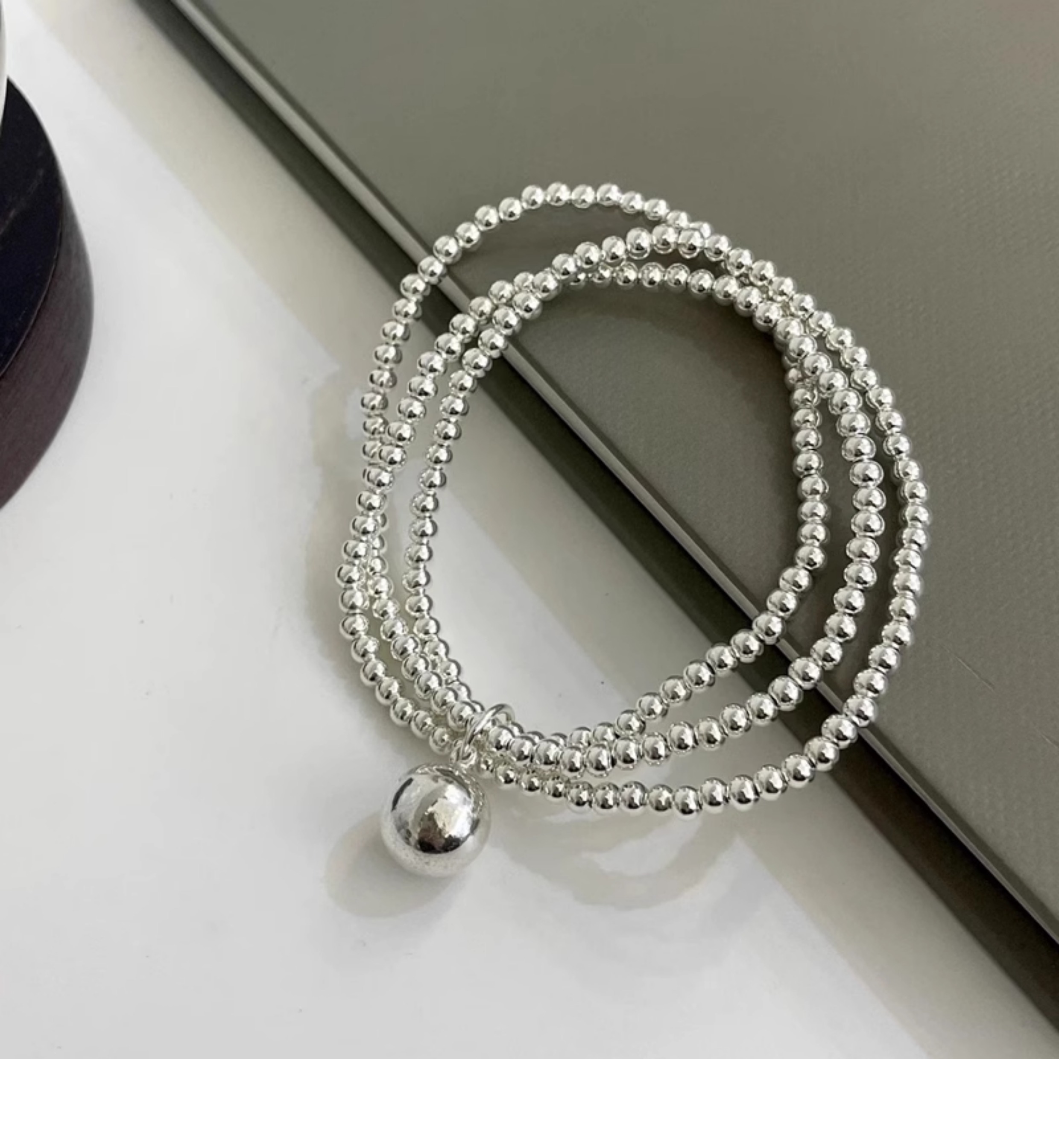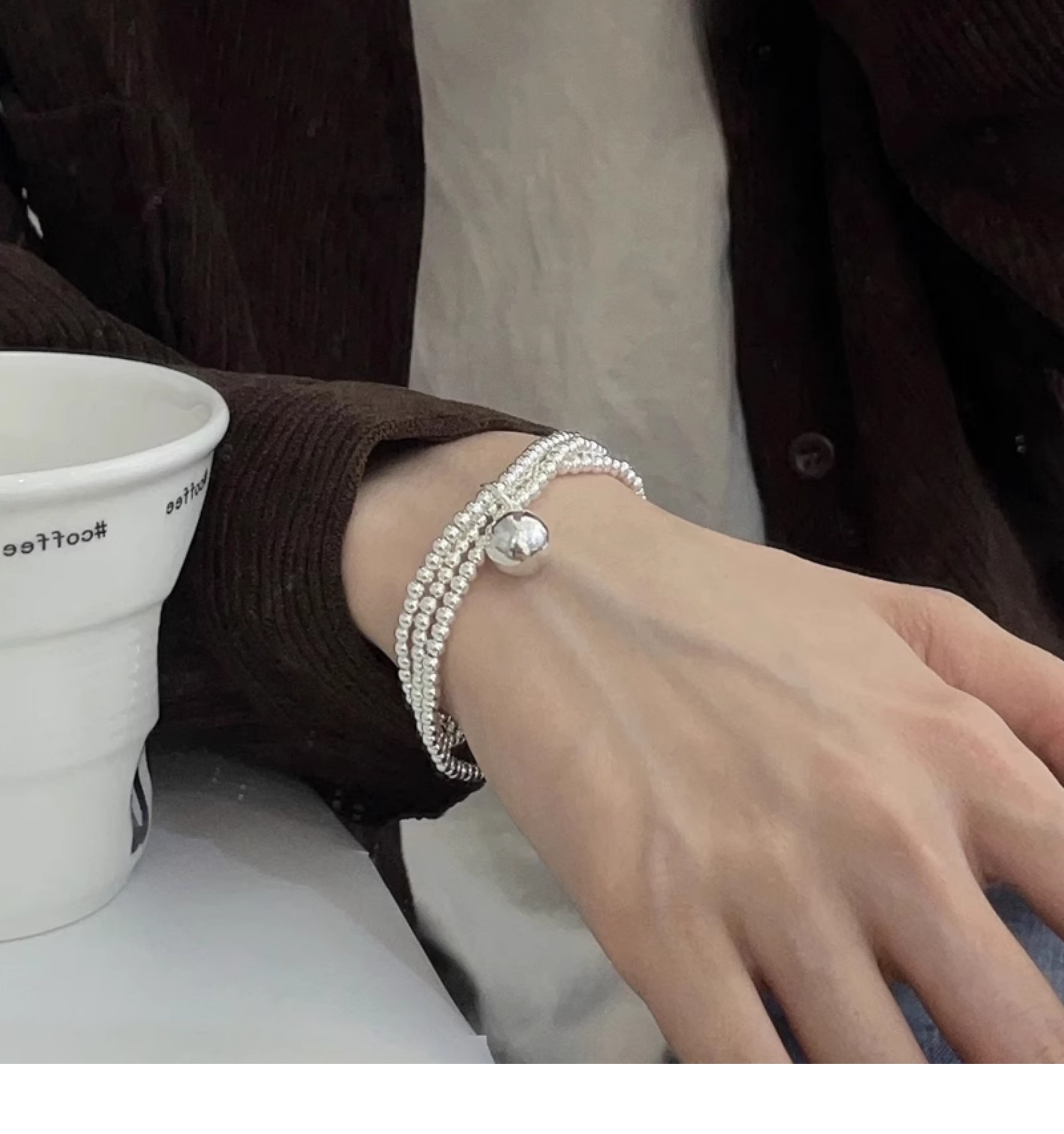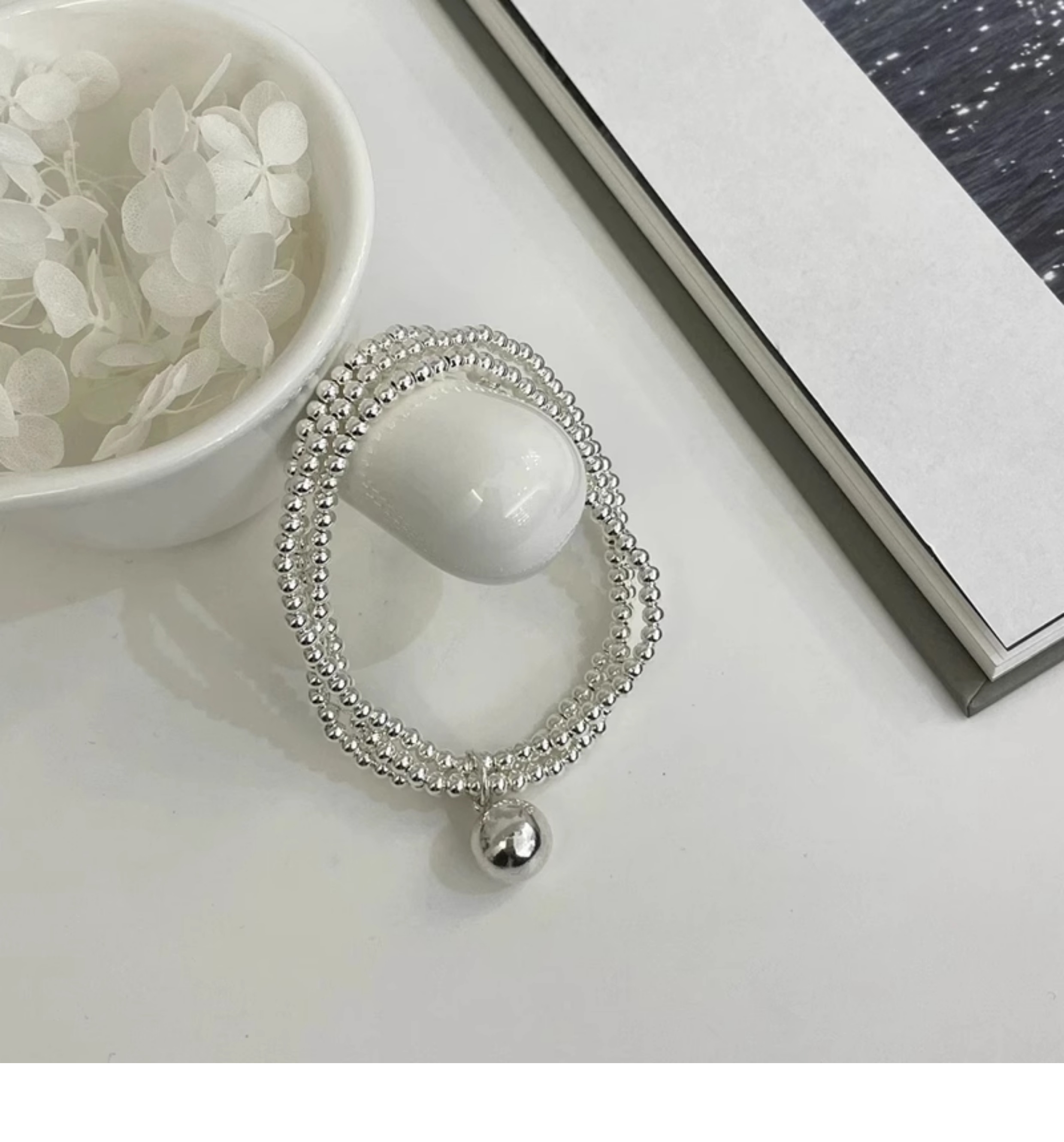 S925 Sterling Silver Korean Style Simple Three-Circle Silver Bead Bracelet Minimalist Responsive Light Bead Bracelet
