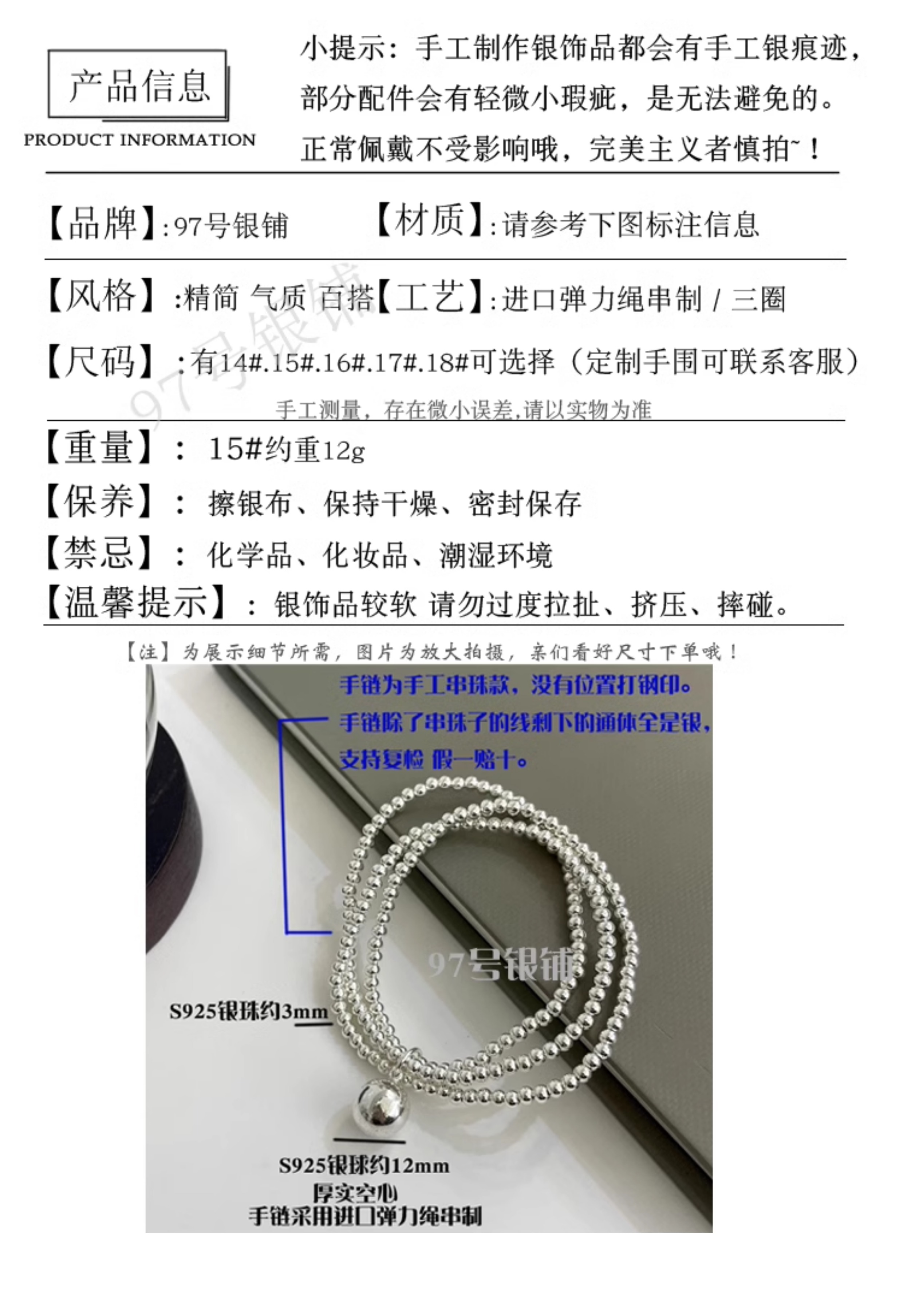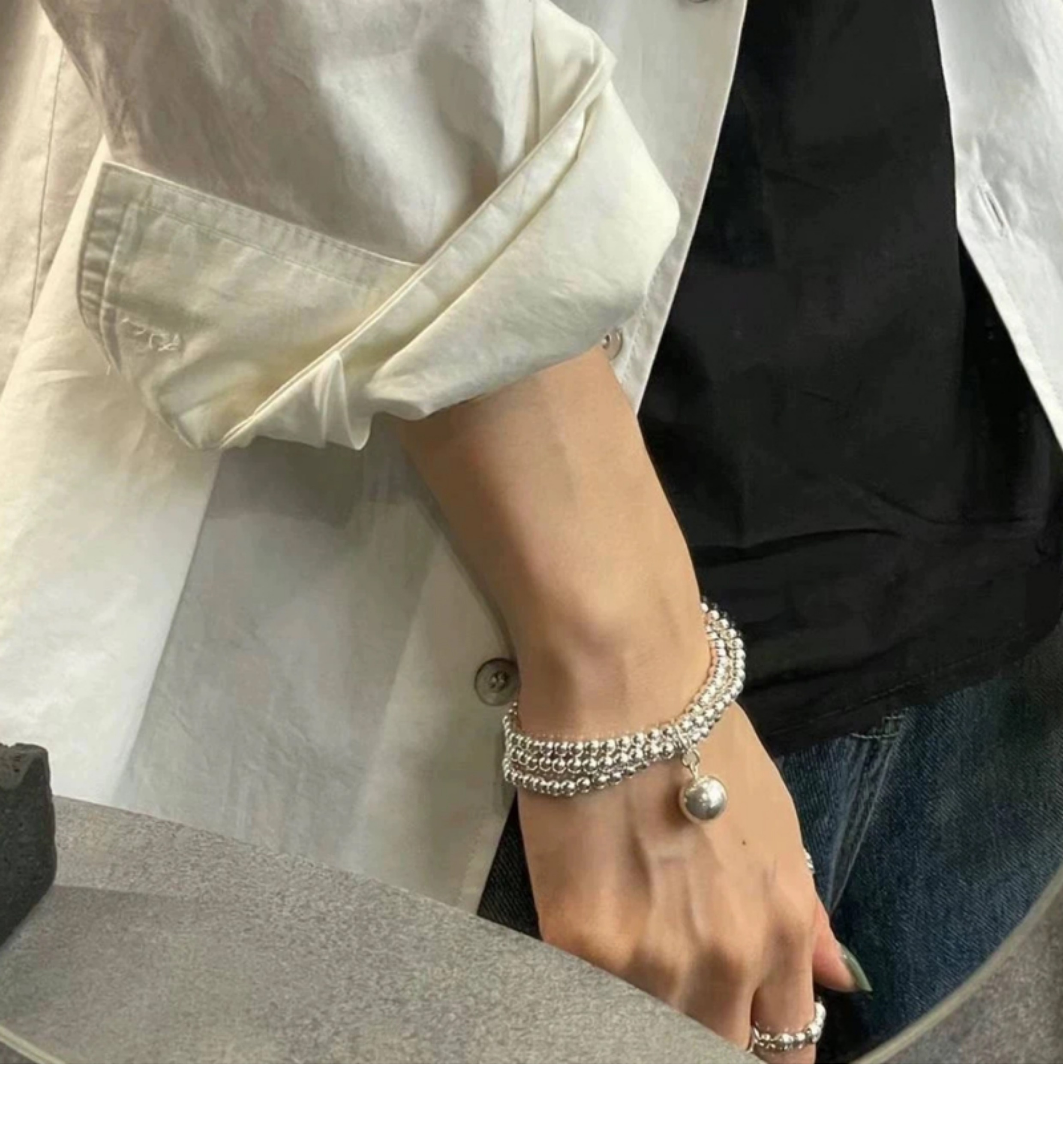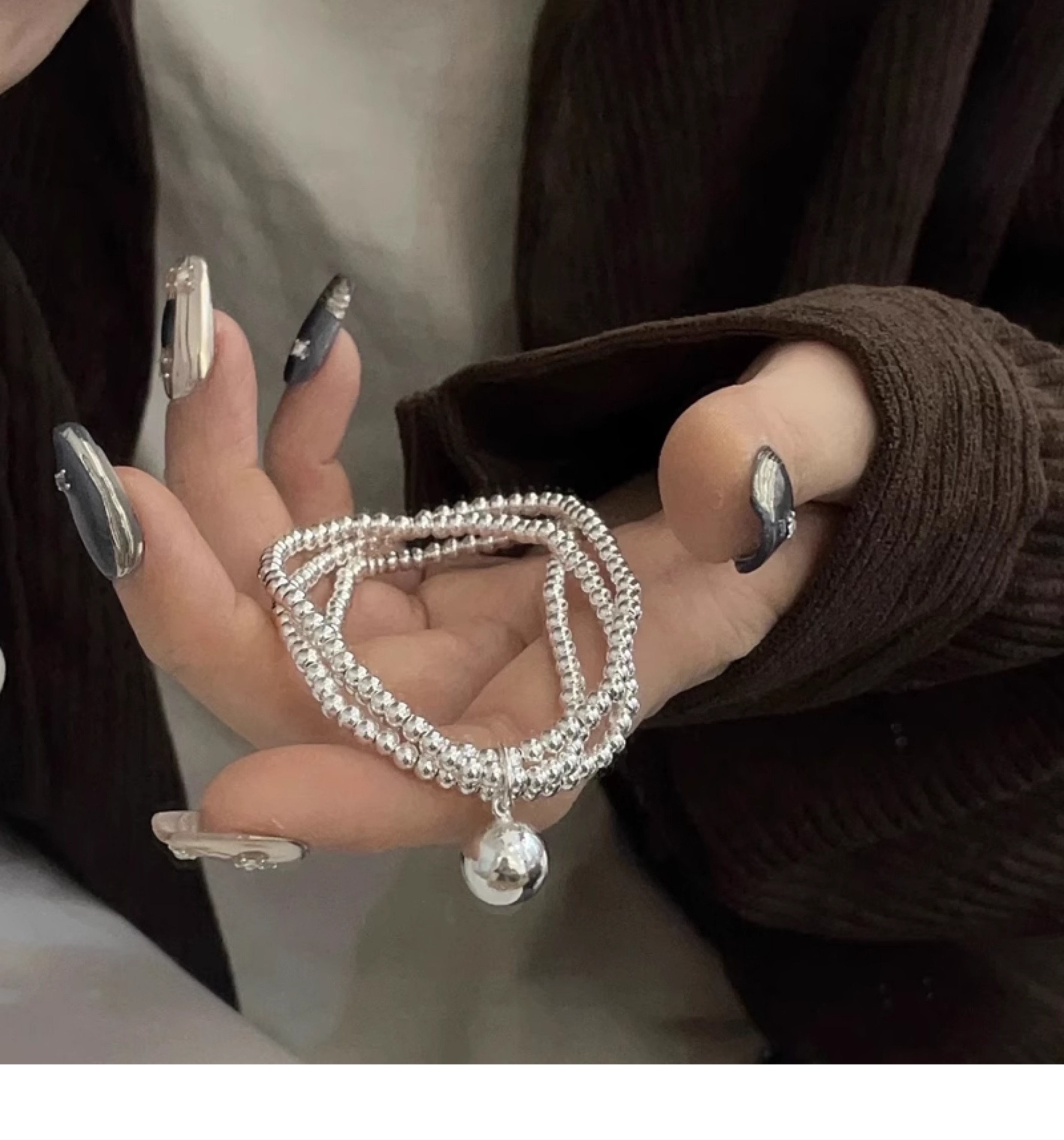 S925 Sterling Silver Korean Style Simple Three-Circle Silver Bead Bracelet Minimalist Responsive Light Bead Bracelet