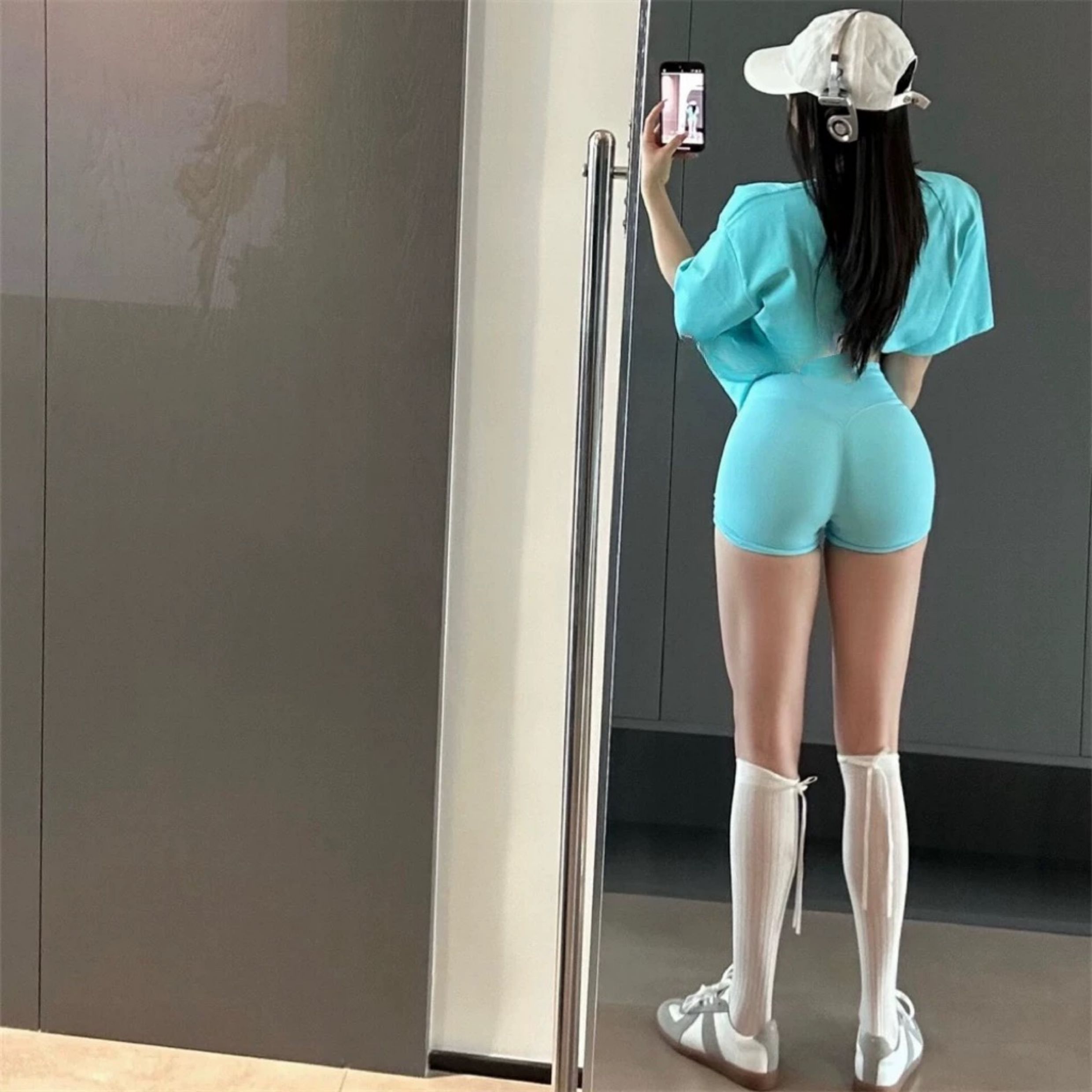 Trendy European and American Peach-Shaped Butt-Lifting Sports Shorts for Women, High-Waisted, Tummy Control, Slimming, Running, Training, Butt-Enhancing Fitness Shorts