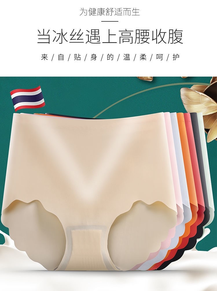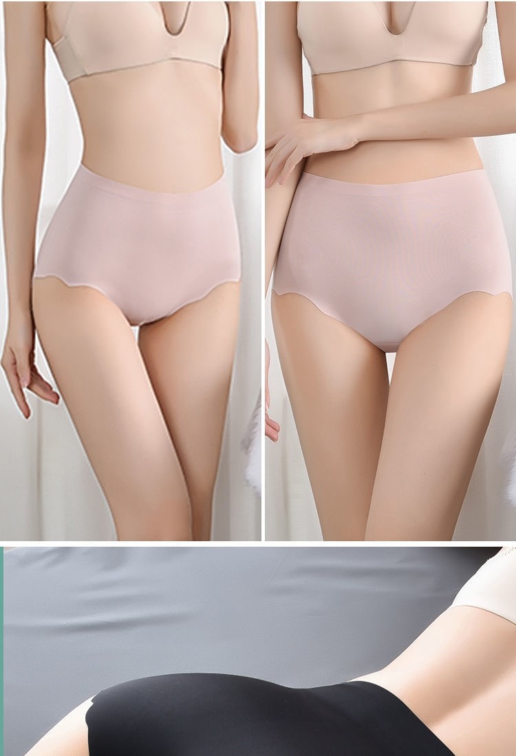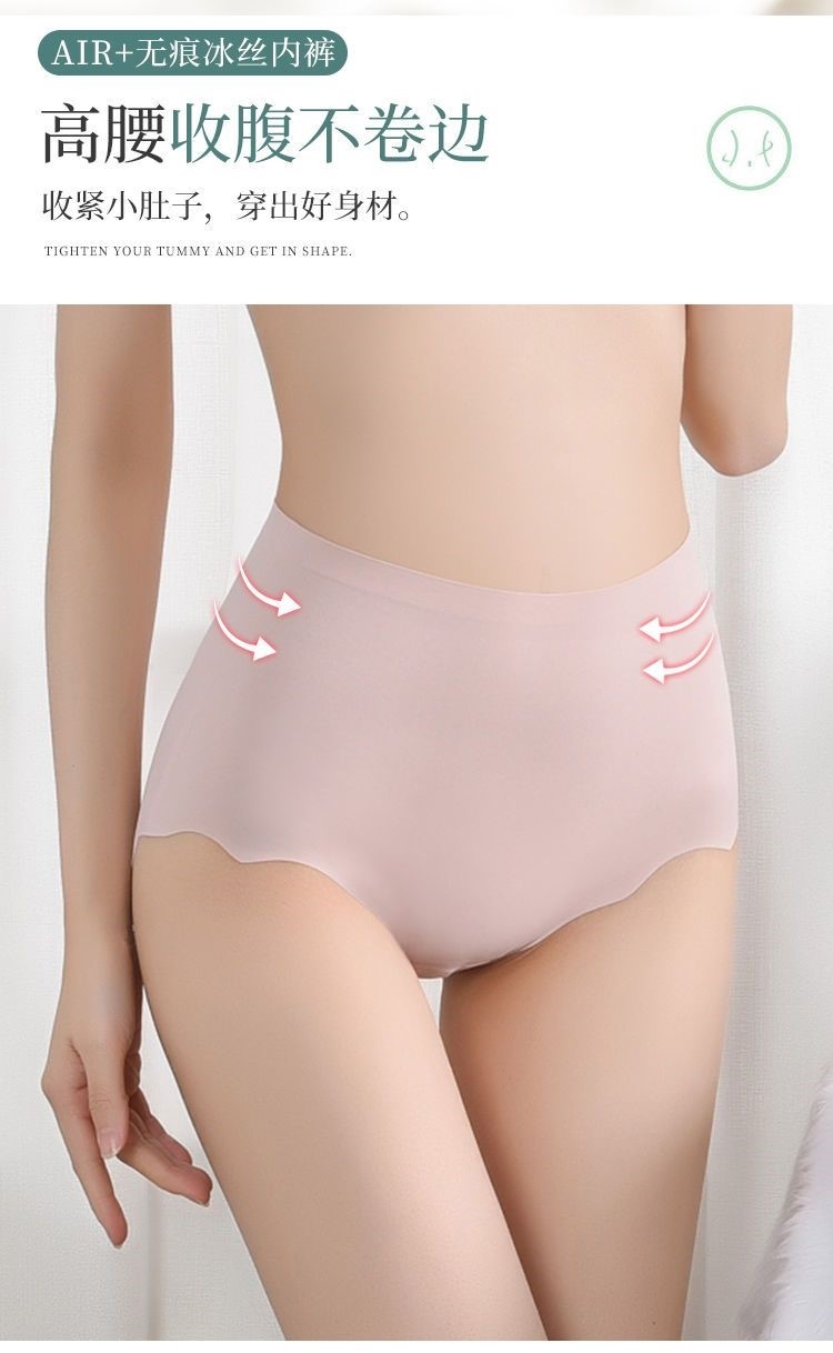 Women's Ice Silk Seamless High-Waisted Tummy Control Butt-Lifting Plus-Size Summer Breathable Nude-Feel Briefs