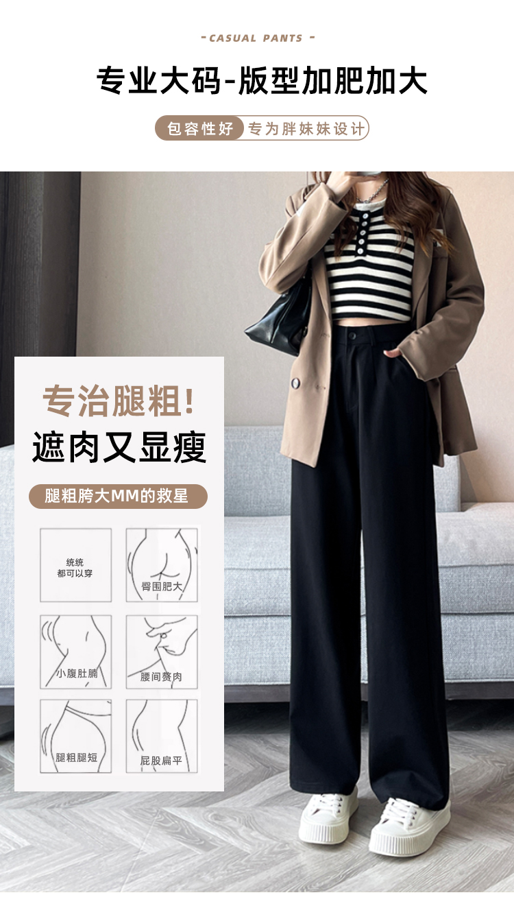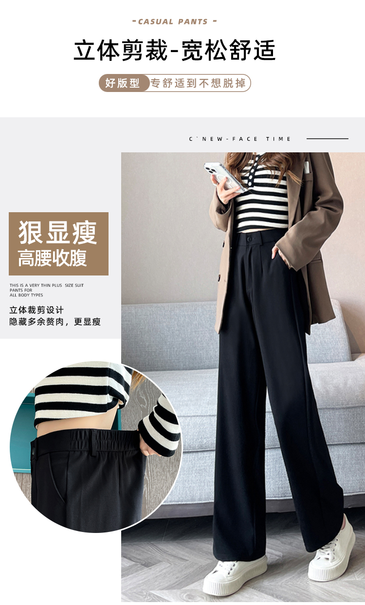 Plus Size Women's Suit Pants for Chubby Women 100kg Elastic Slimming Narrow Version Extra Large Spring and Autumn High-Waisted Straight Casual Pants