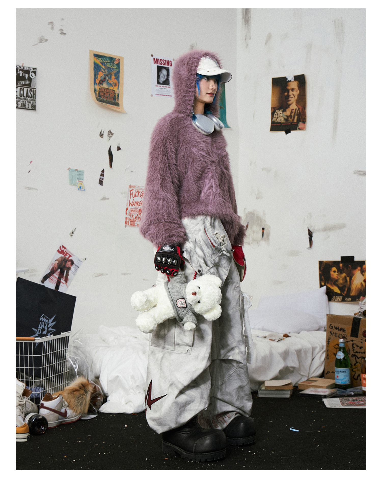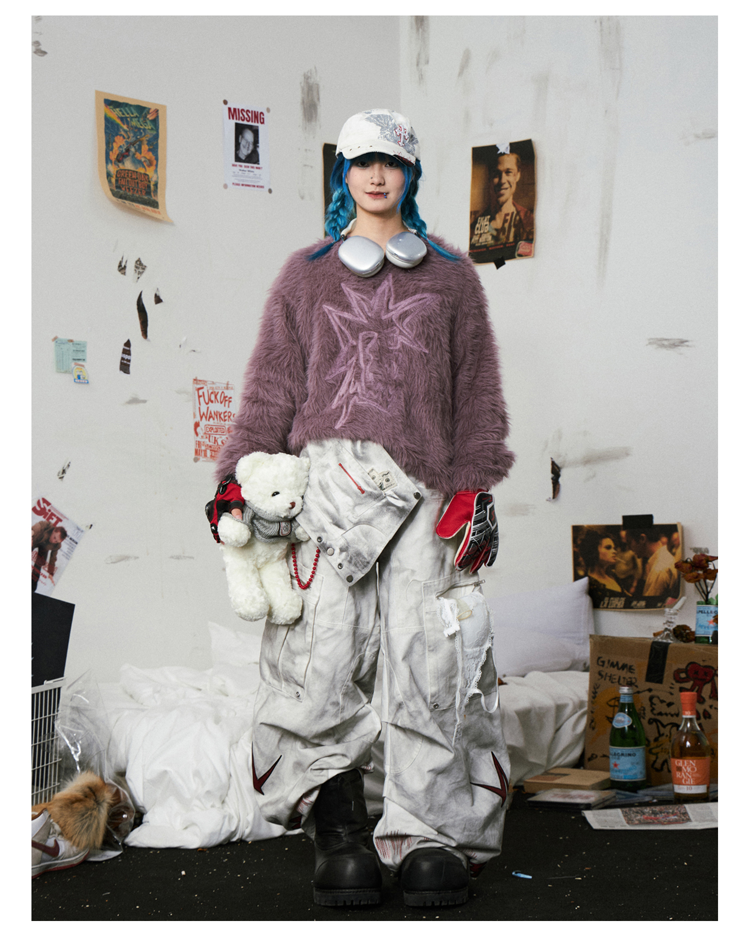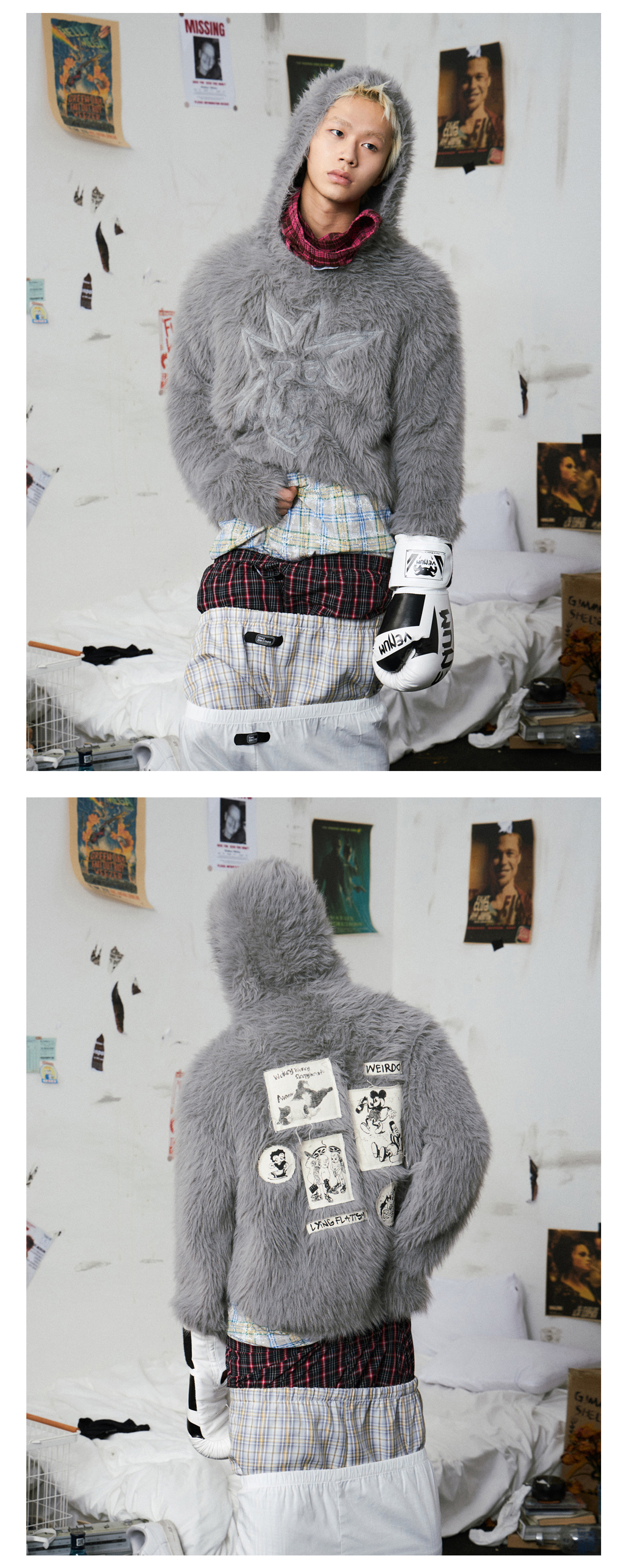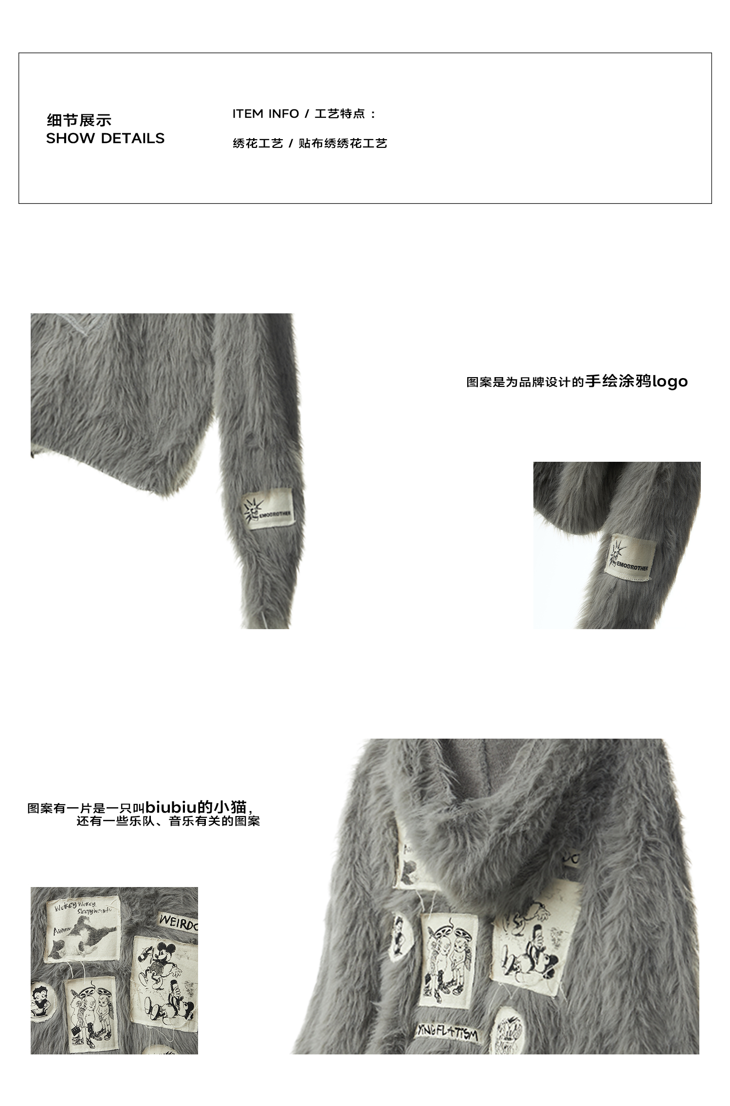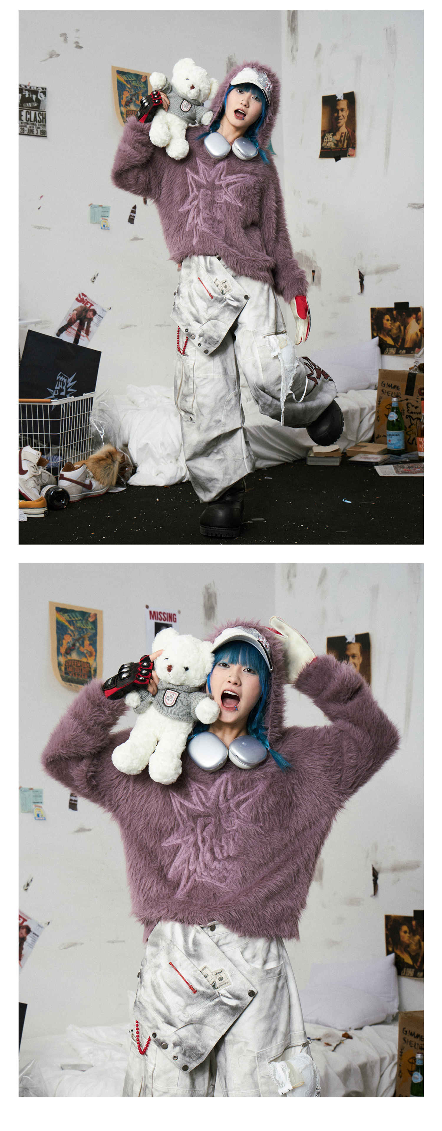 Emobrother* Logo Embroidered Hooded Faux Mink Knit Sweater with Band Patch, Soft and Warm Top
