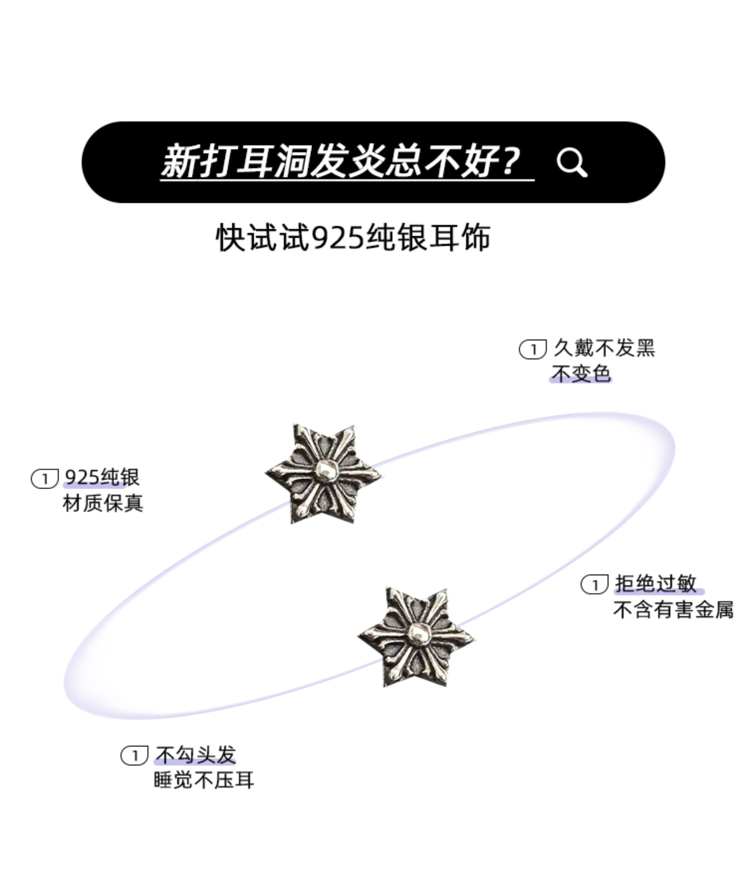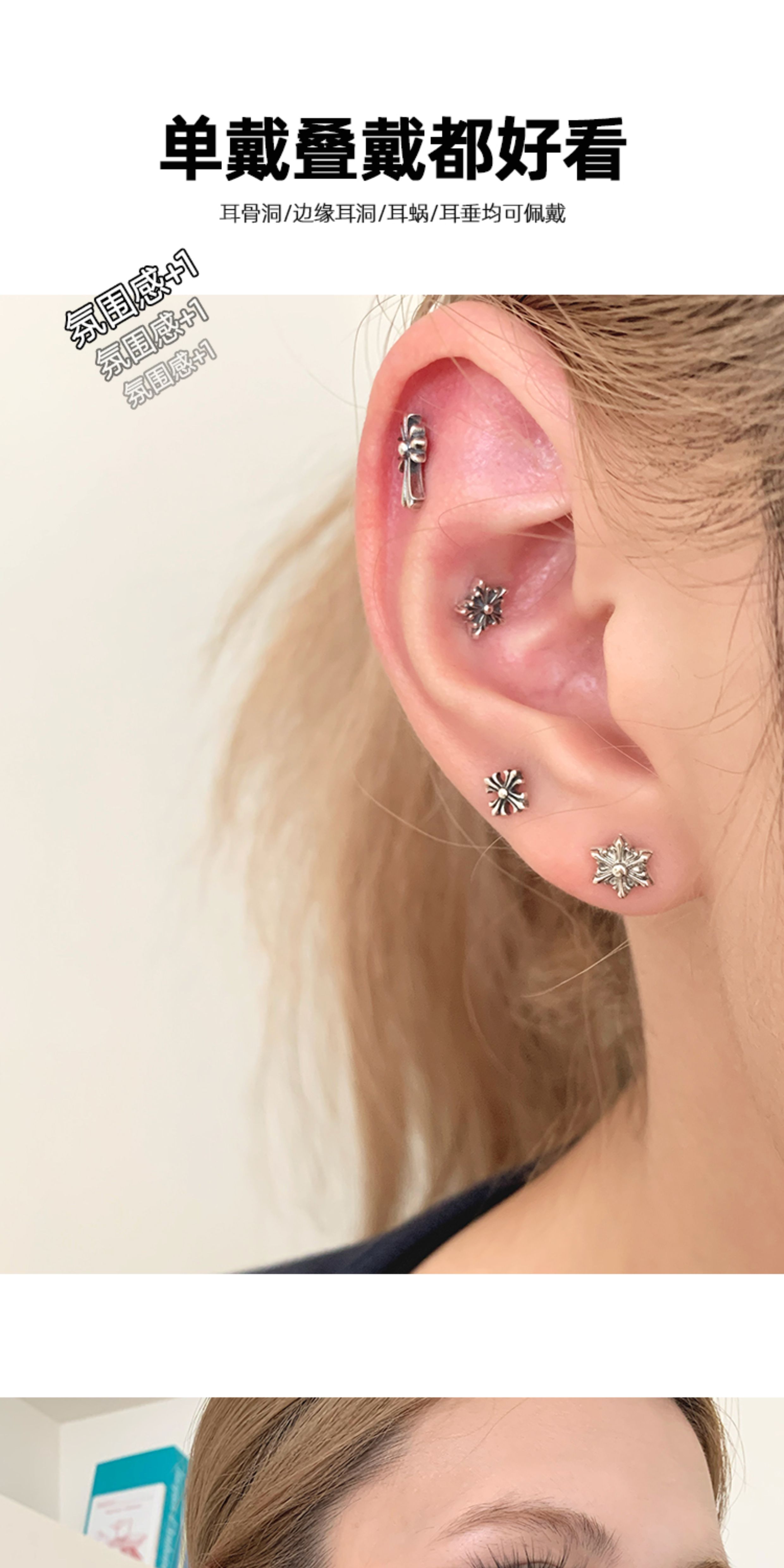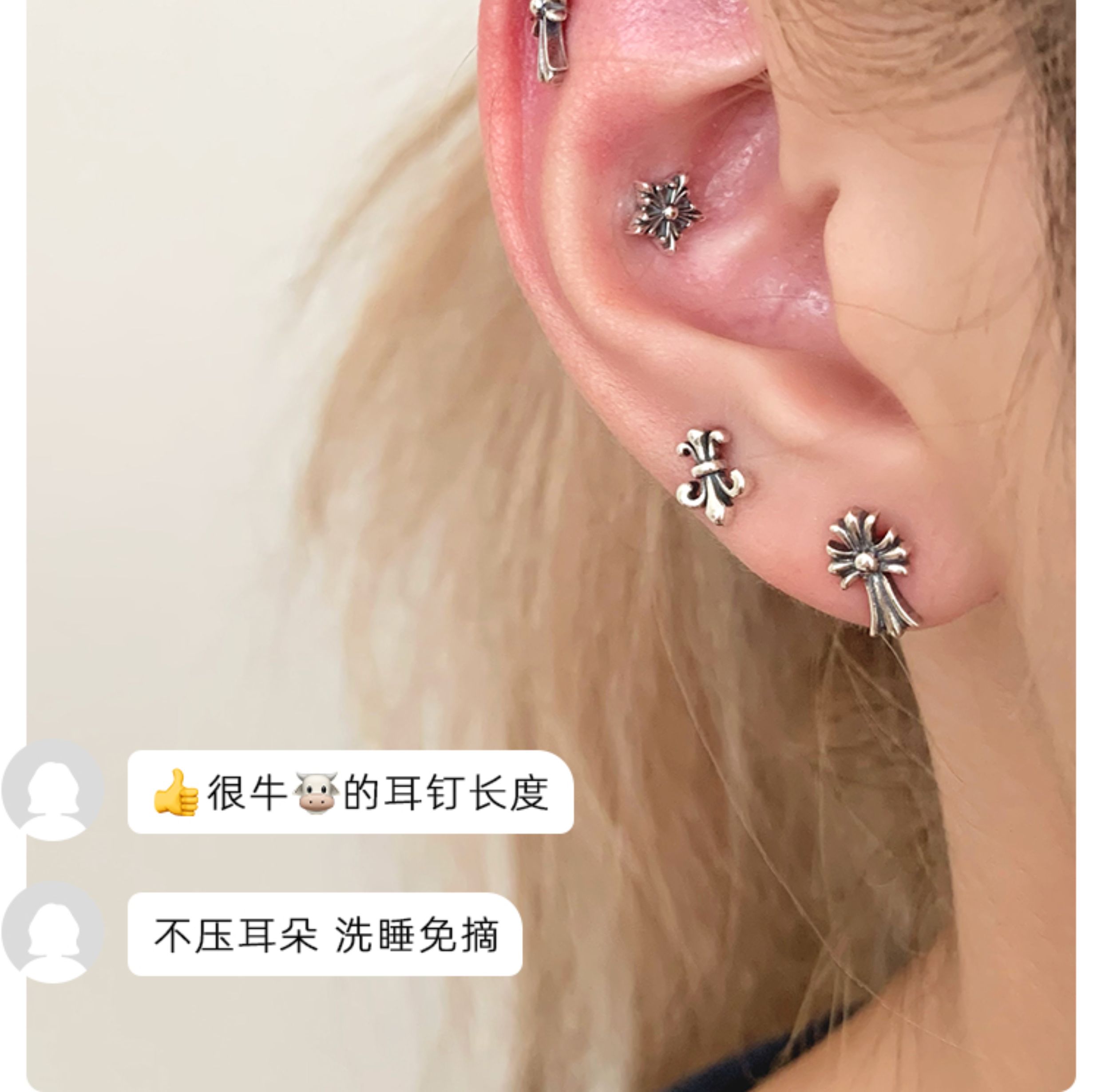 Ringring Store 925 Sterling Silver Earrings Cross Ear Bone Nails Ear Piercing Cochlear Nail Earrings Earrings for Men and Women
