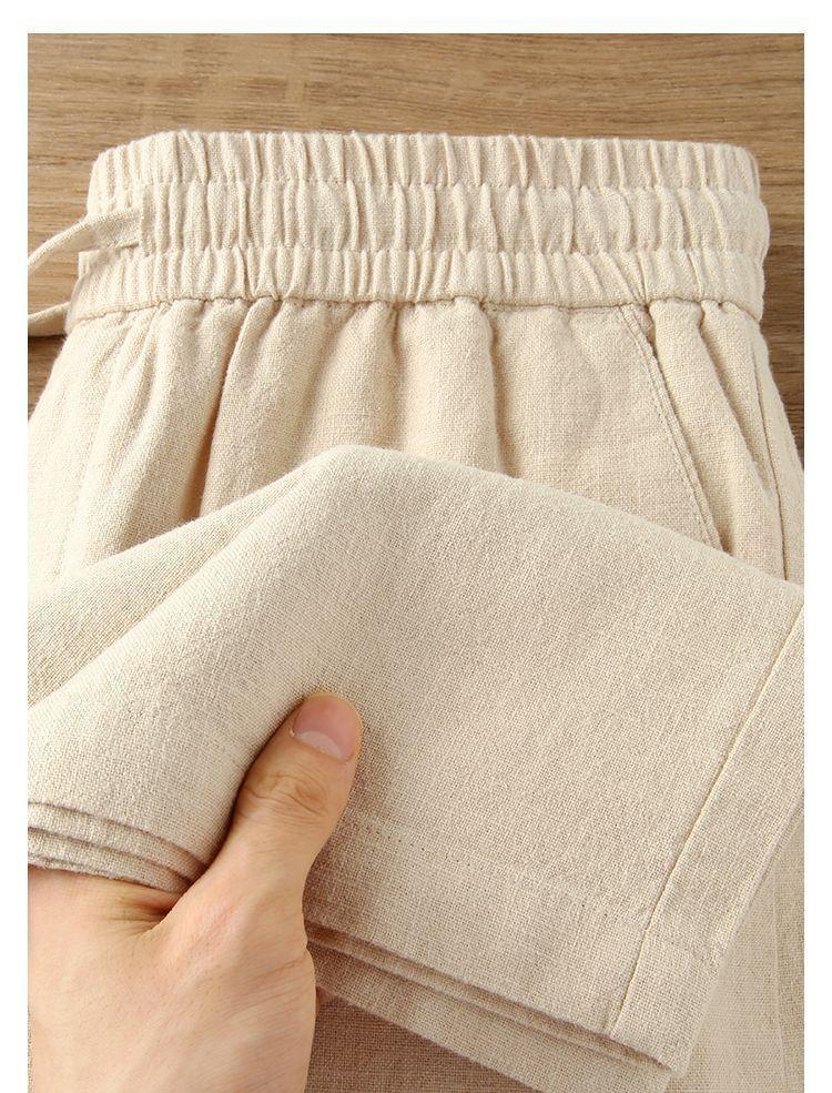 Natural Linen! Commuting Cotton-Linen Straight-Leg Casual Pants, Breathable Ramie Elastic Pocket Style, Relaxed Pants