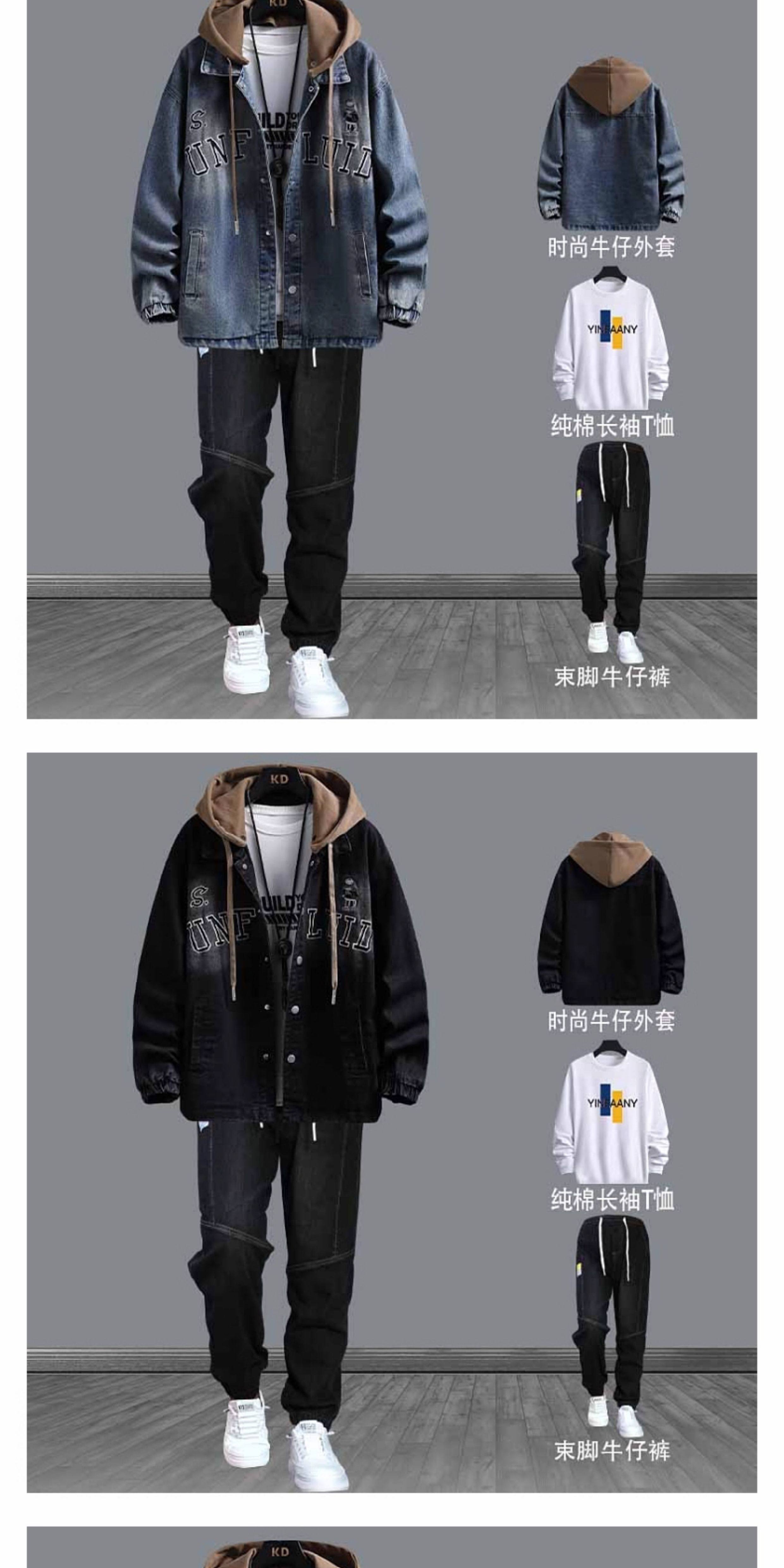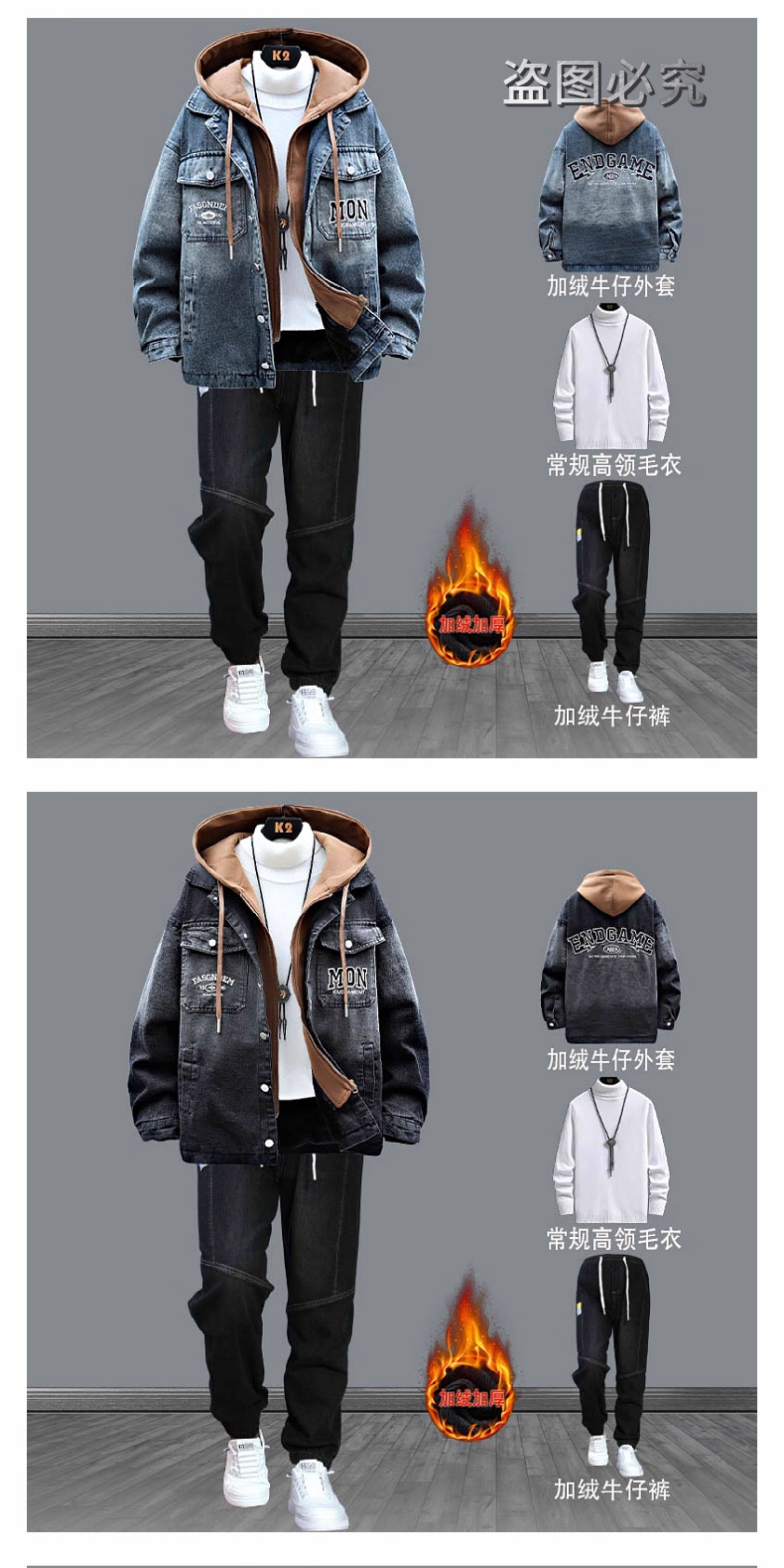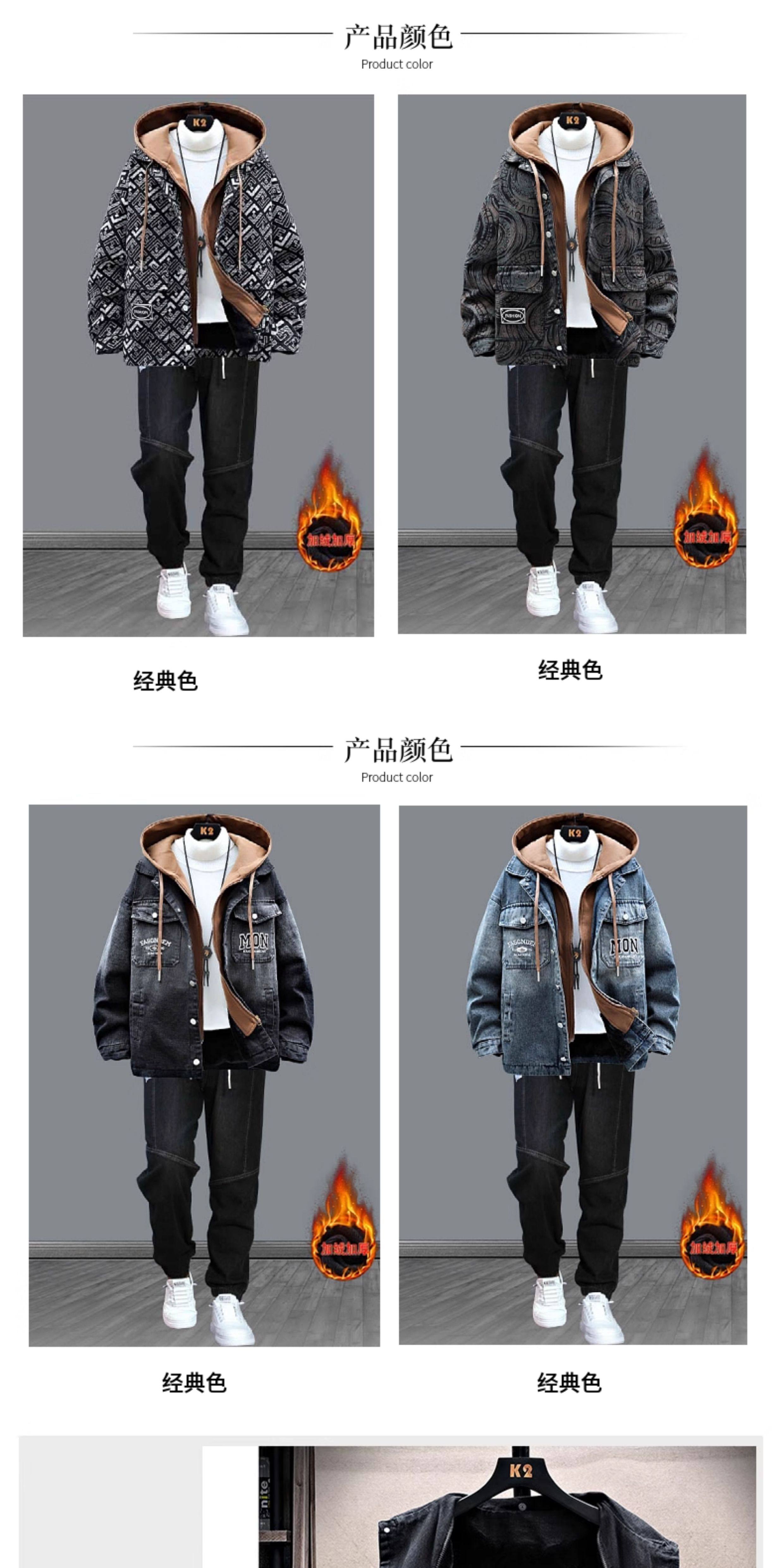 Teenage Denim Suit for Men, New Spring, Autumn and Winter Jacket, Trendy and Stylish for High School and Middle School Students, Fleece-Lined and Thickened