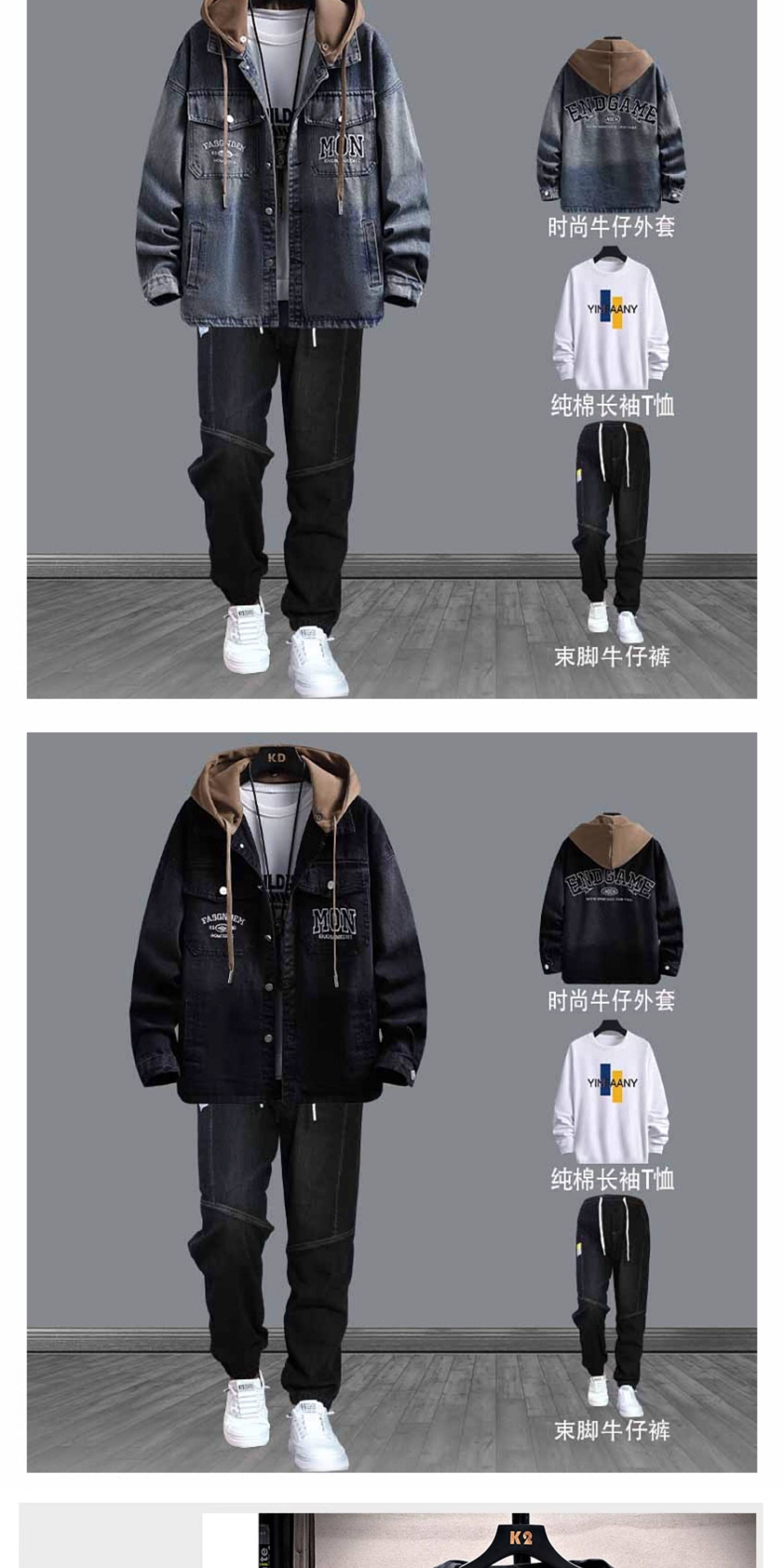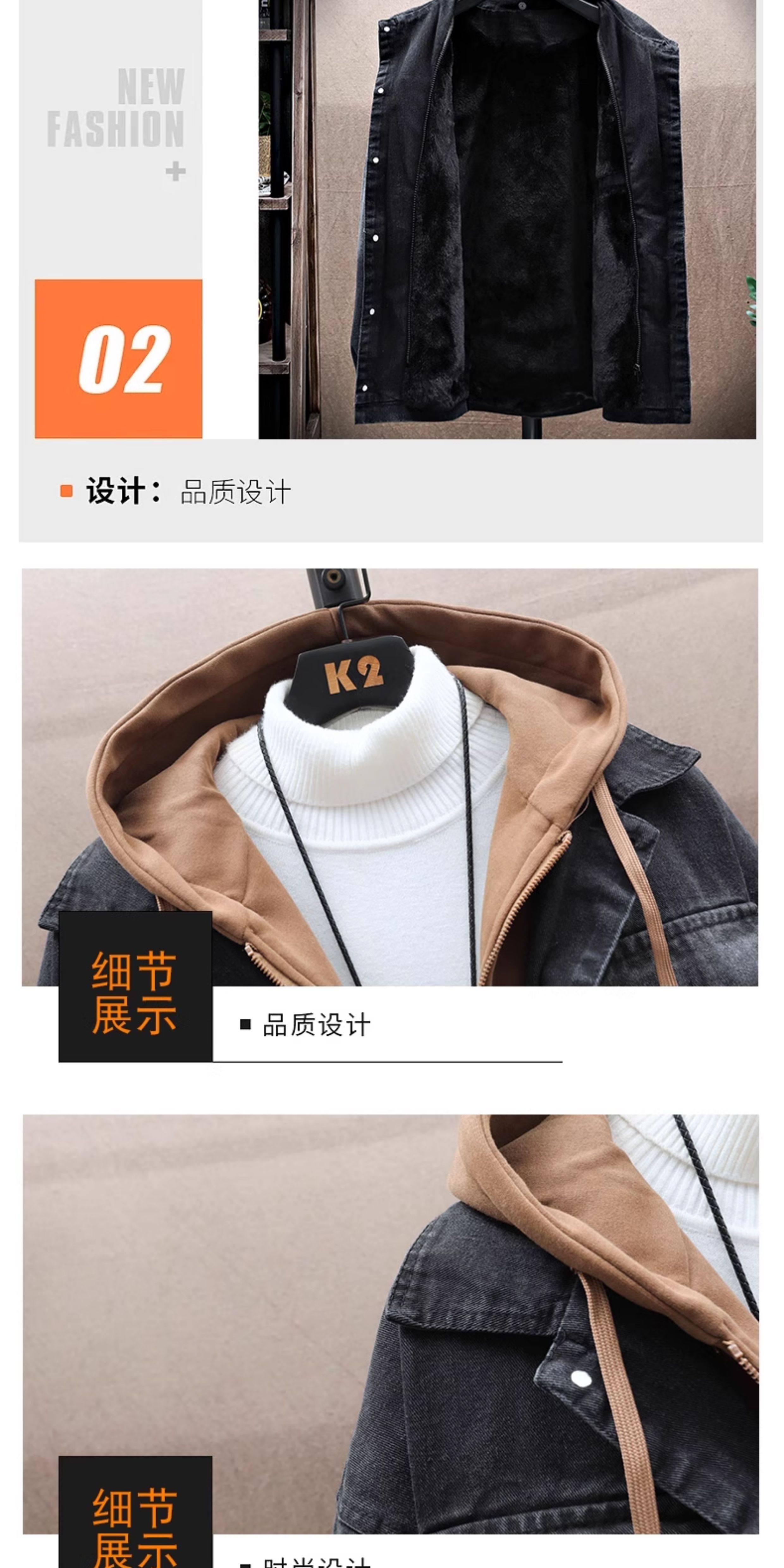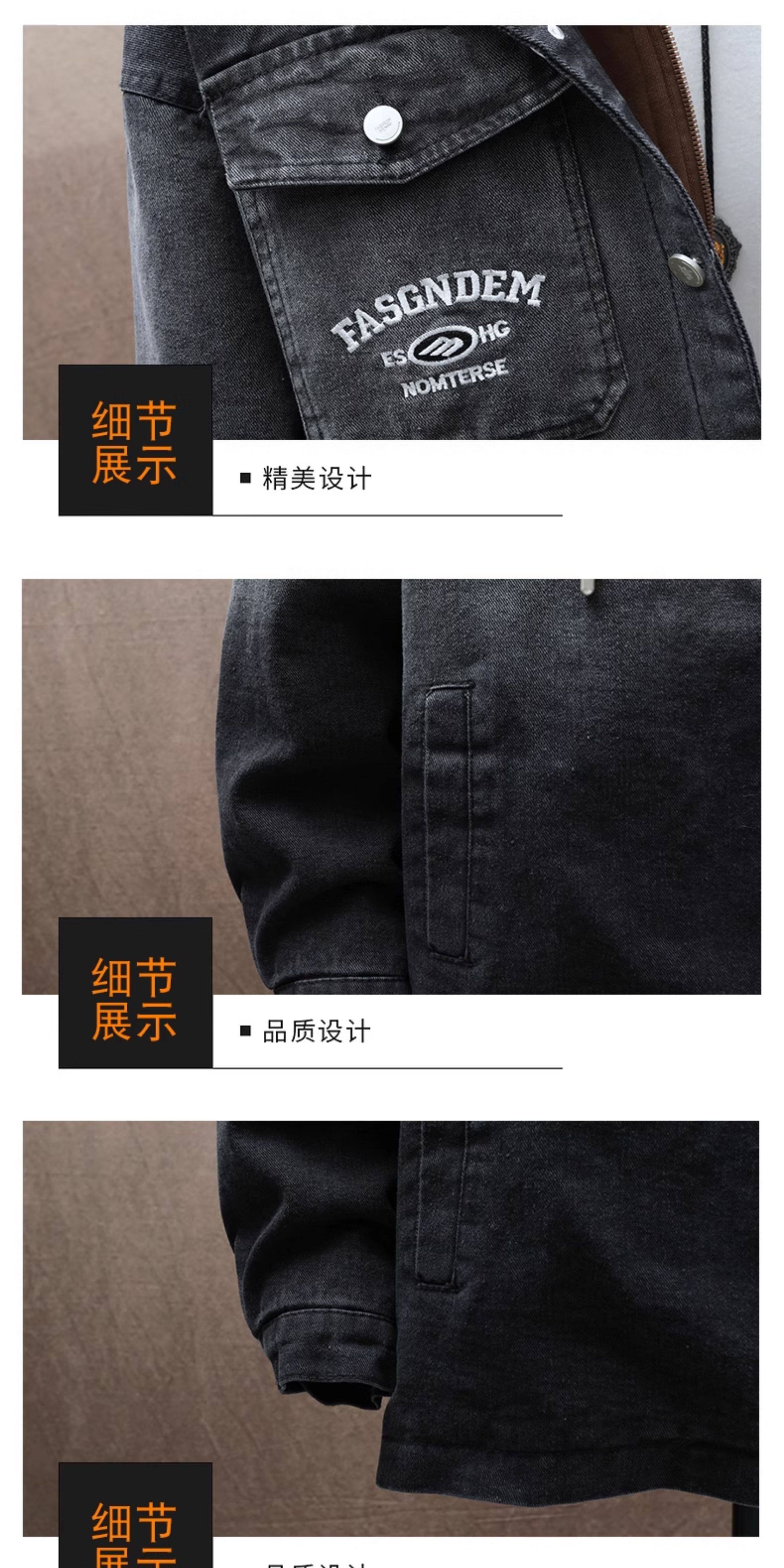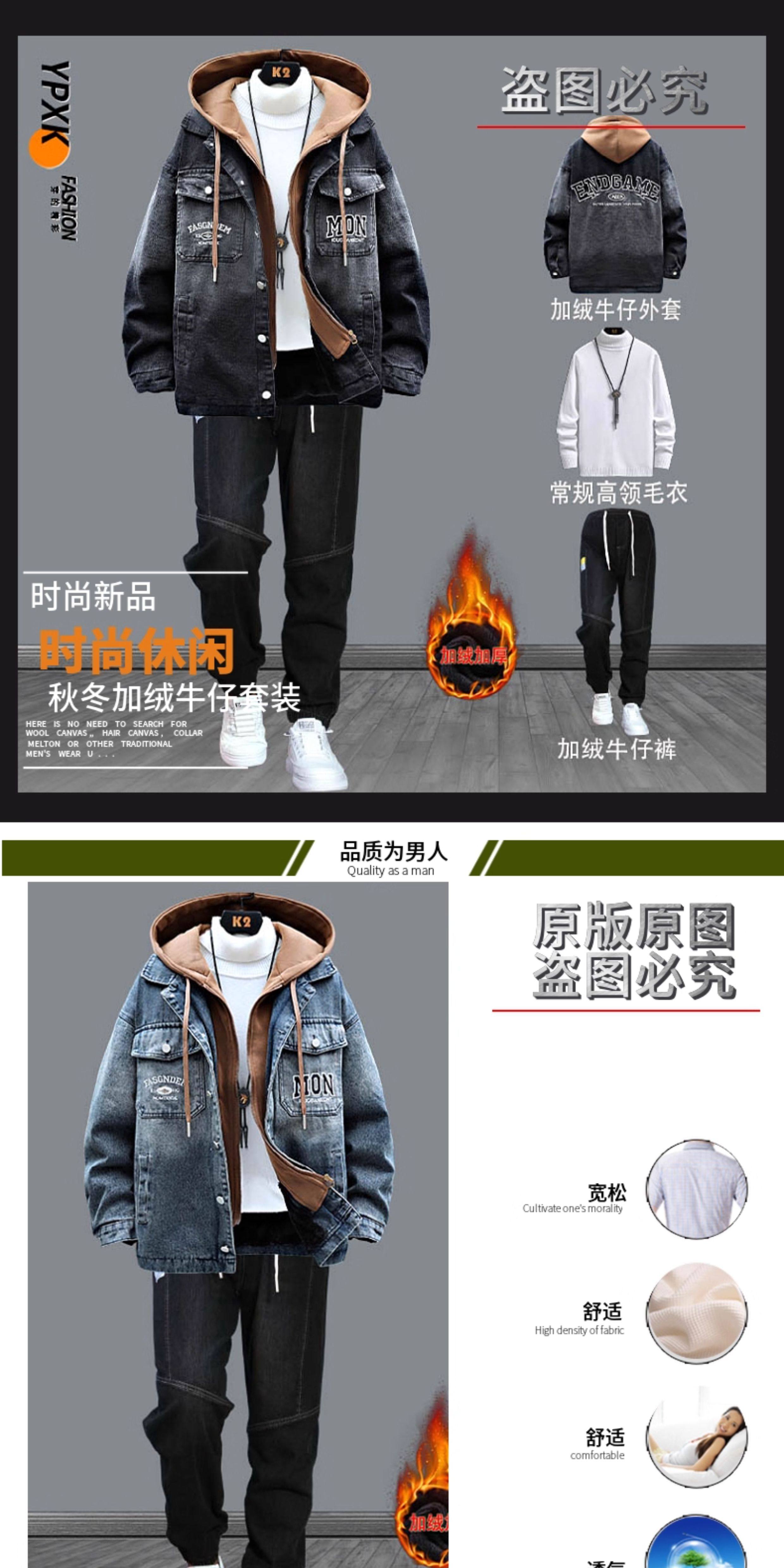 Teenage Denim Suit for Men, New Spring, Autumn and Winter Jacket, Trendy and Stylish for High School and Middle School Students, Fleece-Lined and Thickened