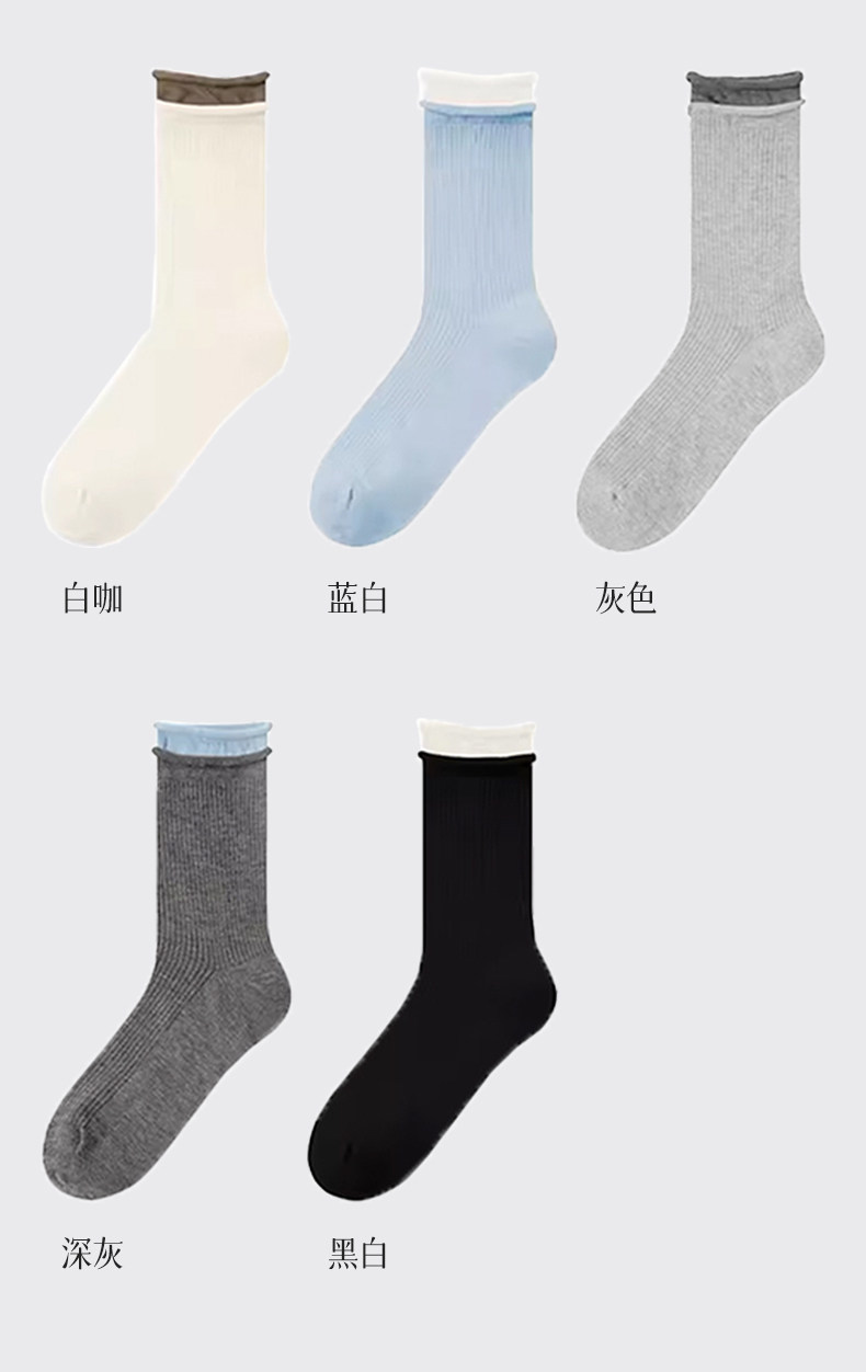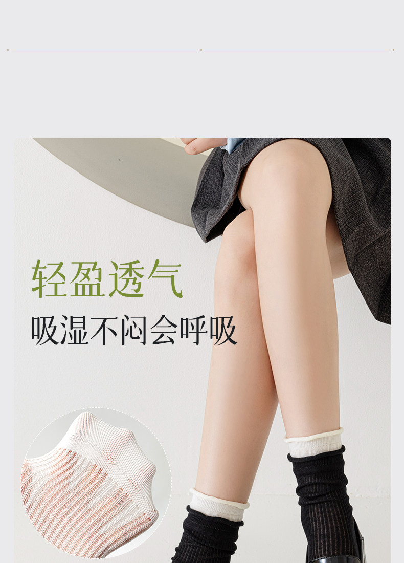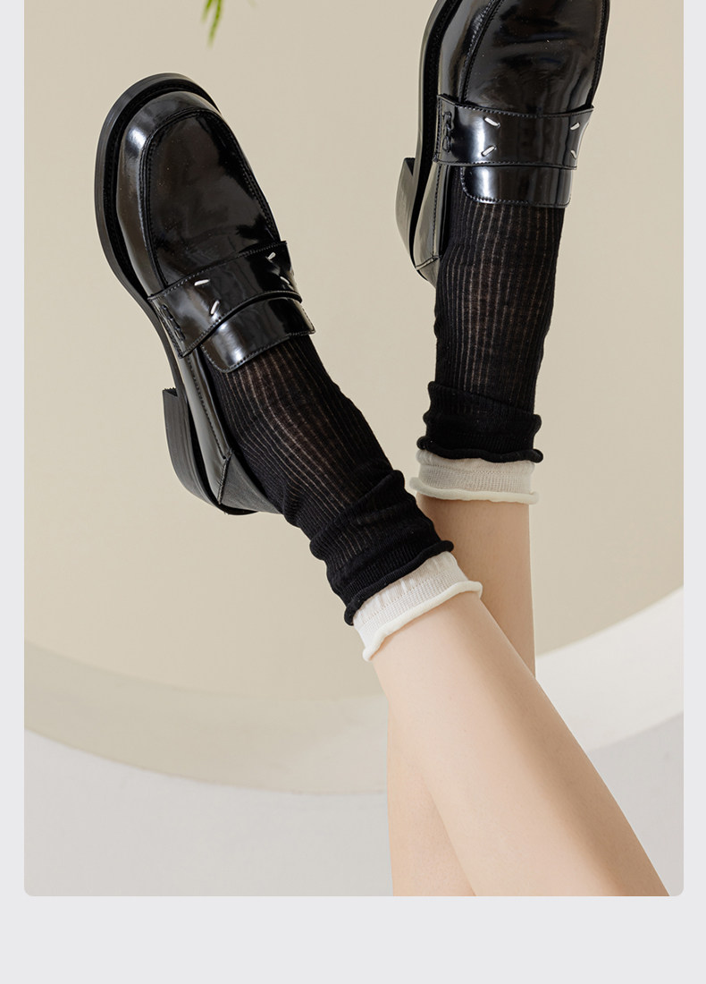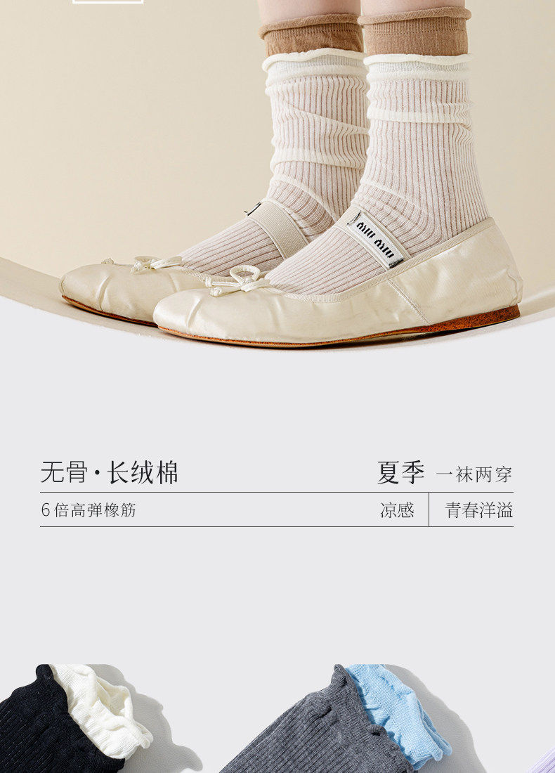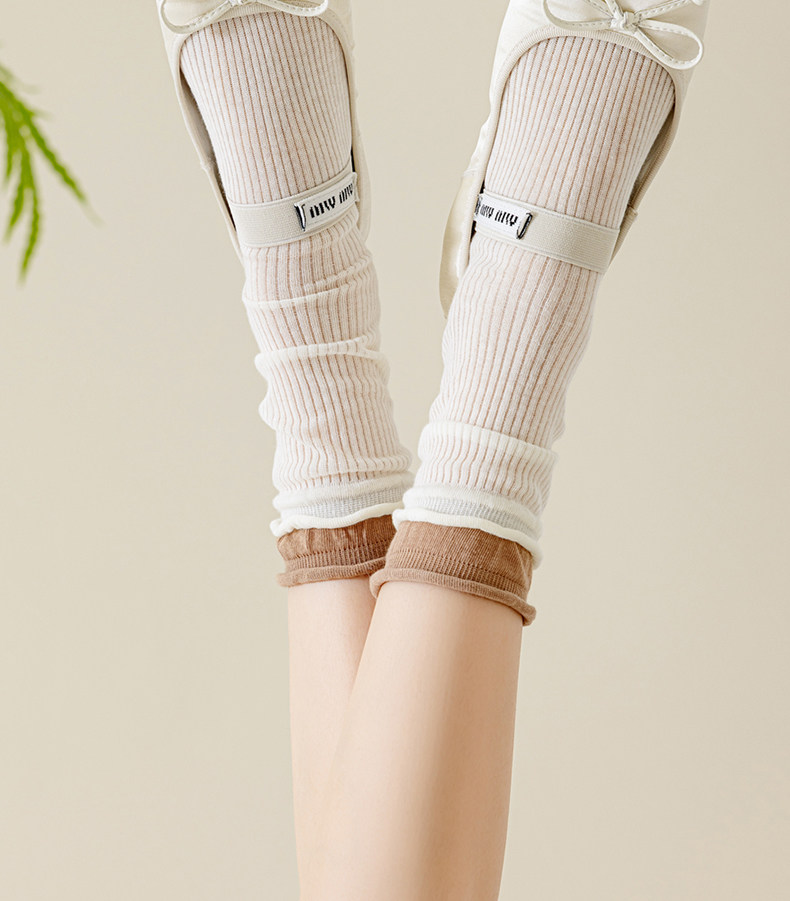 Women's Mid-Calf Socks, Summer Thin Style, Miu Ballet Style, Jk Slouch Socks, Double Ribbed, Seamless, Breathable Cotton Socks