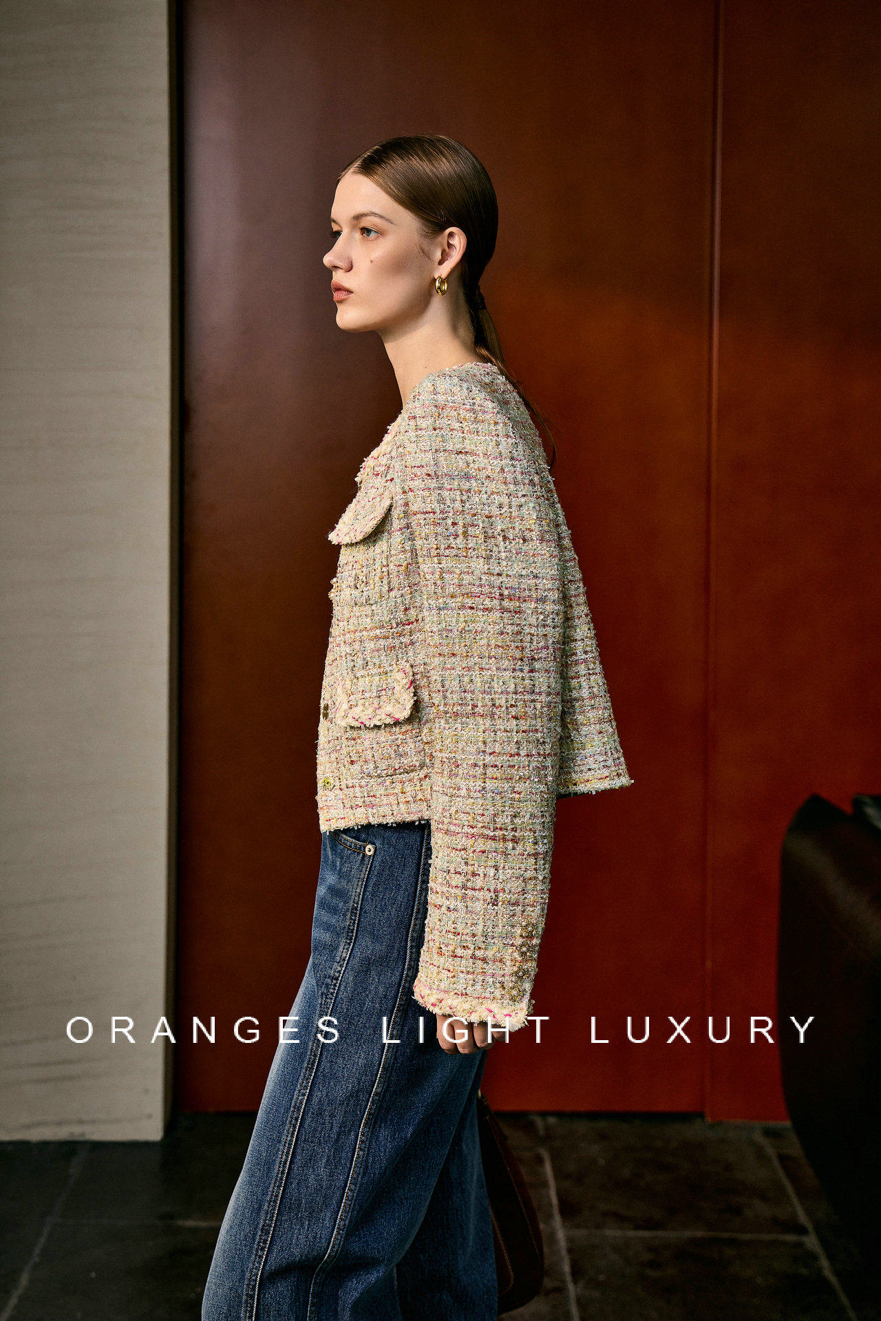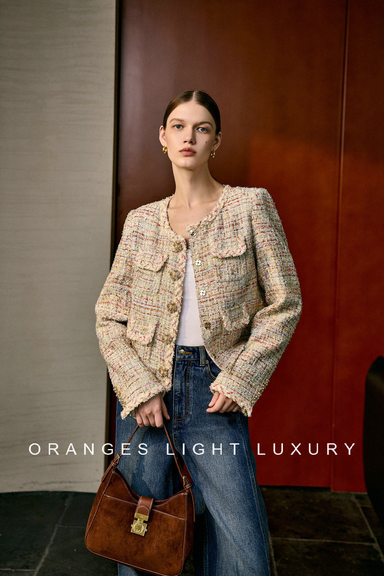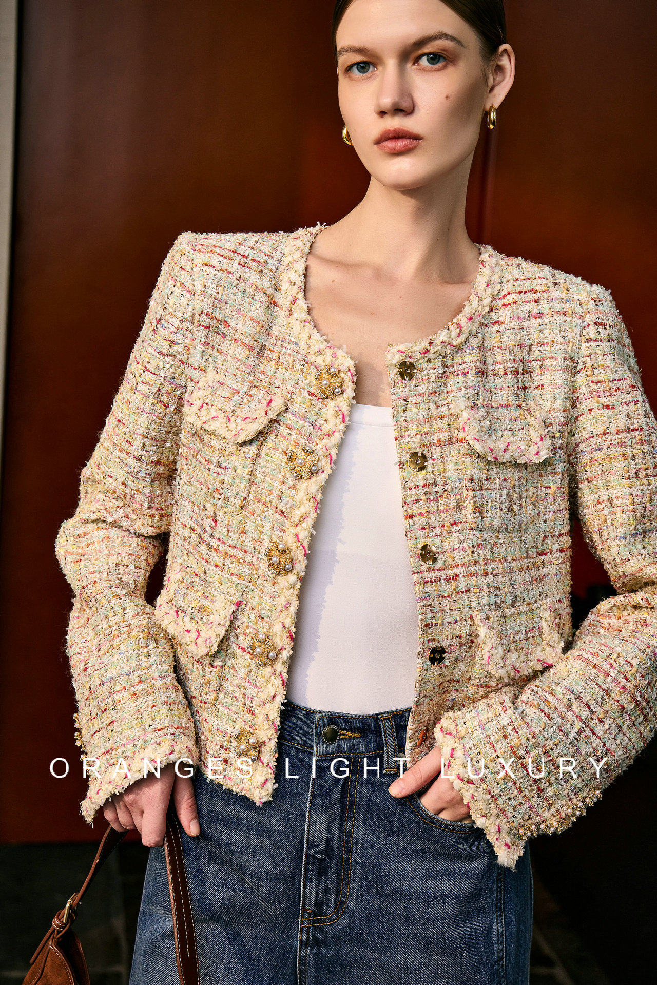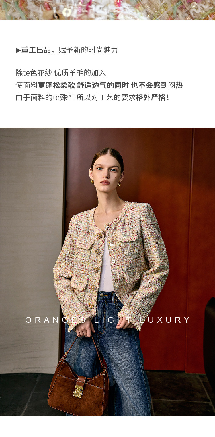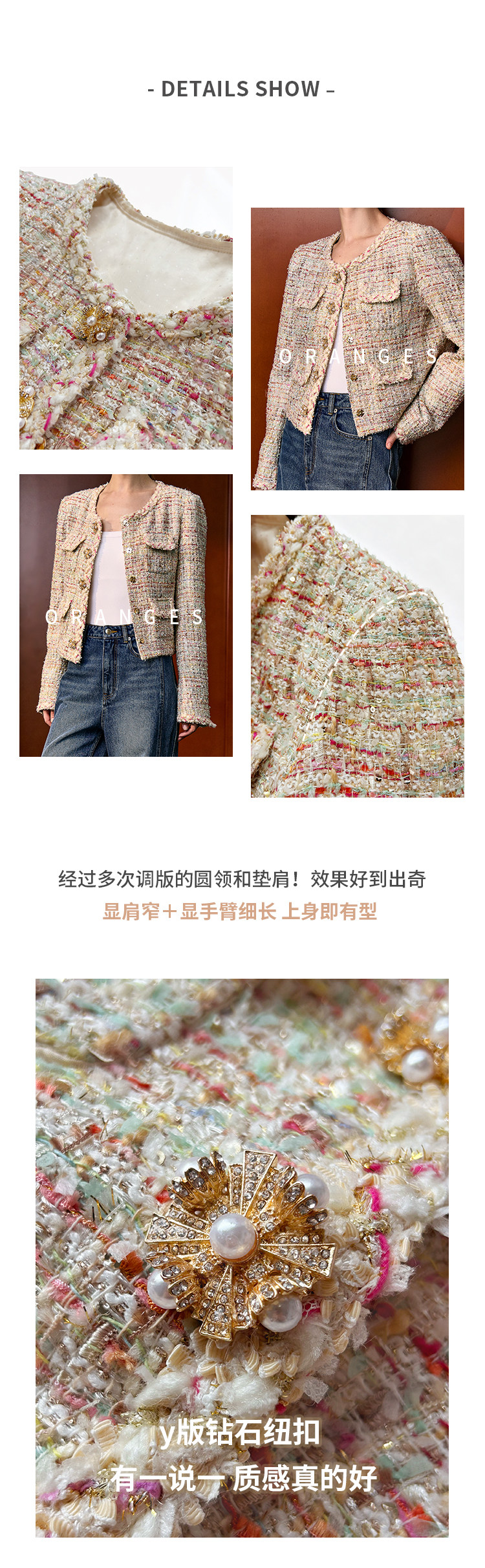 Org Japanese Colorful Floral Yarn Early Spring Loose and Stylish Elegant Exquisite Chanel-Style Coarse Knit Jacket Top