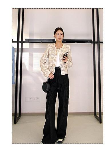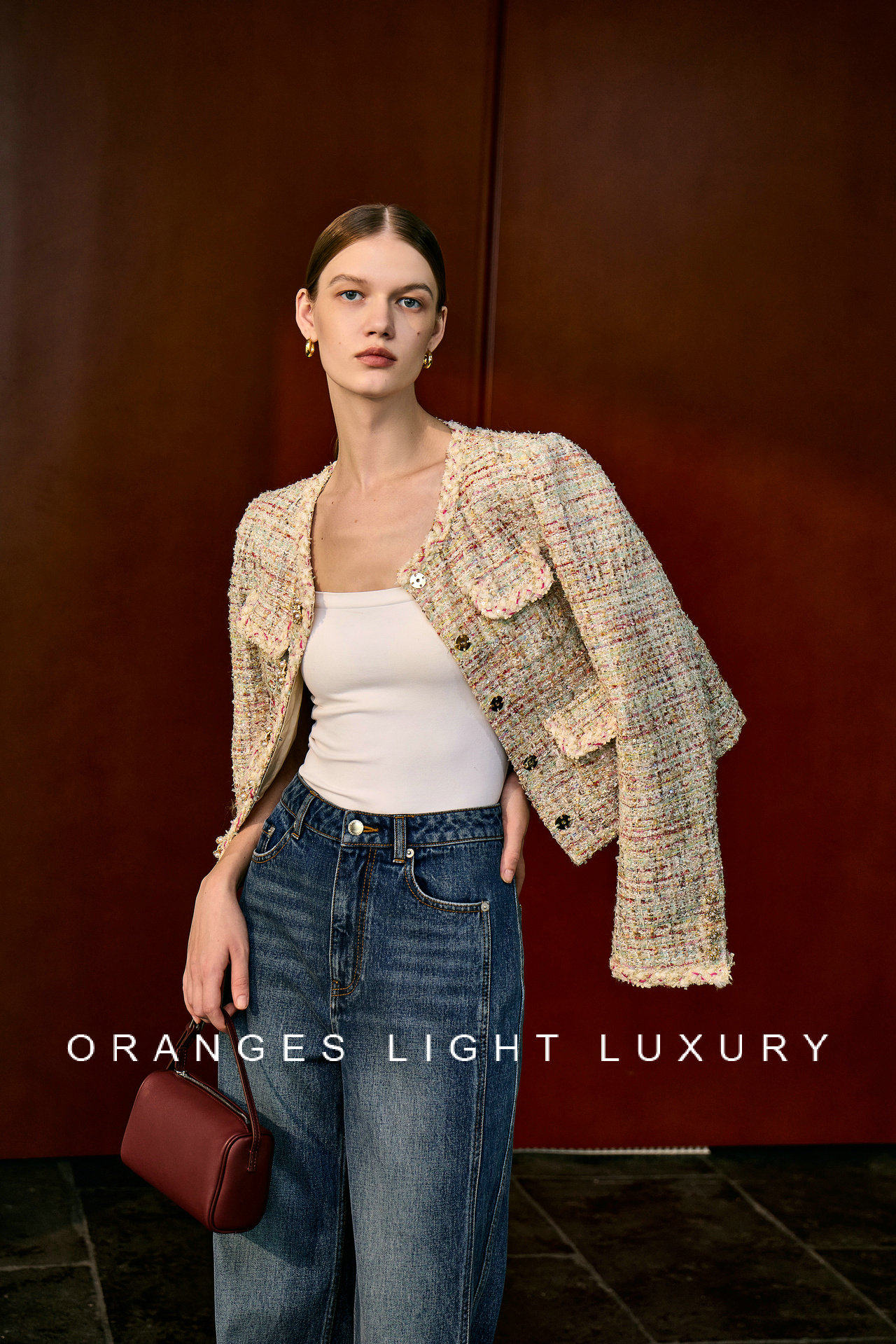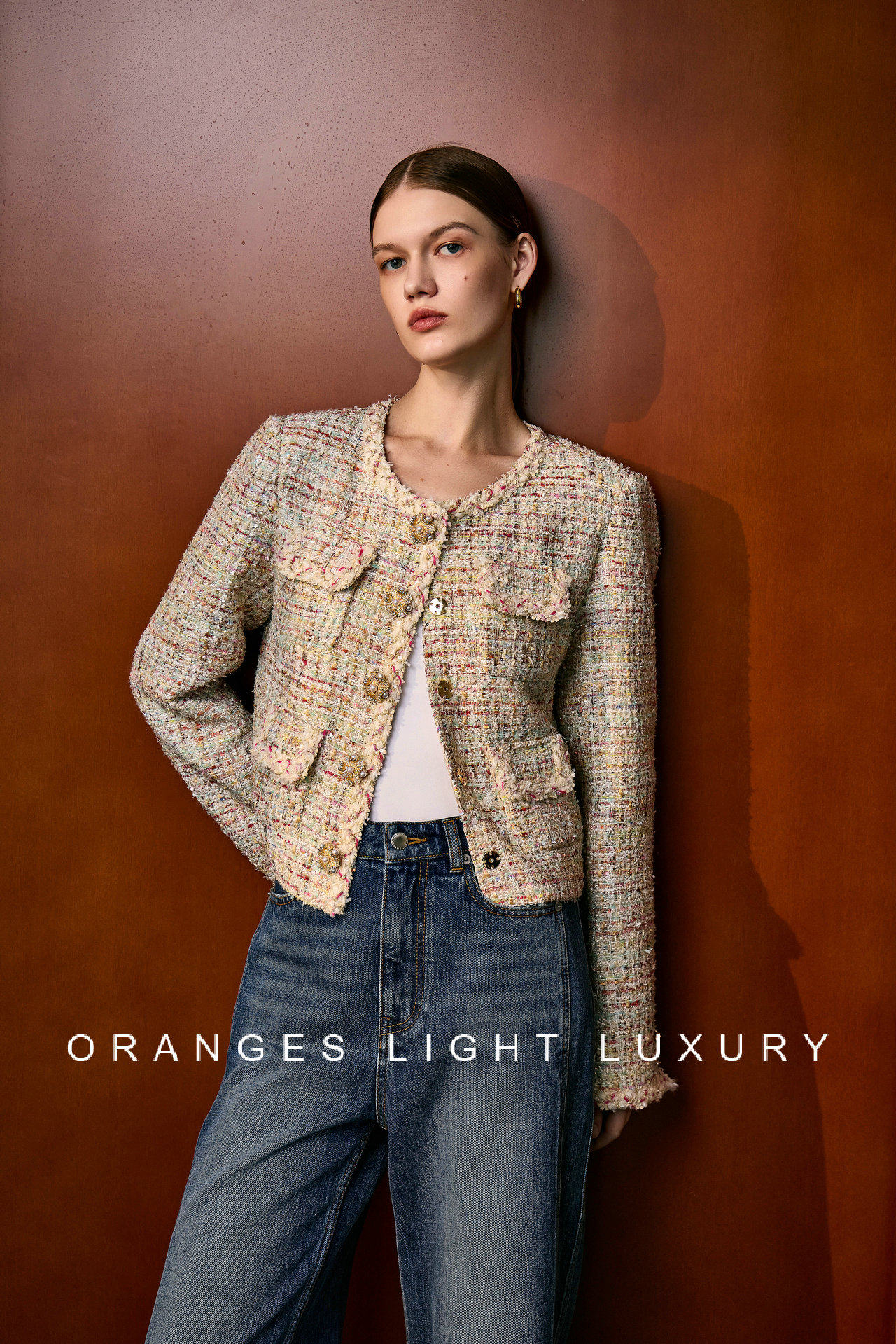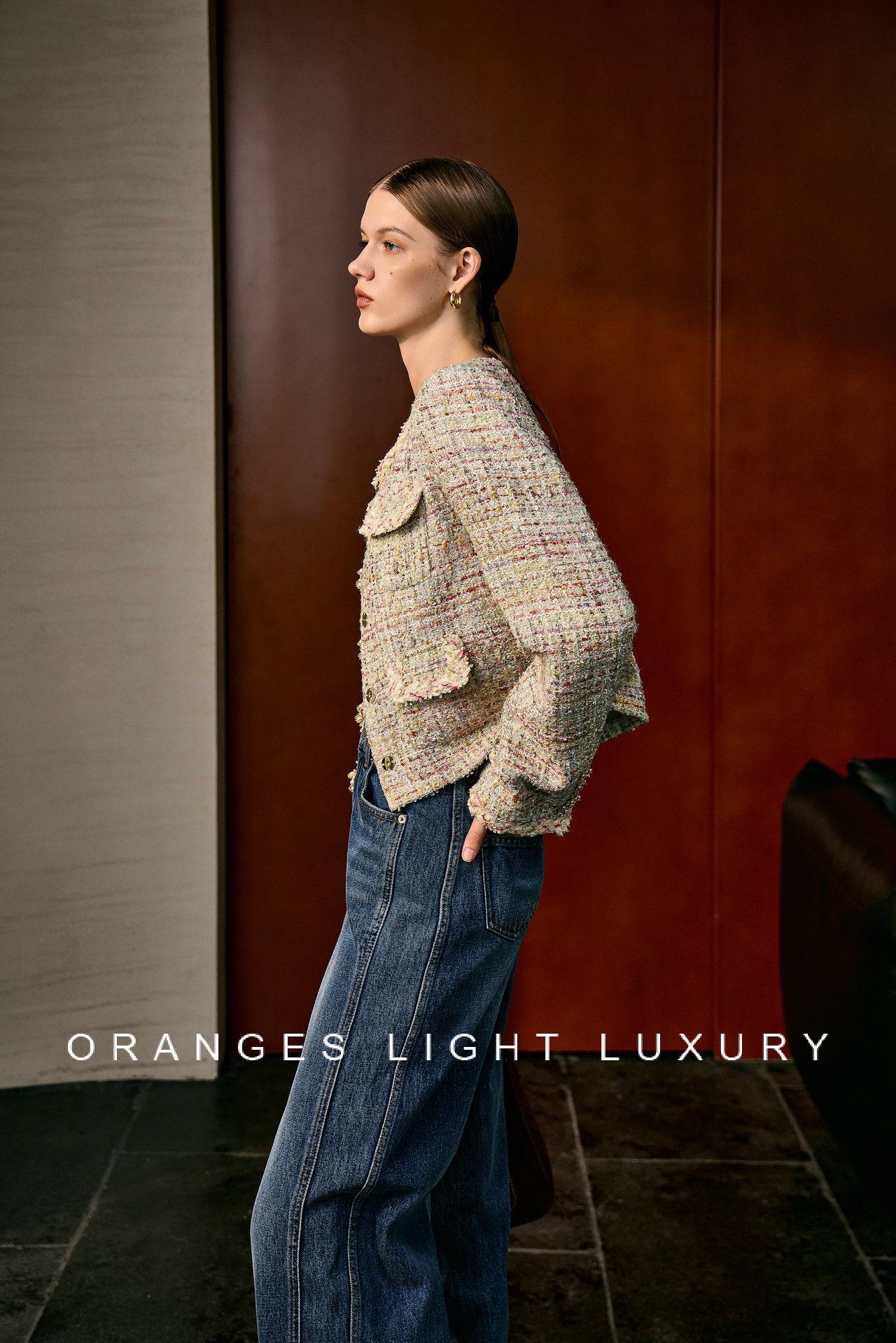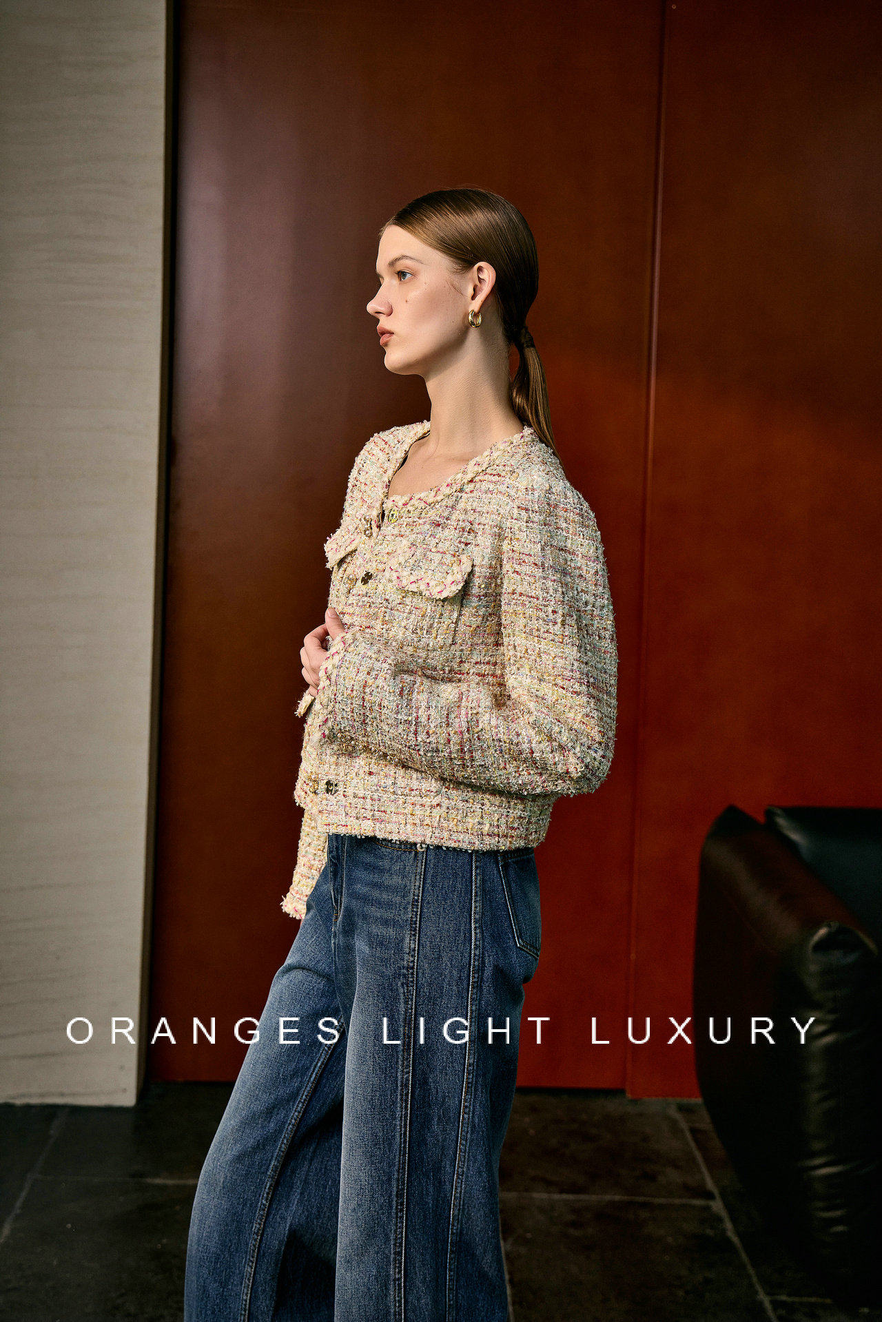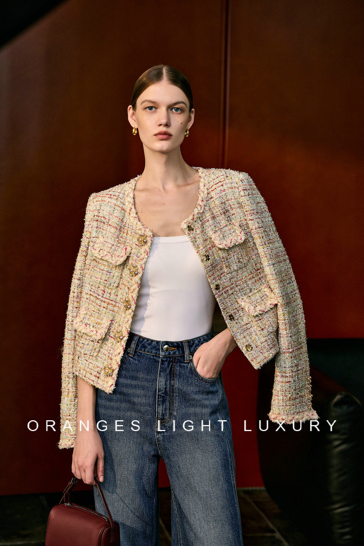 Org Japanese Colorful Floral Yarn Early Spring Loose and Stylish Elegant Exquisite Chanel-Style Coarse Knit Jacket Top