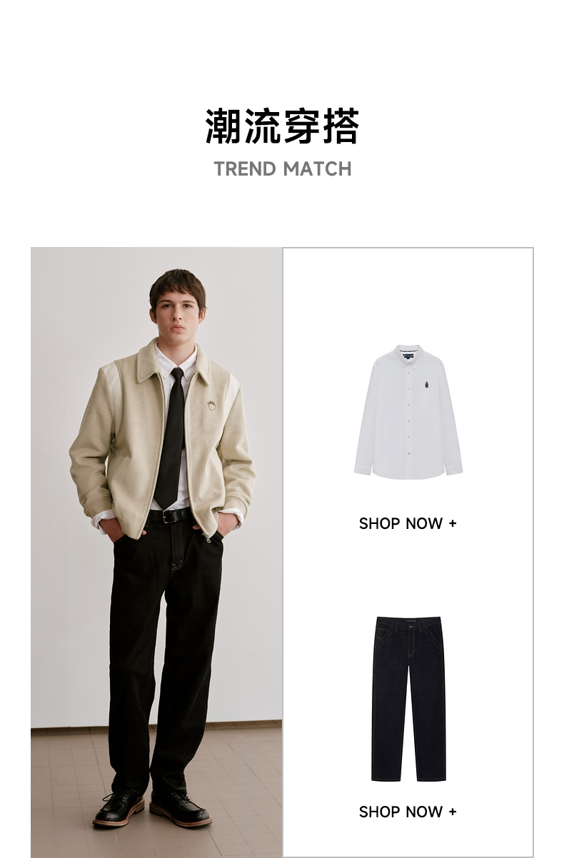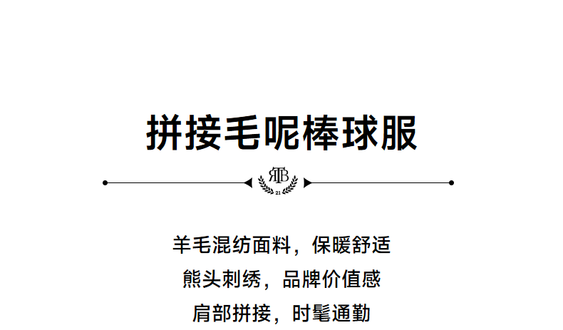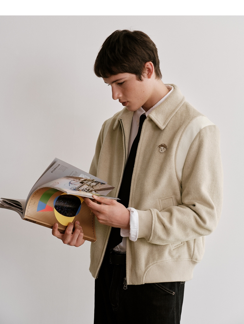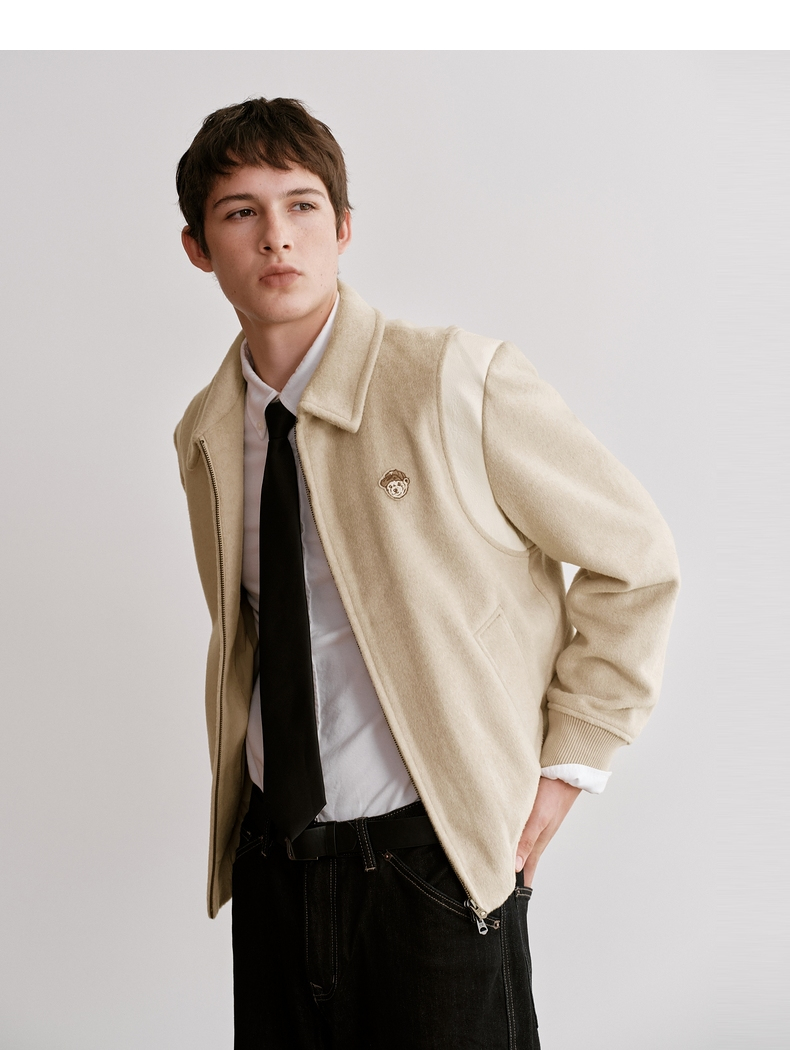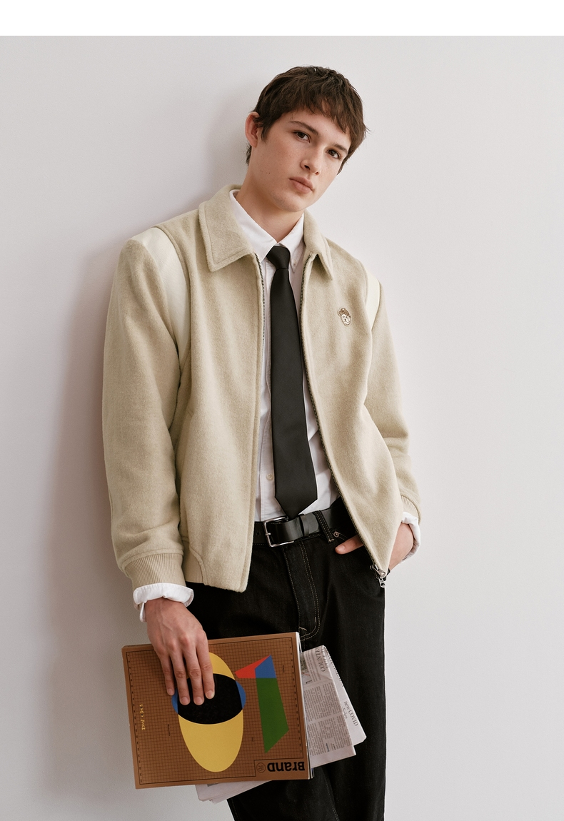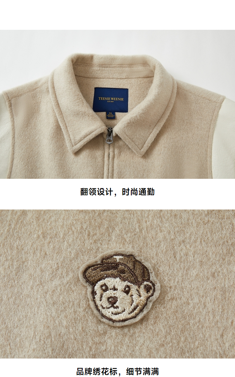 Teenieweenie Bear Men's Clothing Simple and Stylish Woolen Jacket Winter Baseball Uniform American Style Sheep Wool Coat