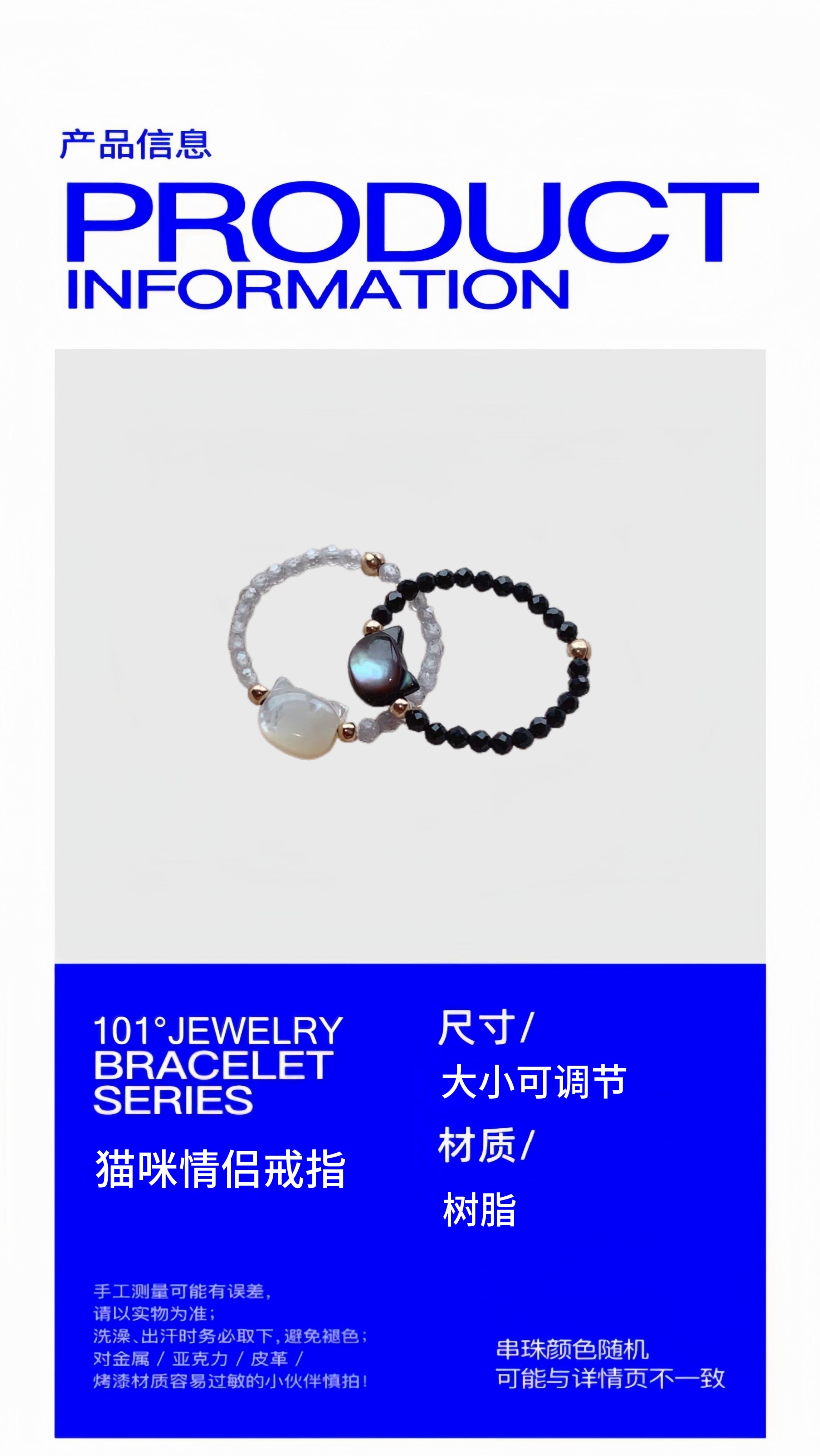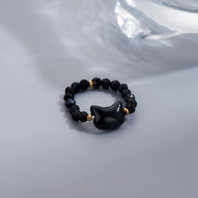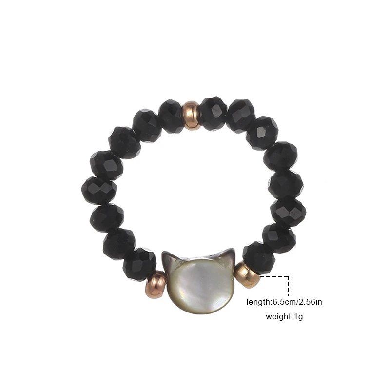 Black and White Cat Cute Ring Crystal Shell Couple Niche Design Popular Gift for Men and Women Students to Give to Best Friends