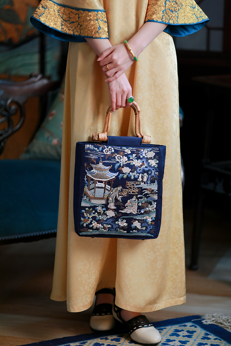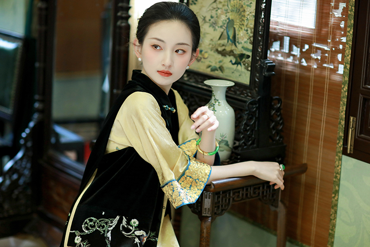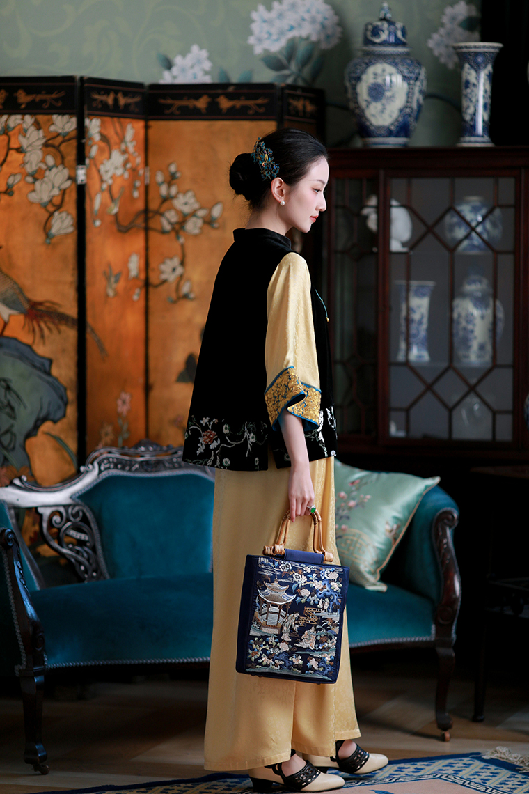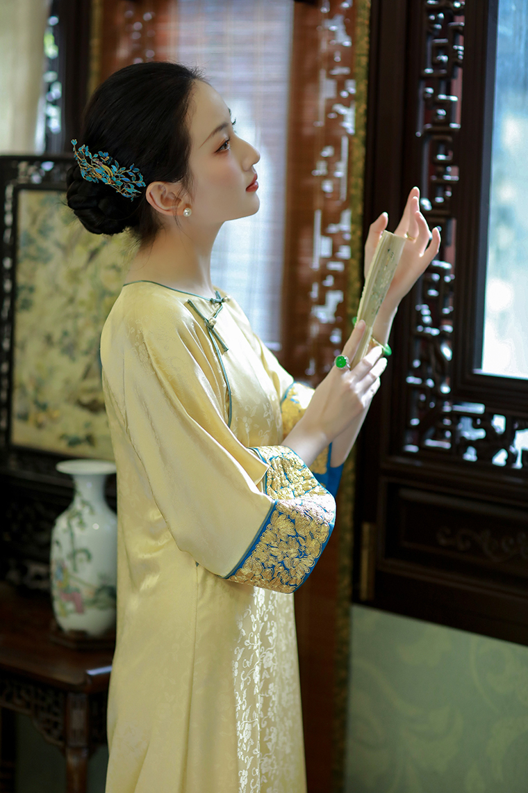 Golden Embroidery on a Silk Jacquard Satin | Spring/Summer Chinese Style Wide Sleeveless Collarless Cheongsam