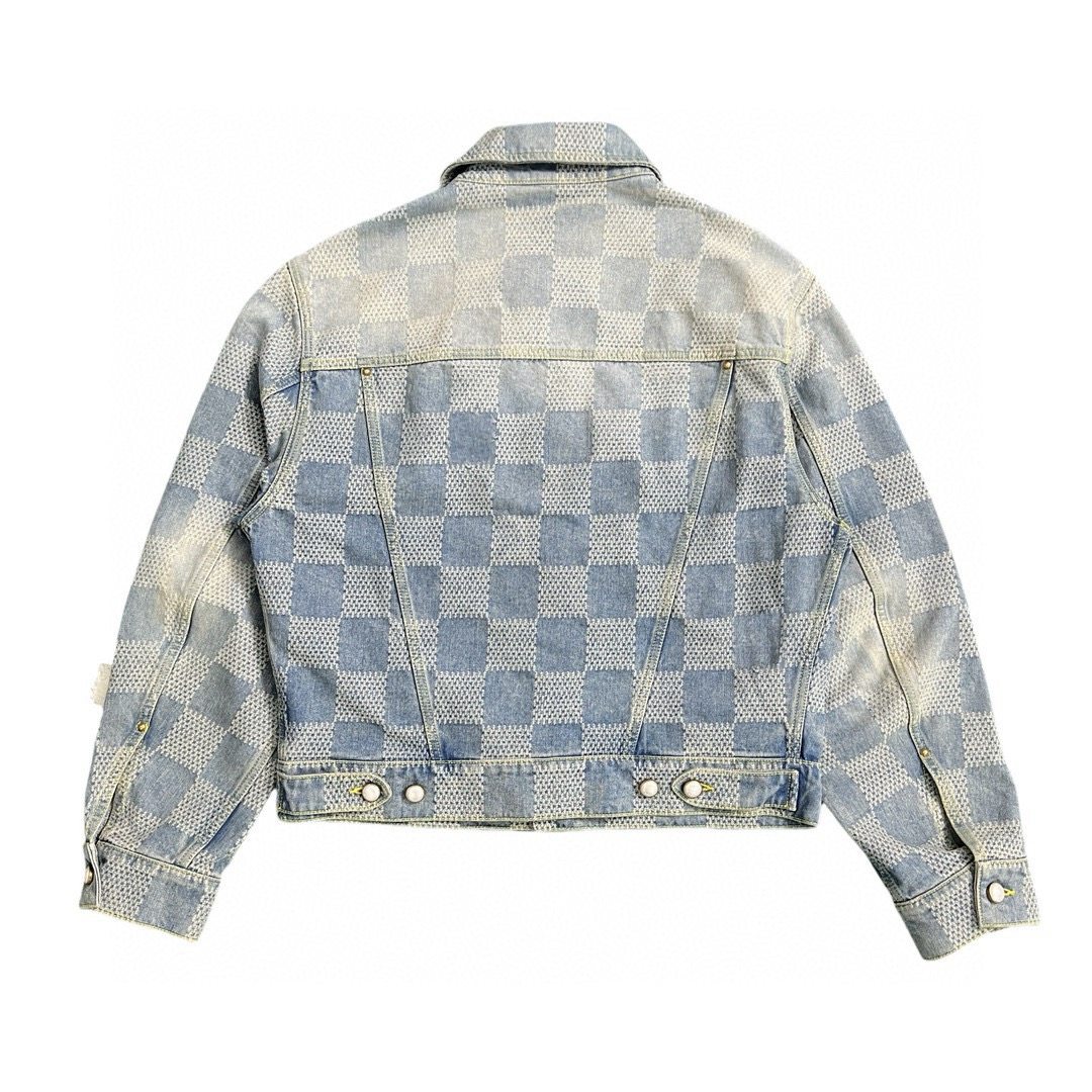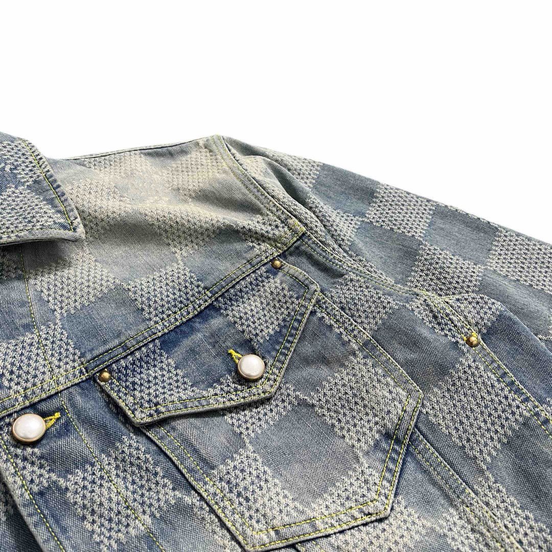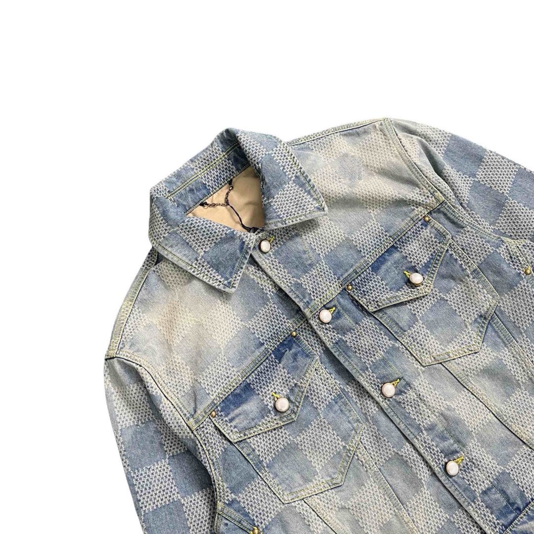 Duttmokn 24Fw Western Denim Autumn/Winter Checkerboard Jacket Denim Blue Short Men's Jacket