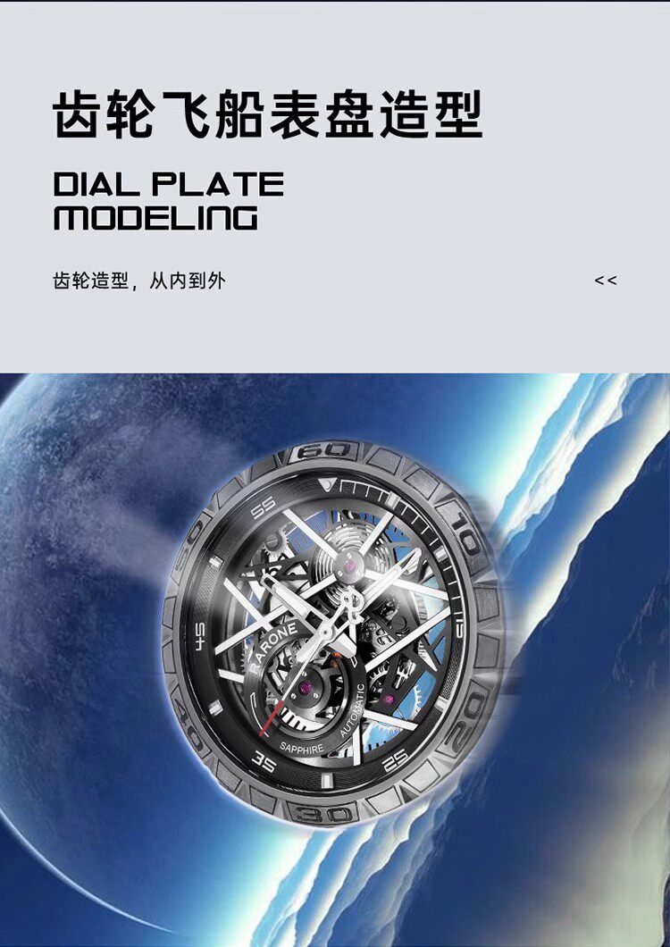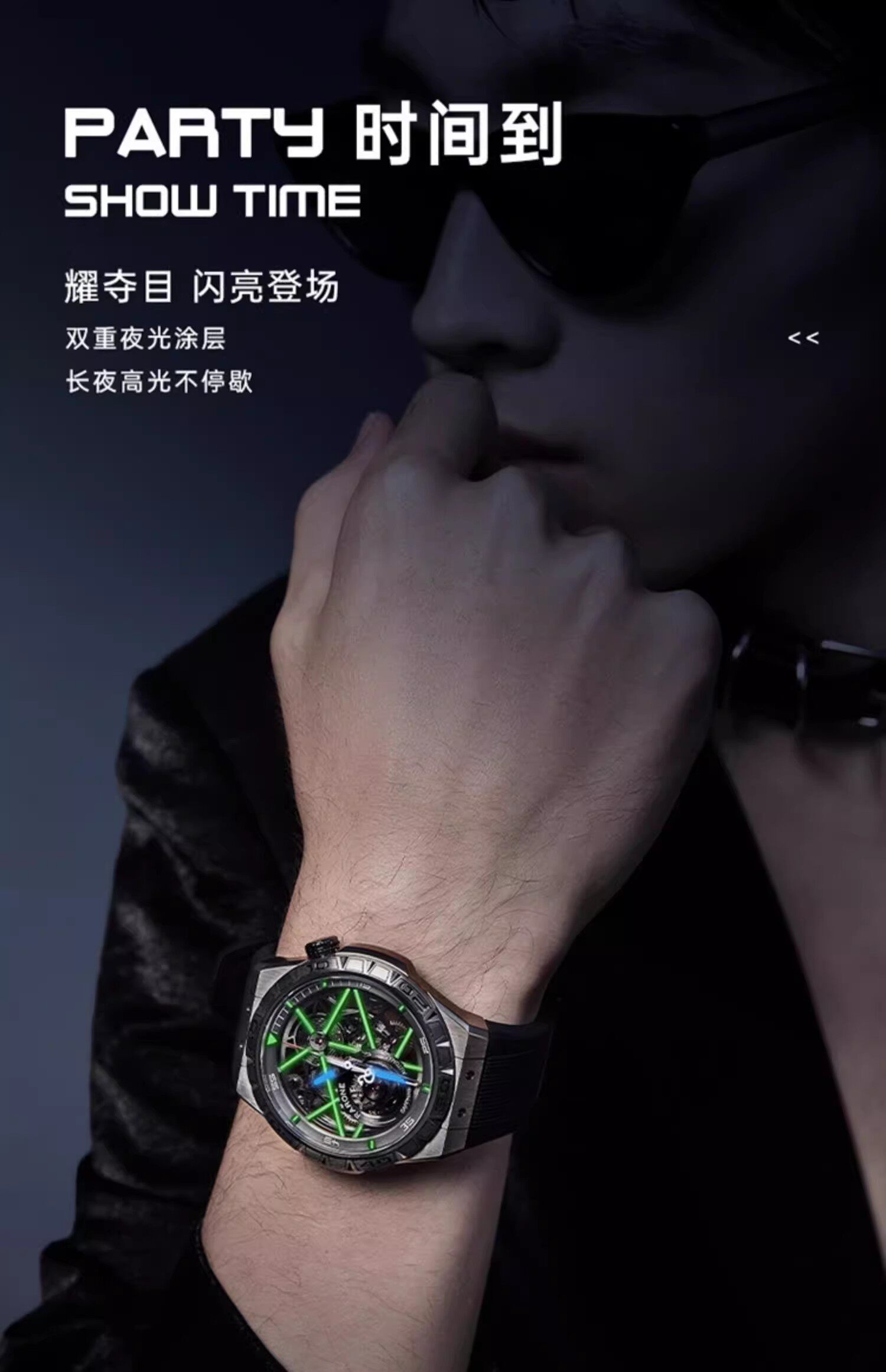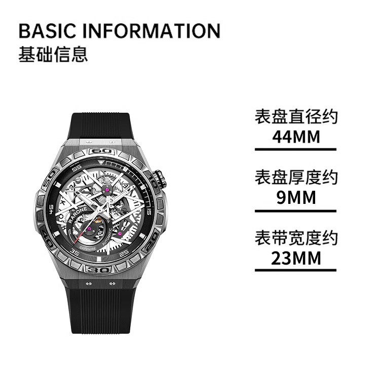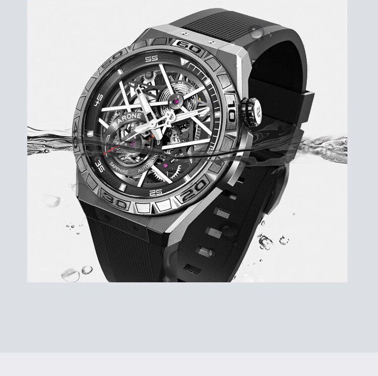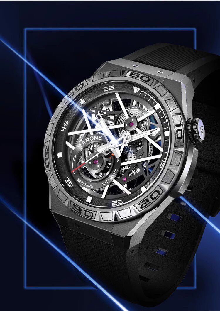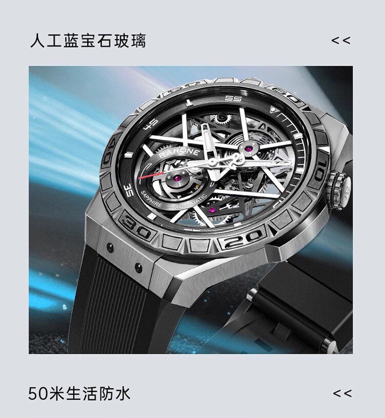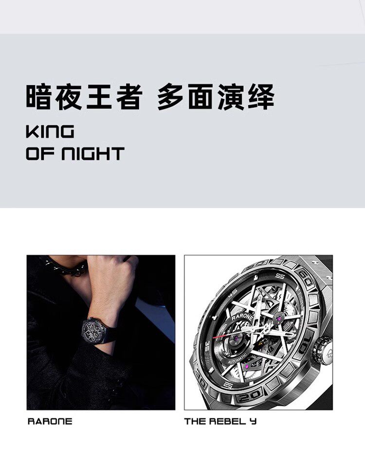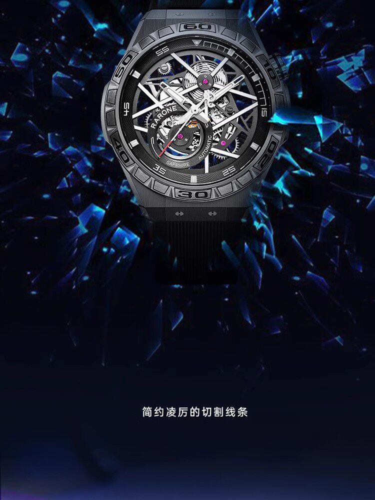 Renault Rarone Gemini Y Hollow Silicone Fully Automatic Luminous Mechanical Watch Waterproof Watch Men's Steel Strap Gift