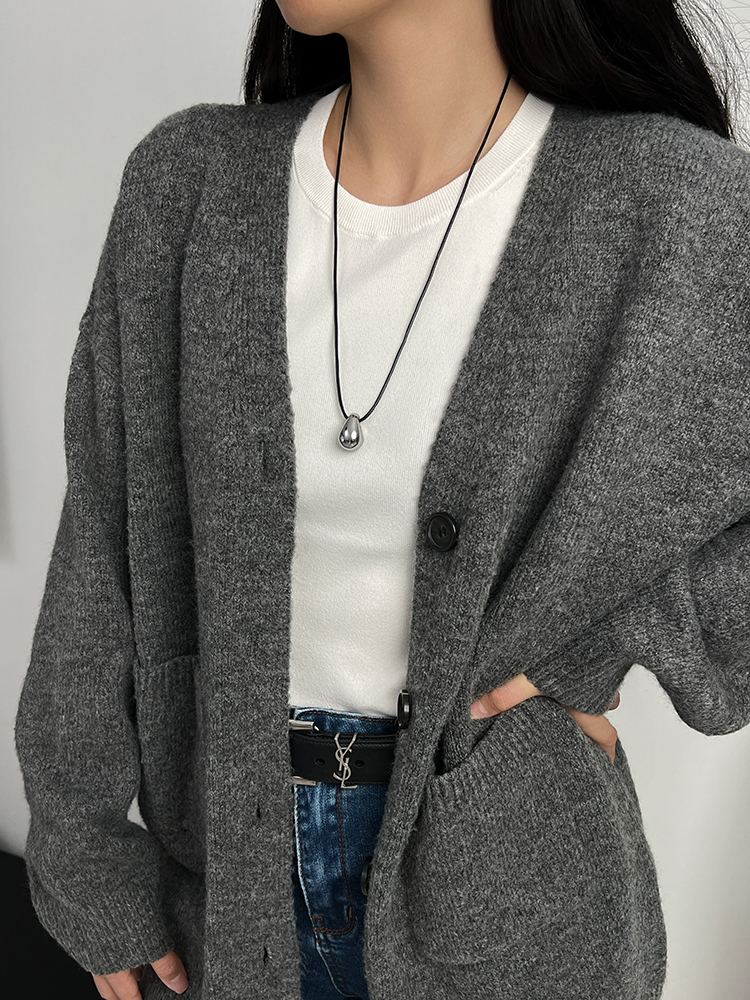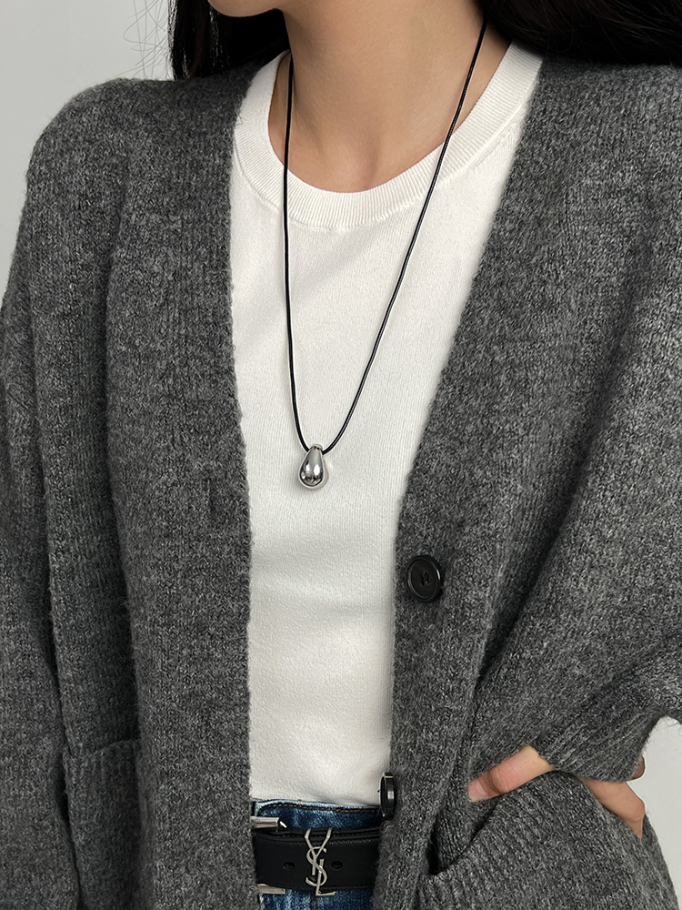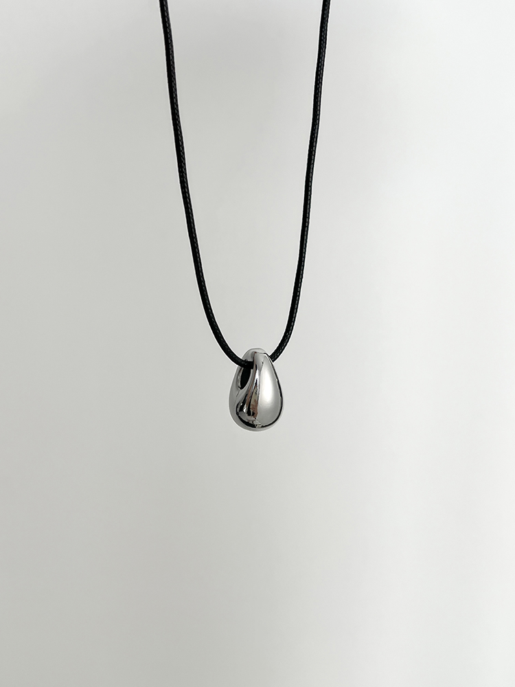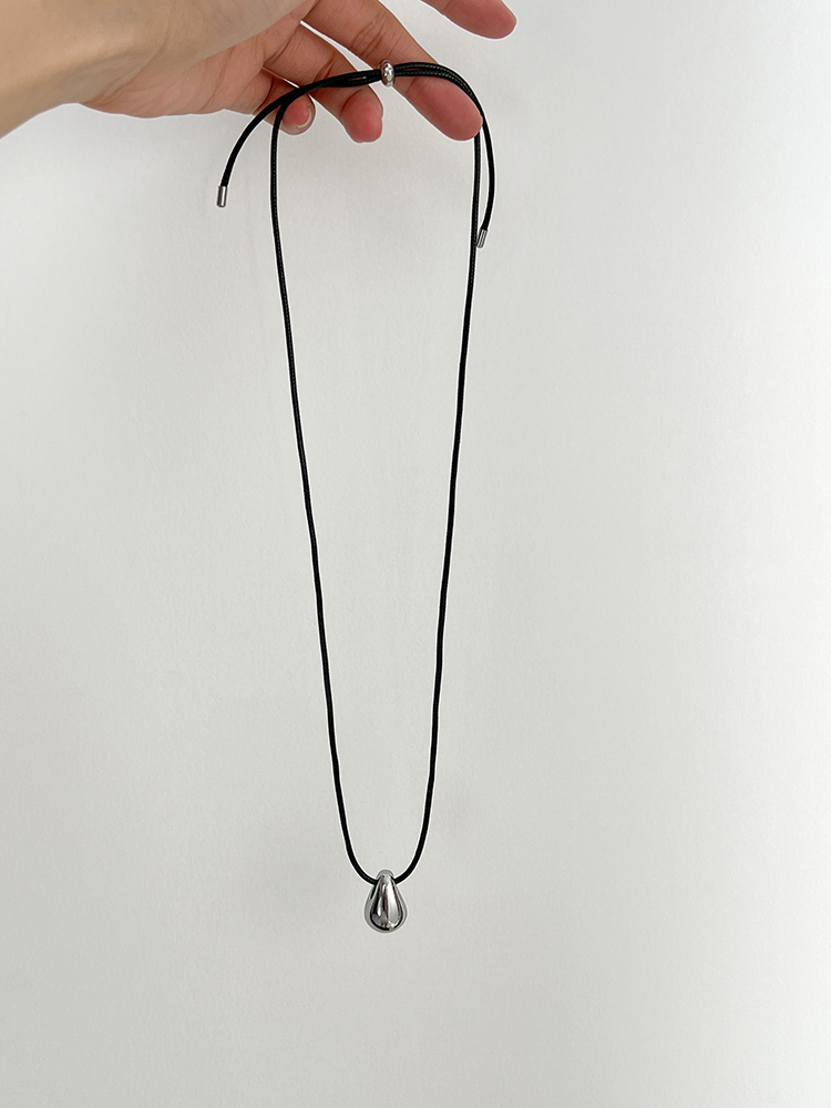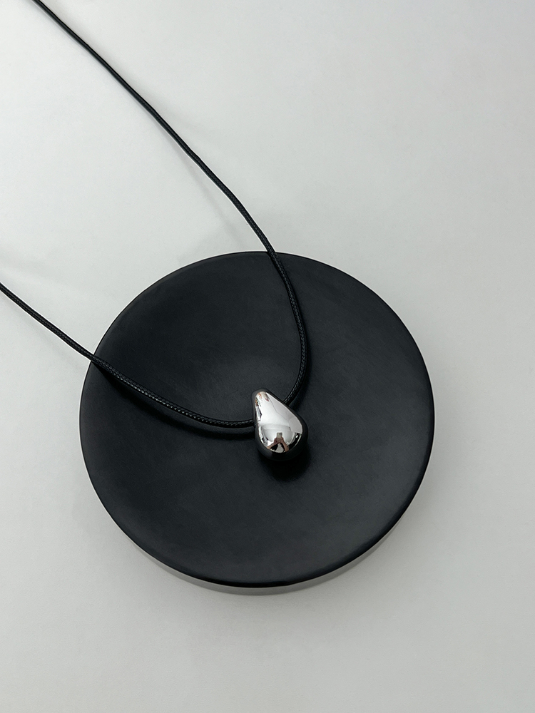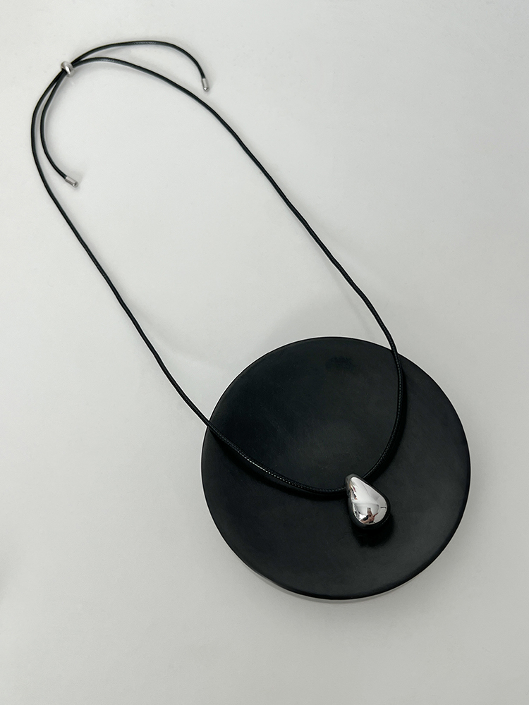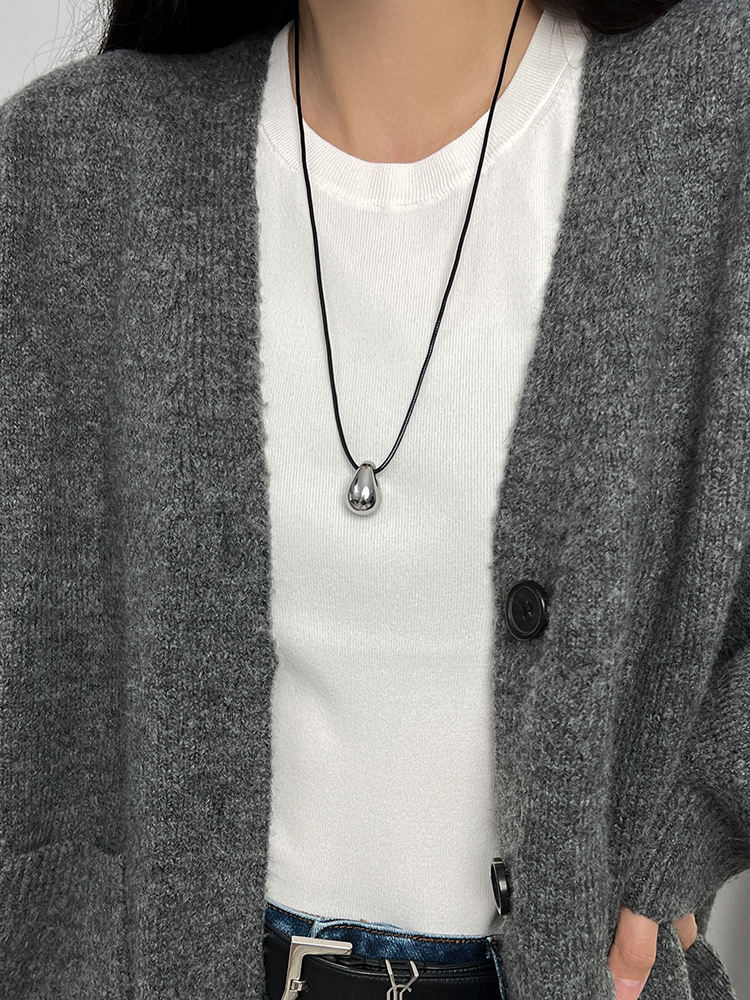 Doudoustore Color-Preserving Normcore Cold Style Metal Glossy Water Drop Black Leather Rope Necklace Autum Sweater Chain for Women
