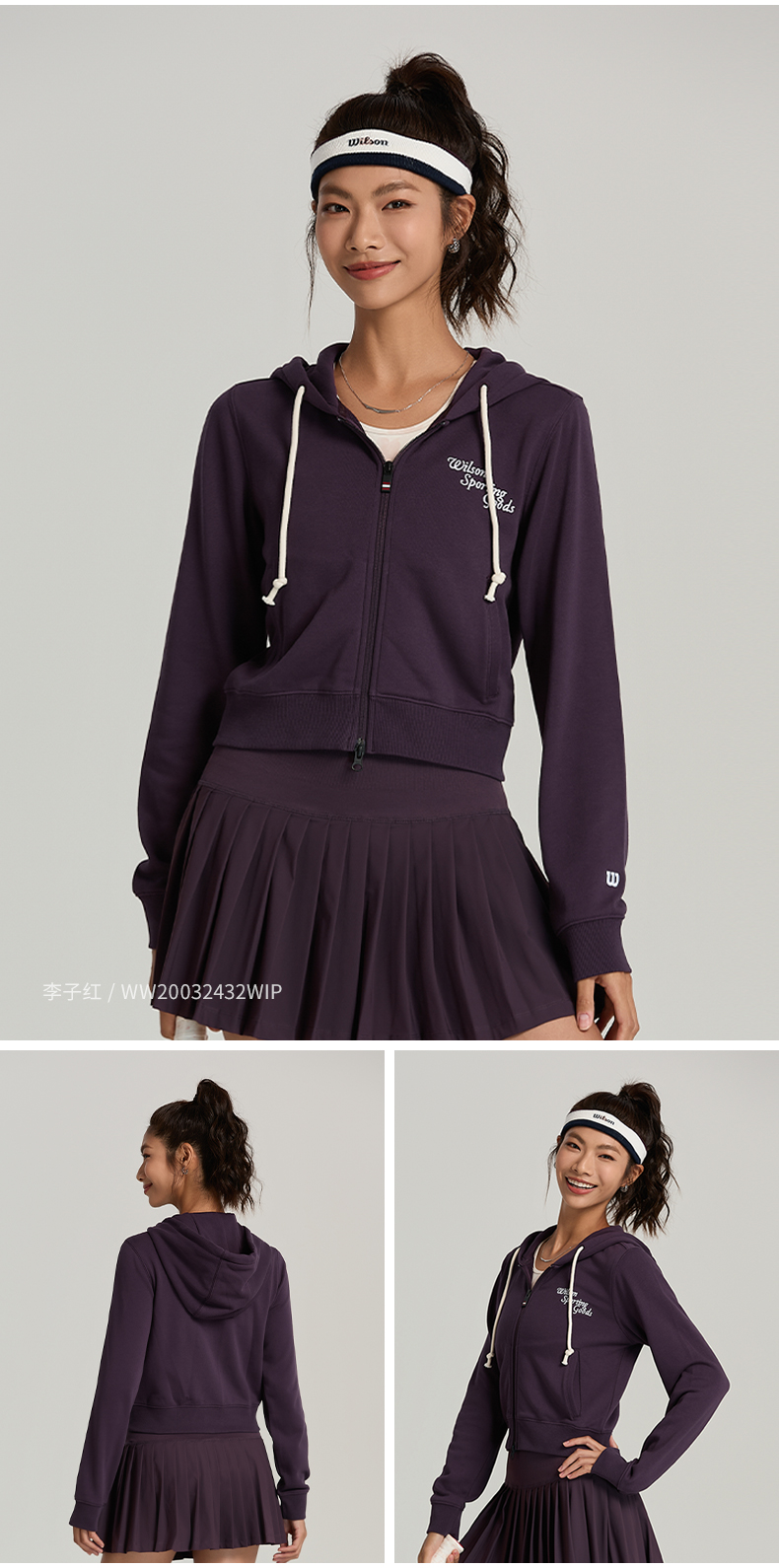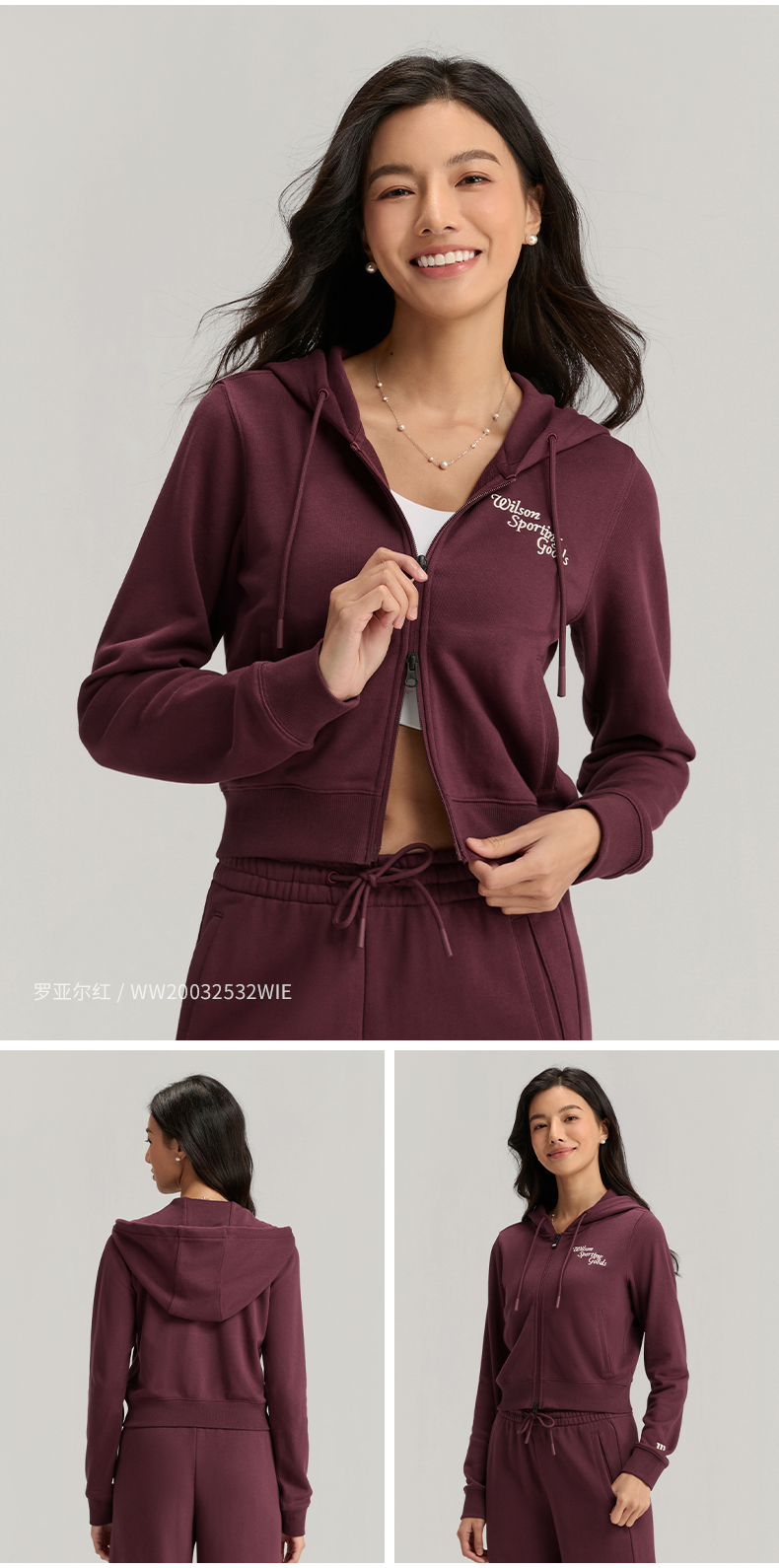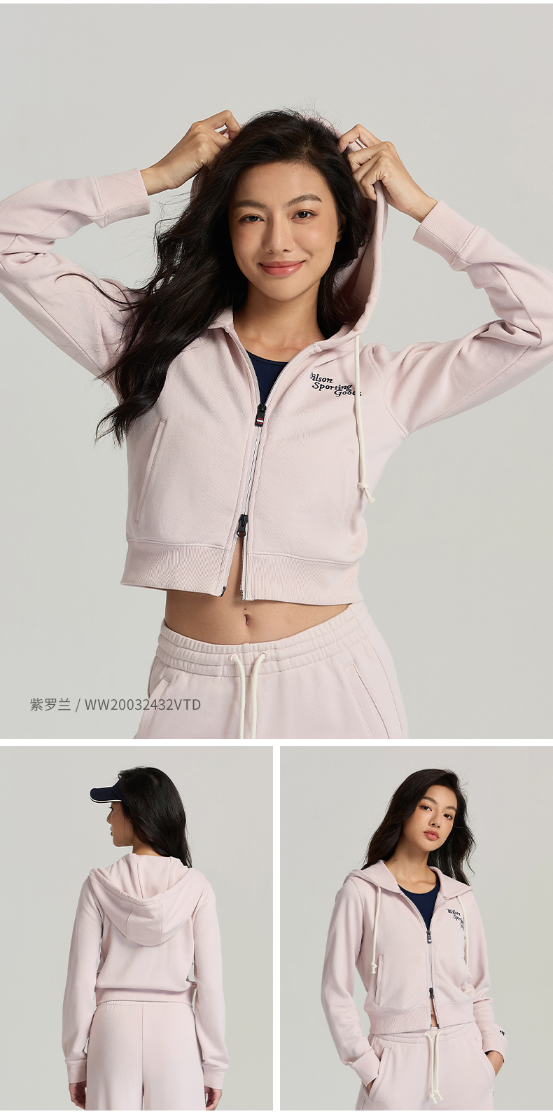 Wilson Official Wilson Autumn Women's Retro Hooded silm Short Zipper Easiest for match Knitting Sweatshirt Outwear
