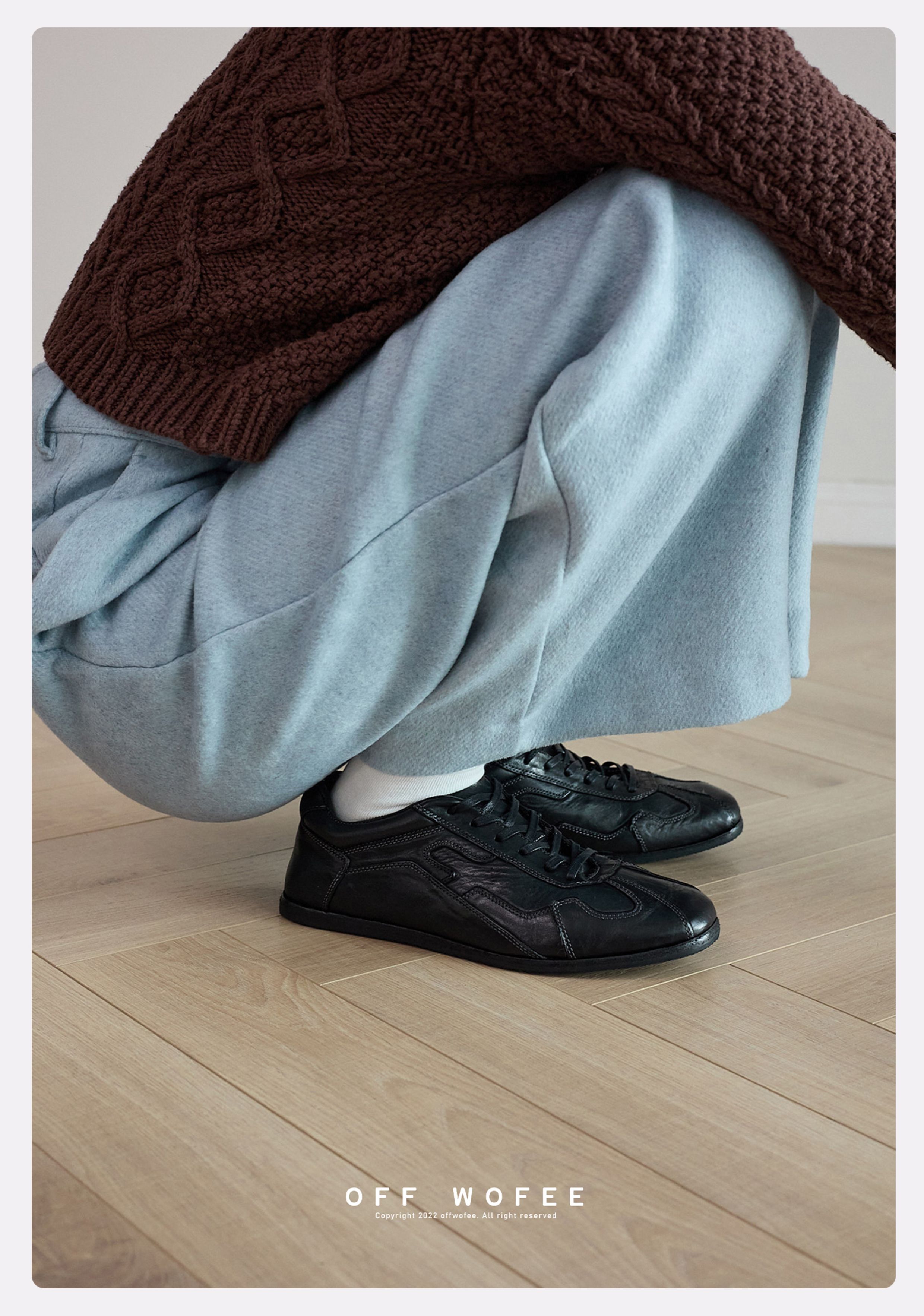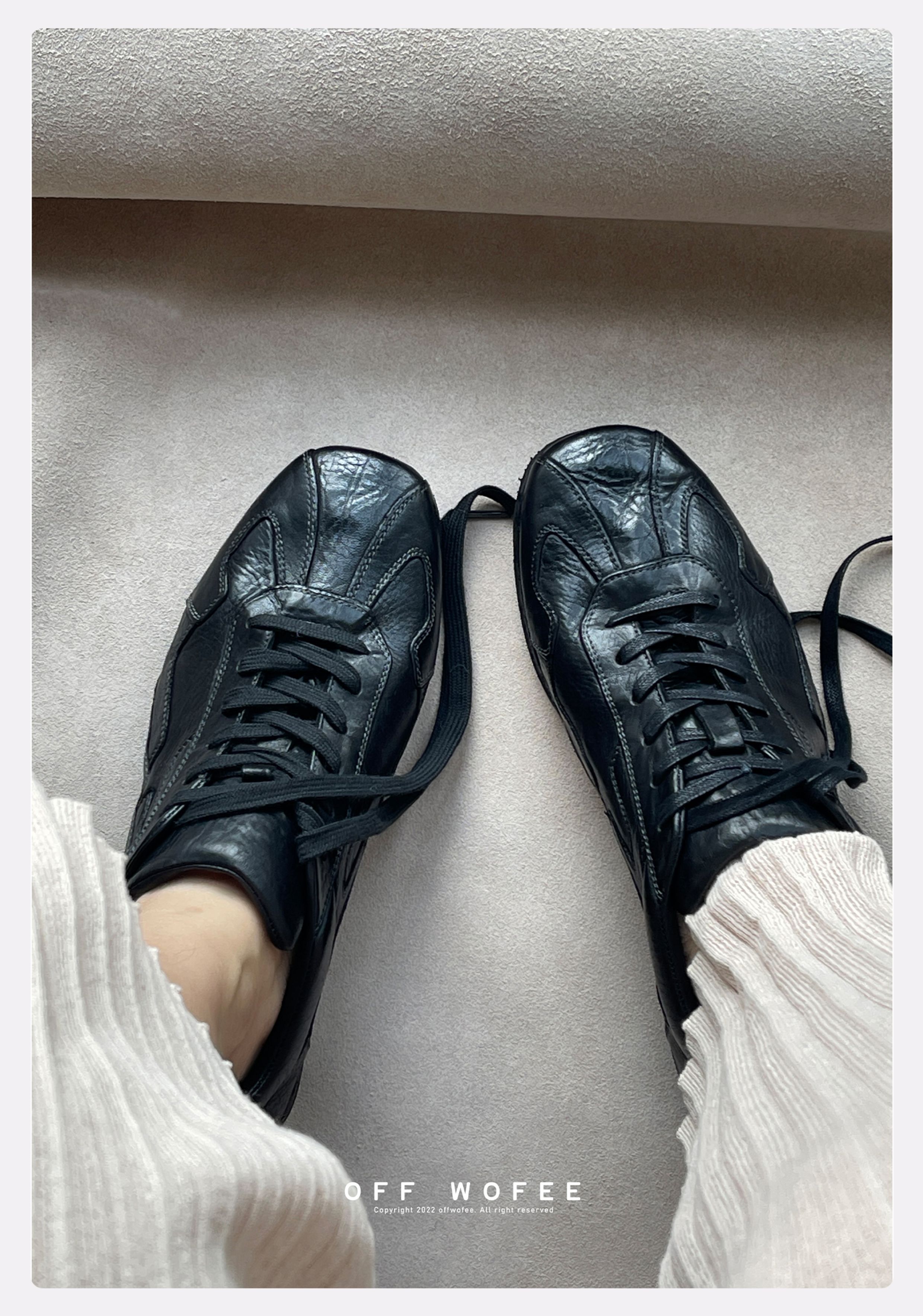 Offwofee High-End Black Training Shoes Casual Shoes Normcore Handmade Horsehide Suede Cleanfit Retro Shoes