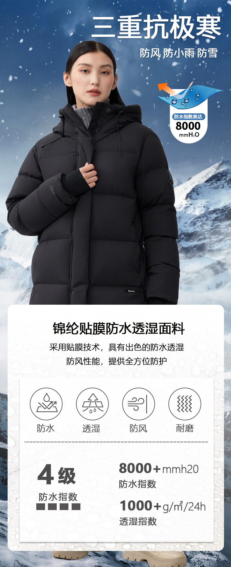 Junyu 800 Fill Power Goose down Jacket for Women, Mid-Length, Winter Hooded, Warm, Thickened, Extreme Cold Weather down Jacket for Women 293