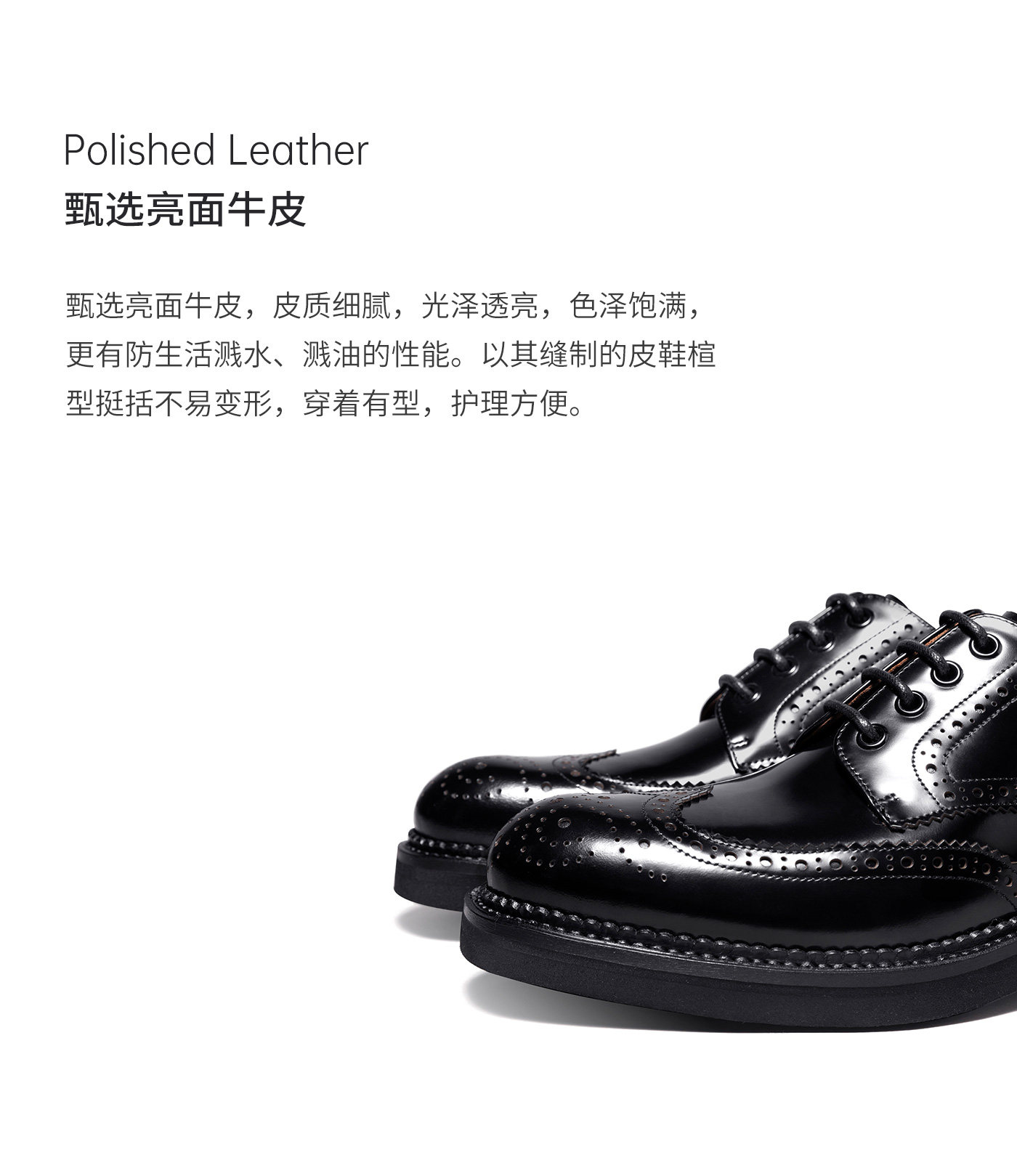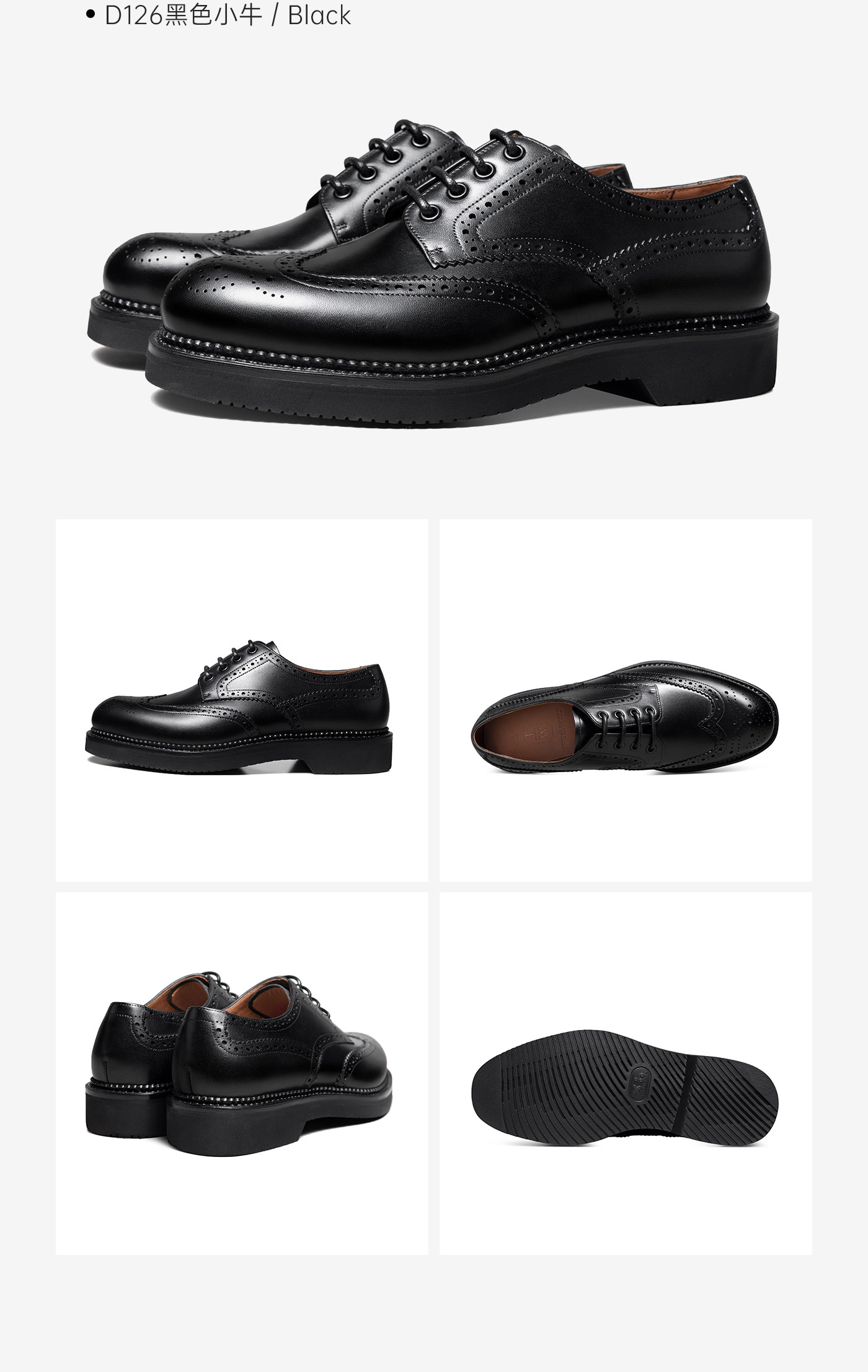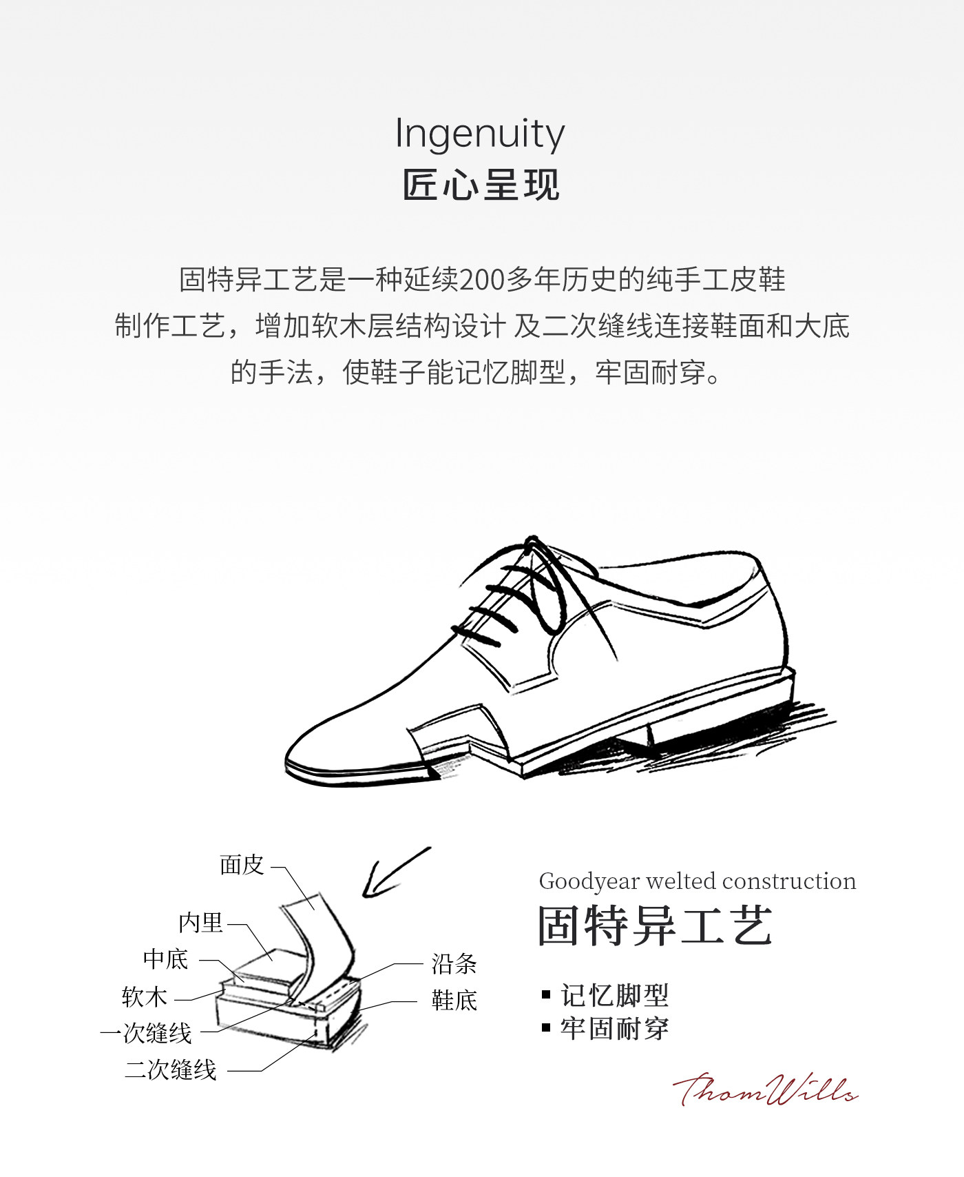 【Xl Foam Sole】Thomwills Goodyear Derby Shoes Men's Brogue Carved Handmade Genuine Leather Shoes