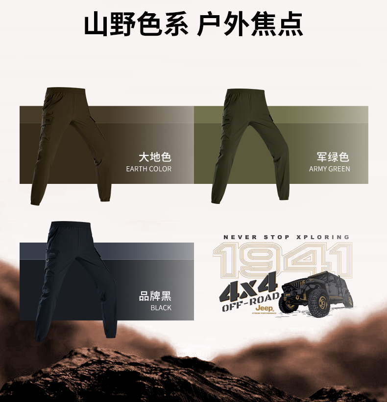 Jeep Jeep Outdoor Hiking Charge Pants Men's Fall and winter Waterproof Windproof Hiking pants Casual Jogger Pants parka Pants