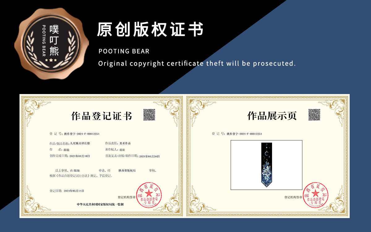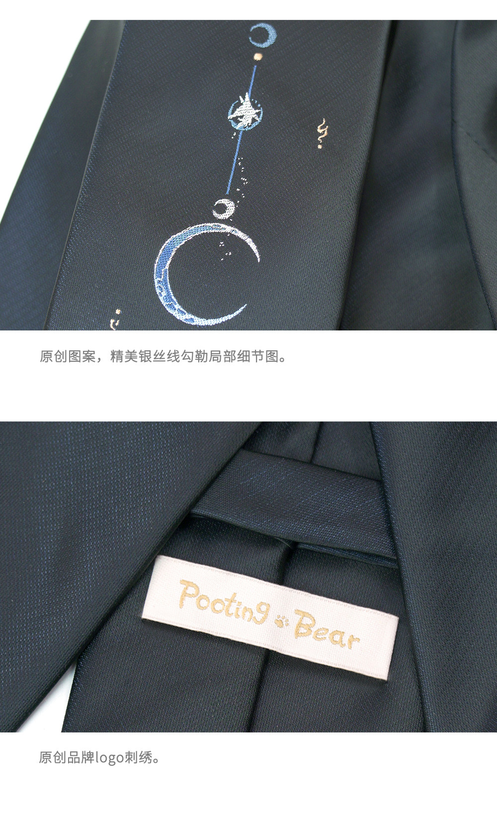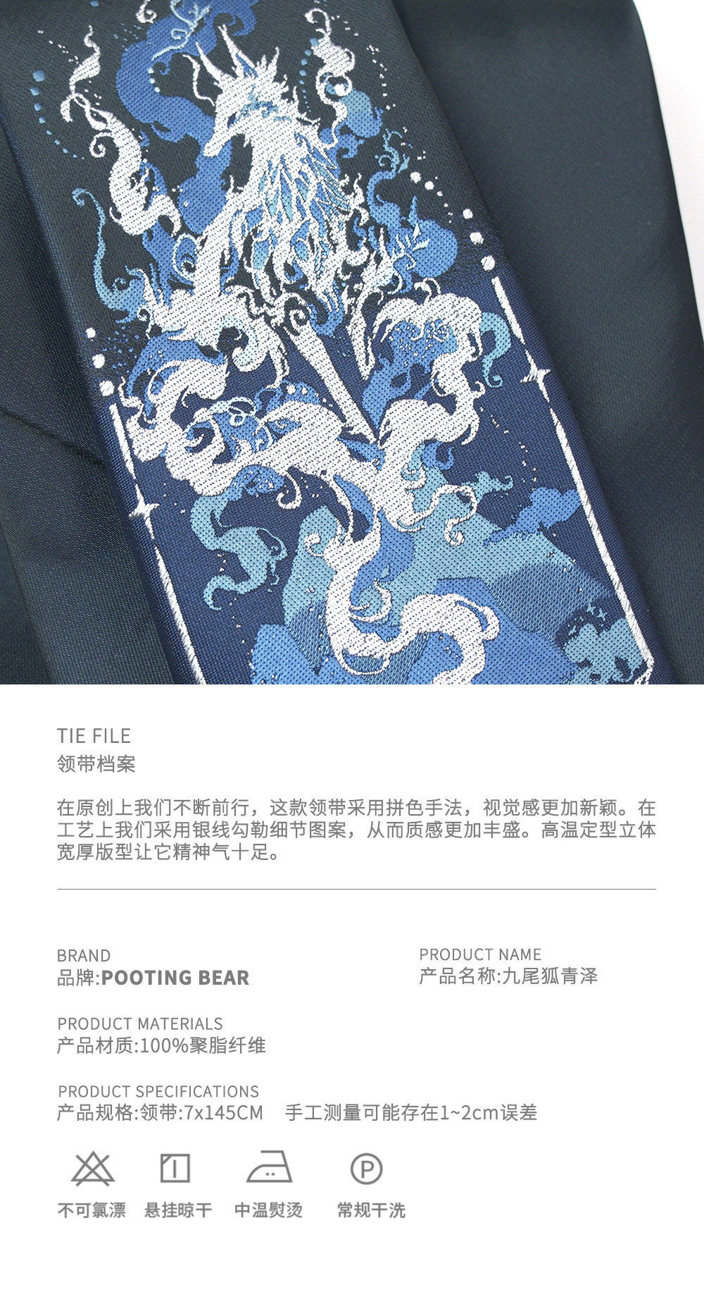Pooting Bear Original Jkdk Hand-Tied Tie Black Nine-Tailed Fox Academy Style Unisex Couple Jacquard Accessory