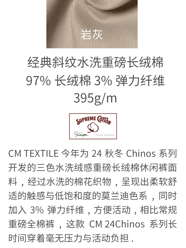 Cm Naples Queen Twill Washed Heavyweight Long-Staple Cotton Four-Season Mid-High Waist Trousers 230/231/232