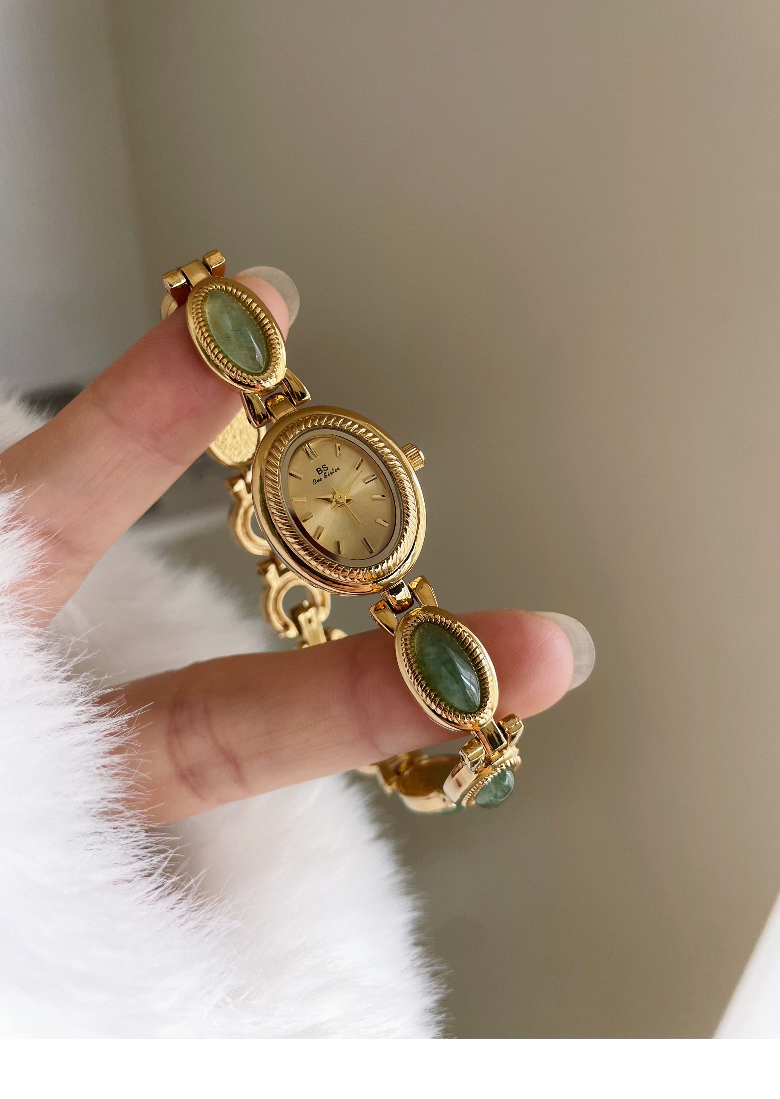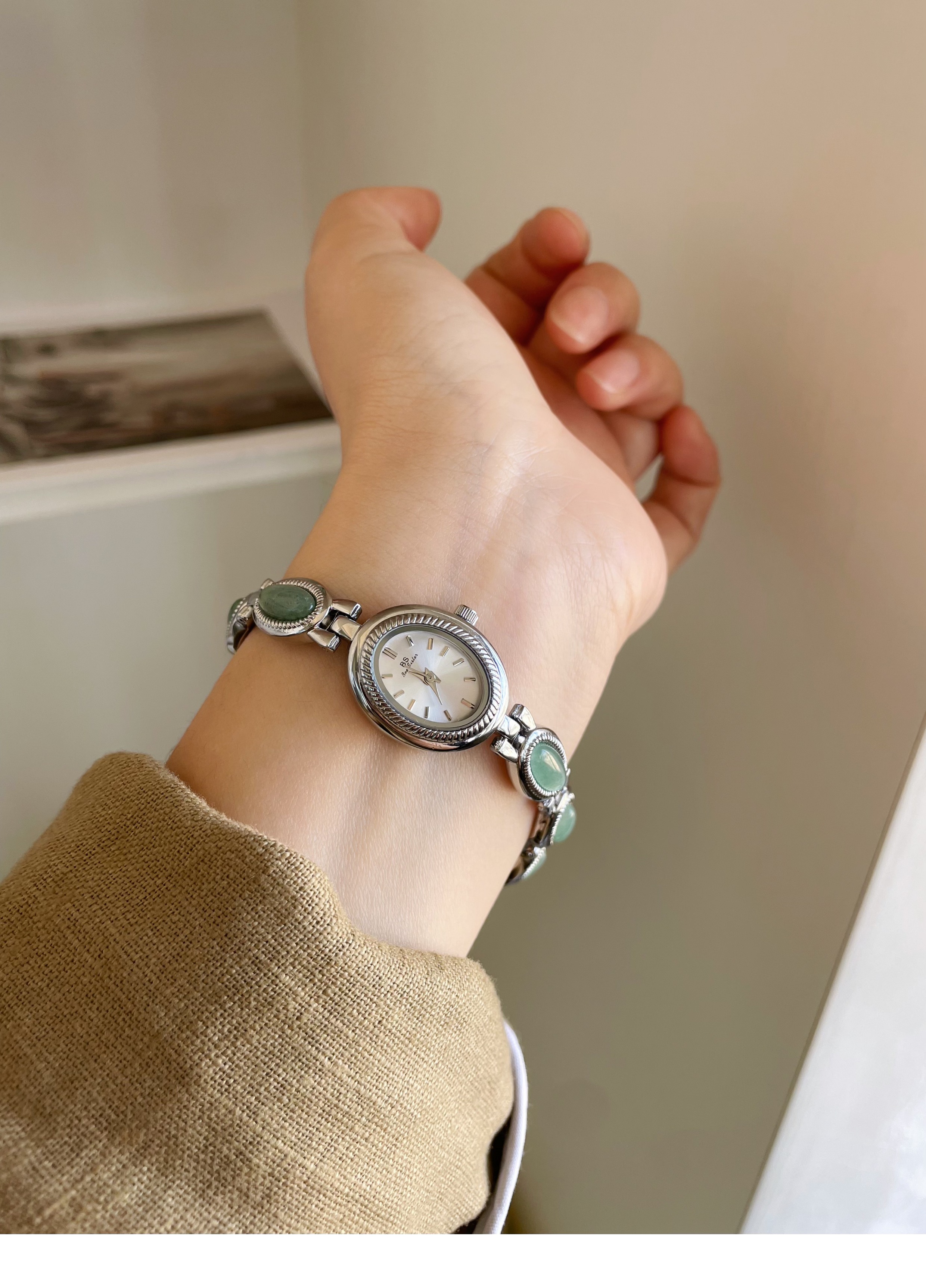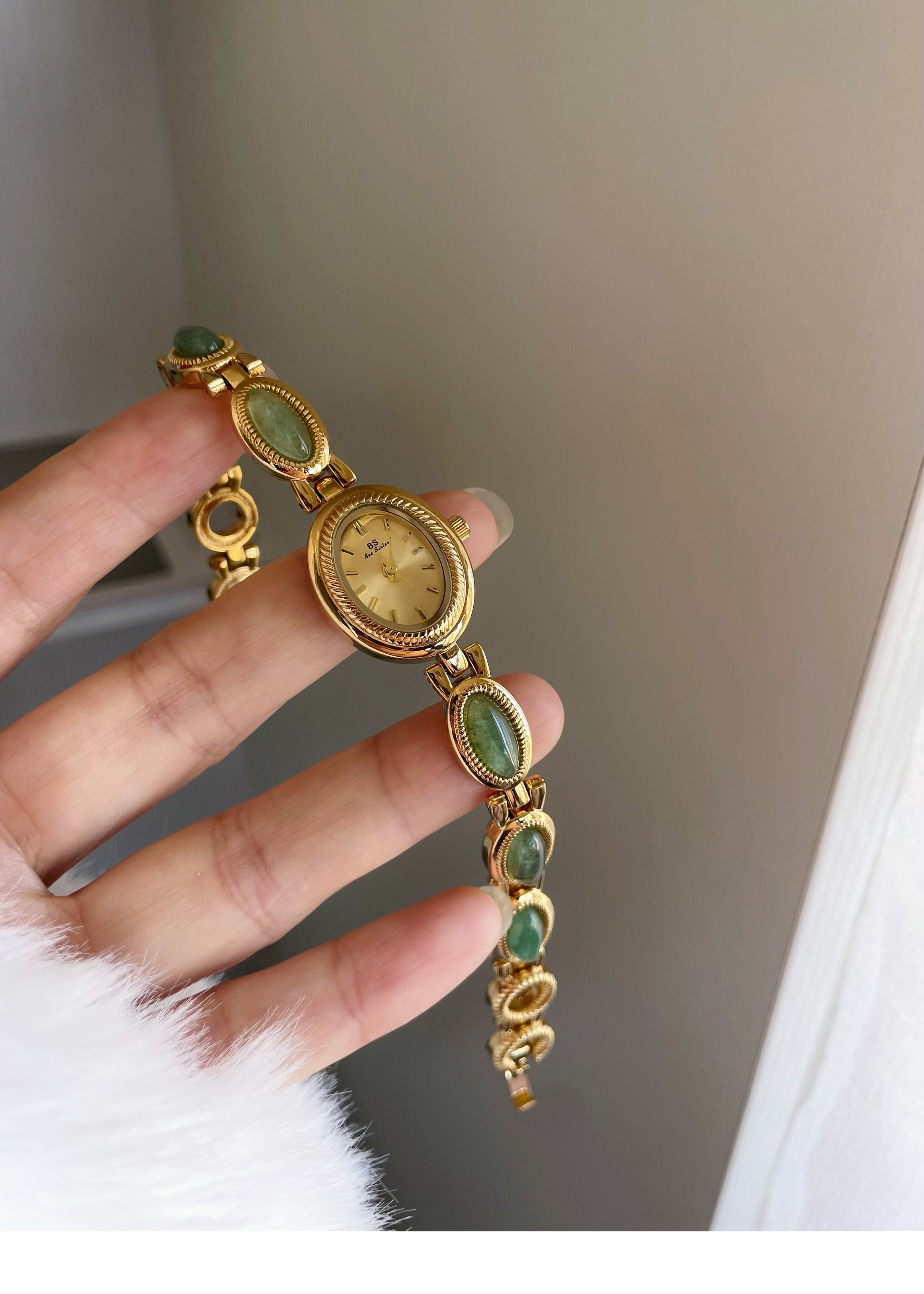 [National Style] Jade Oval Small Dial Watch Women's Retro Style Niche Light Luxury Bracelet Style Women's Watch Women's Student