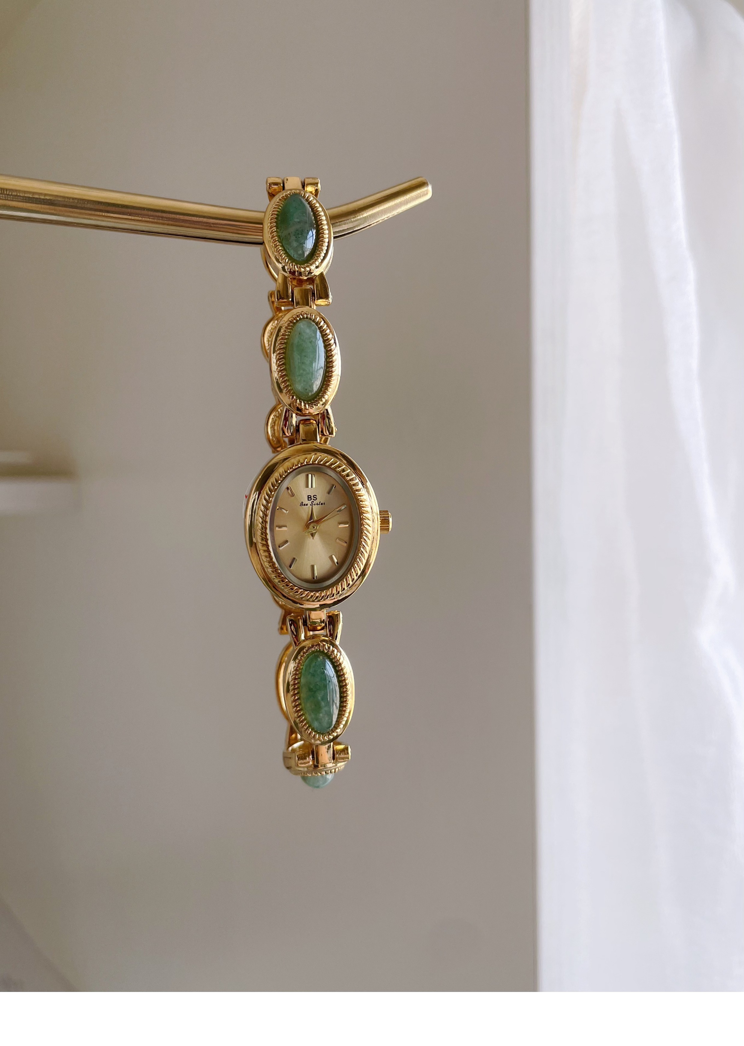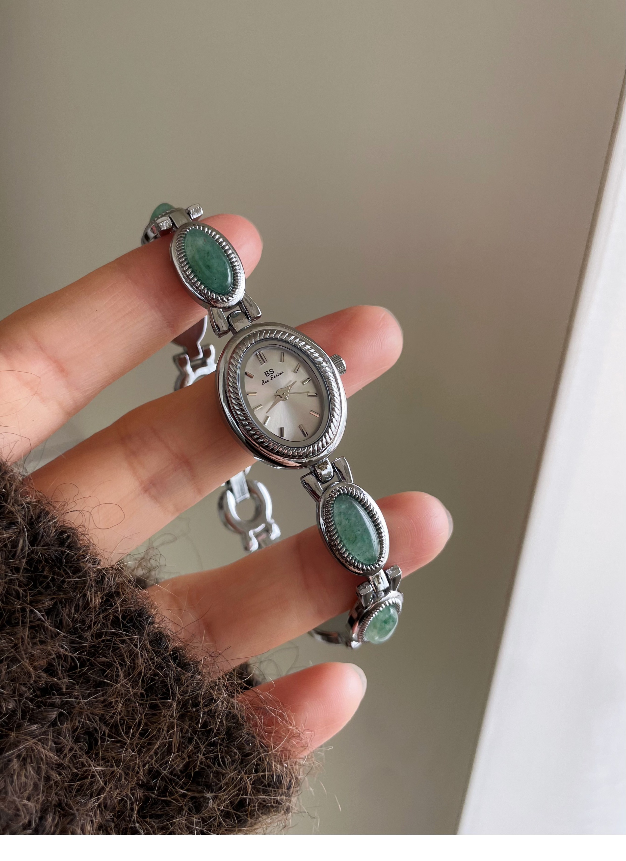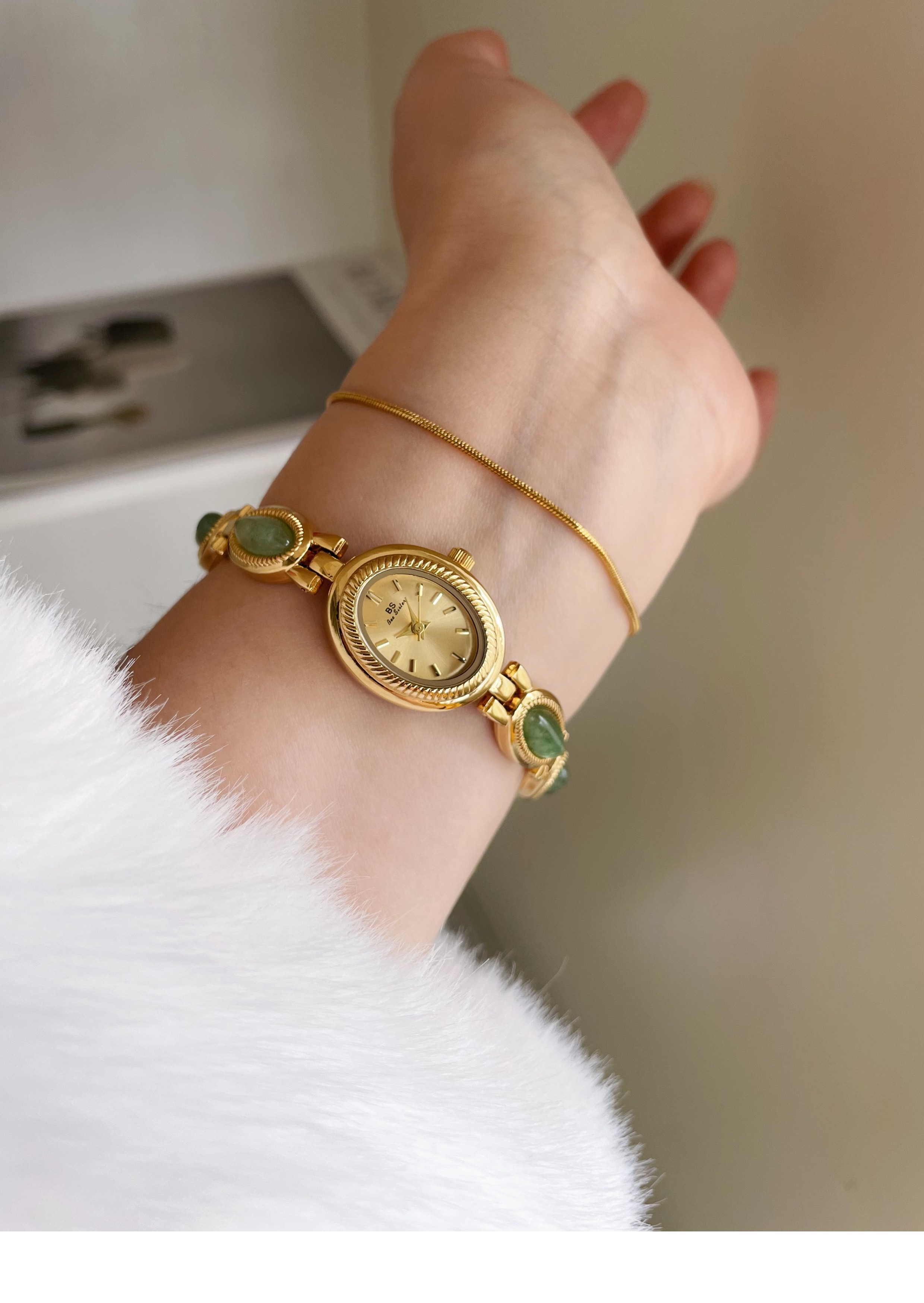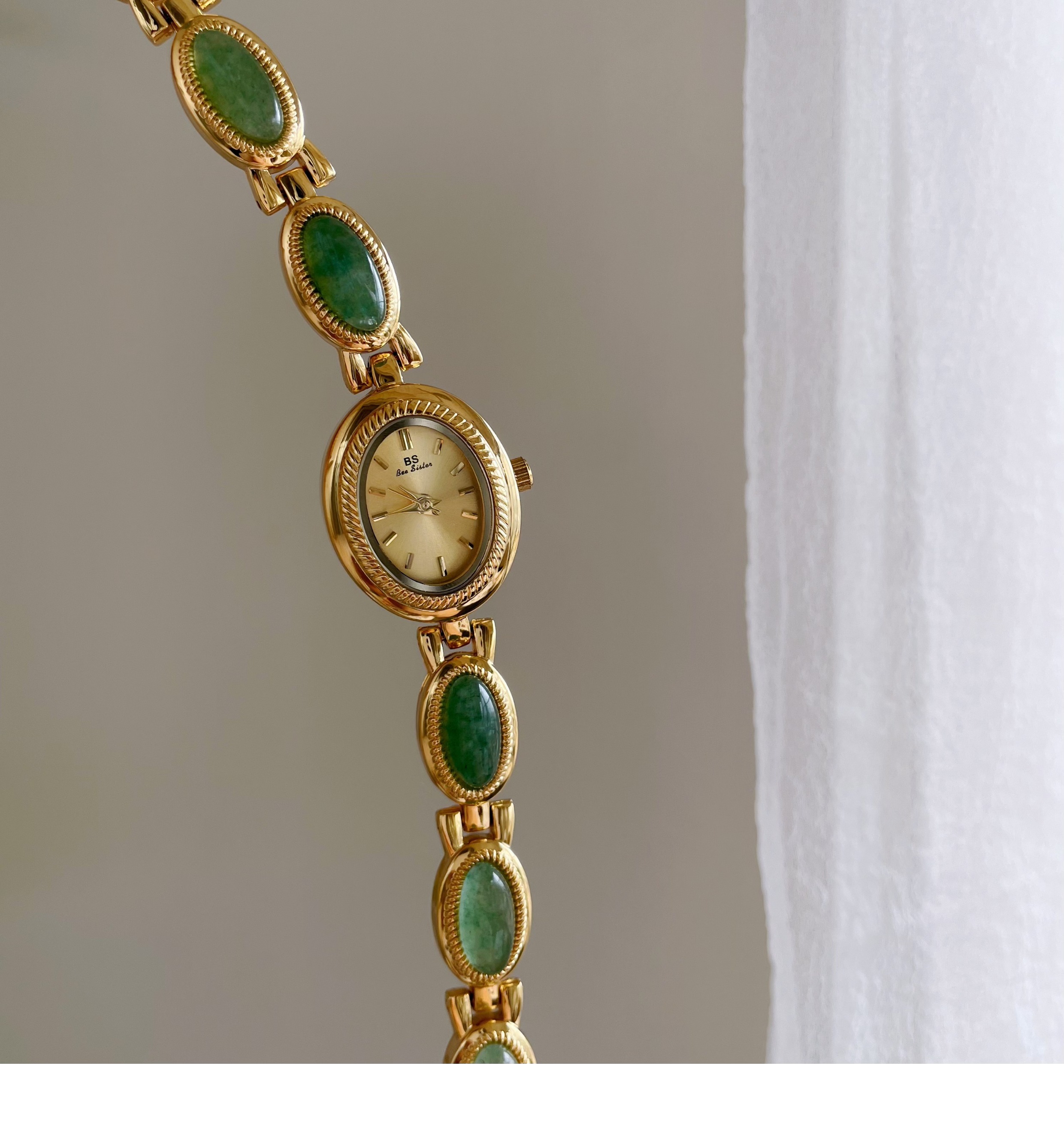 [National Style] Jade Oval Small Dial Watch Women's Retro Style Niche Light Luxury Bracelet Style Women's Watch Women's Student