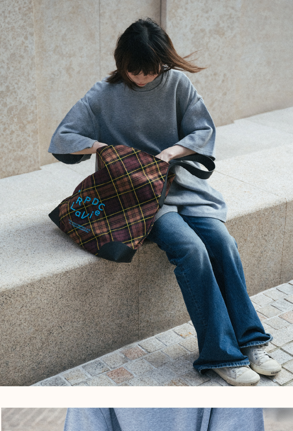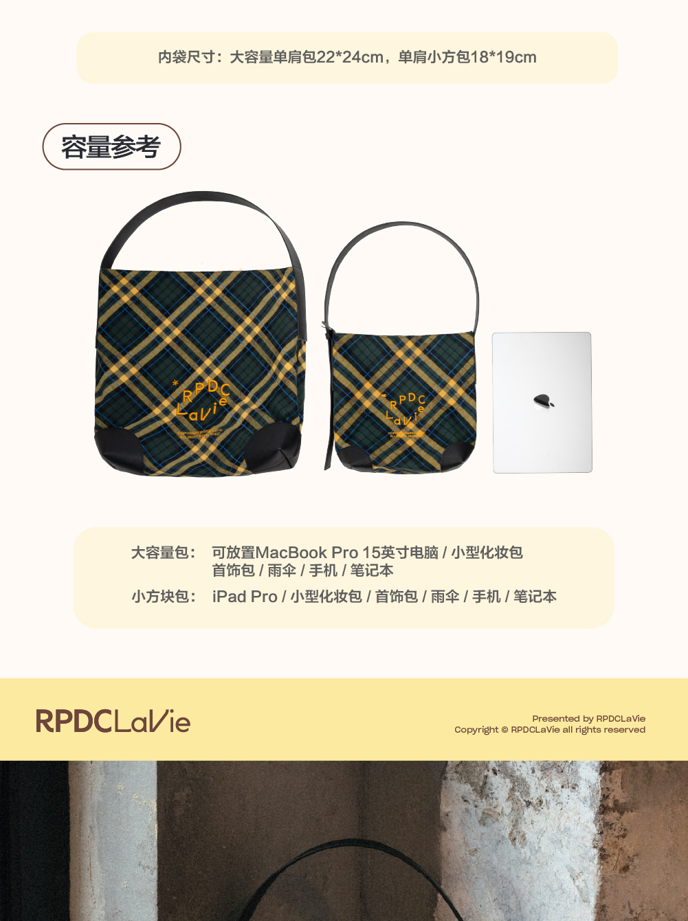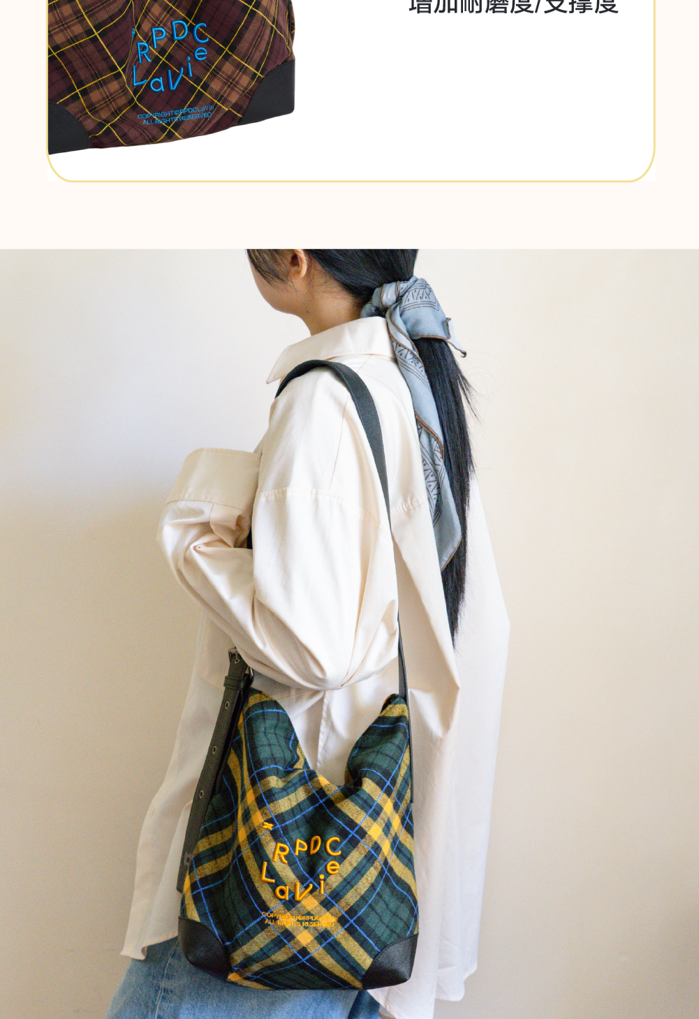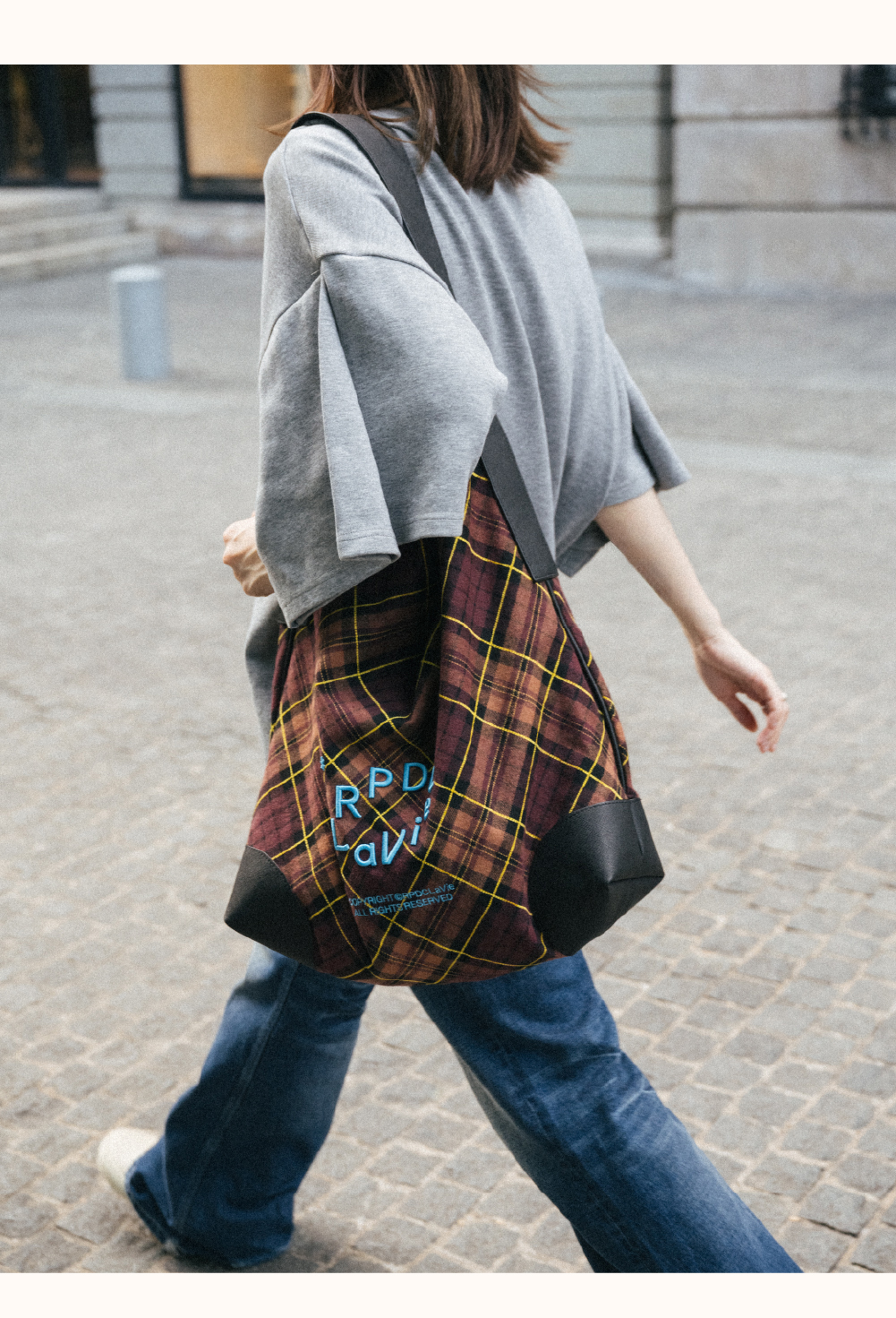 [Same style] Authentic RPDCLaVie "street walk" check large capacity shoulder bag